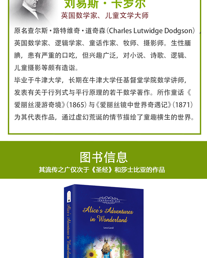 爱丽丝漫游奇境记英文版原版原著 爱丽丝梦游仙境书 童话故事儿童文学童话小说小学生初中生版 振宇书虫-全英文版