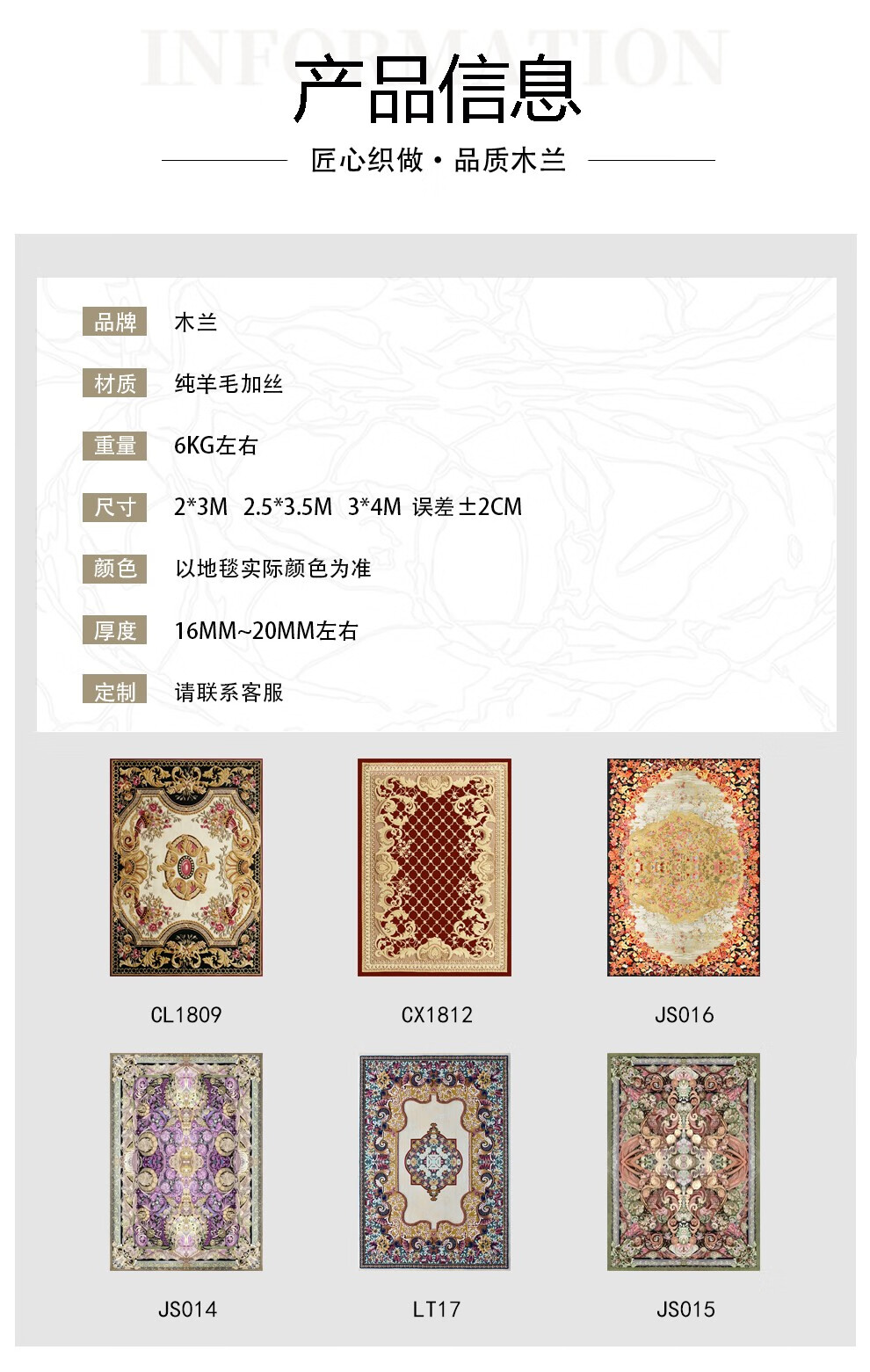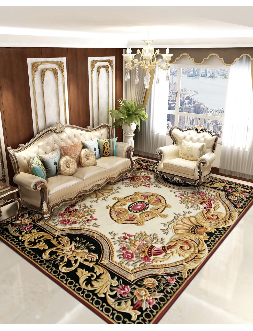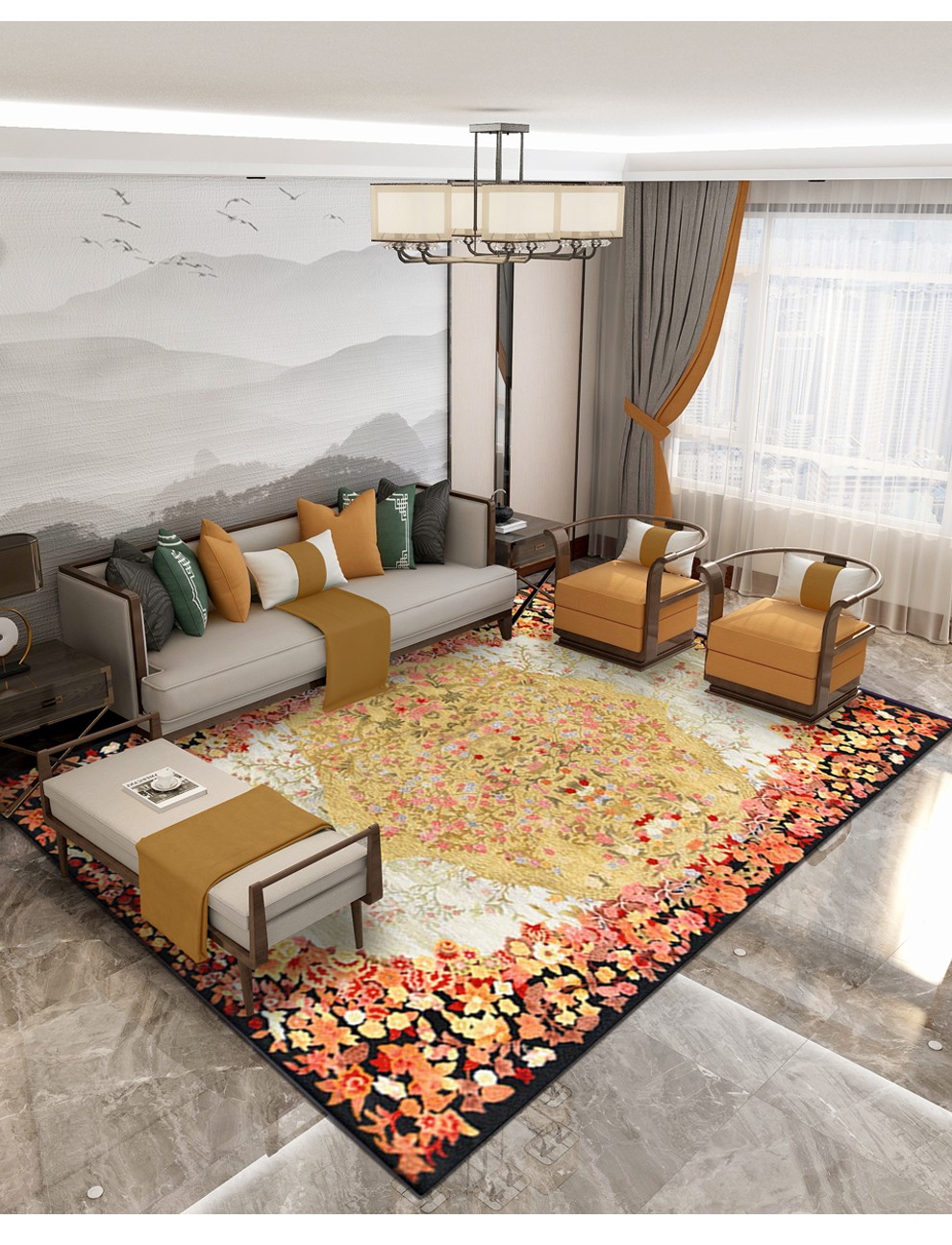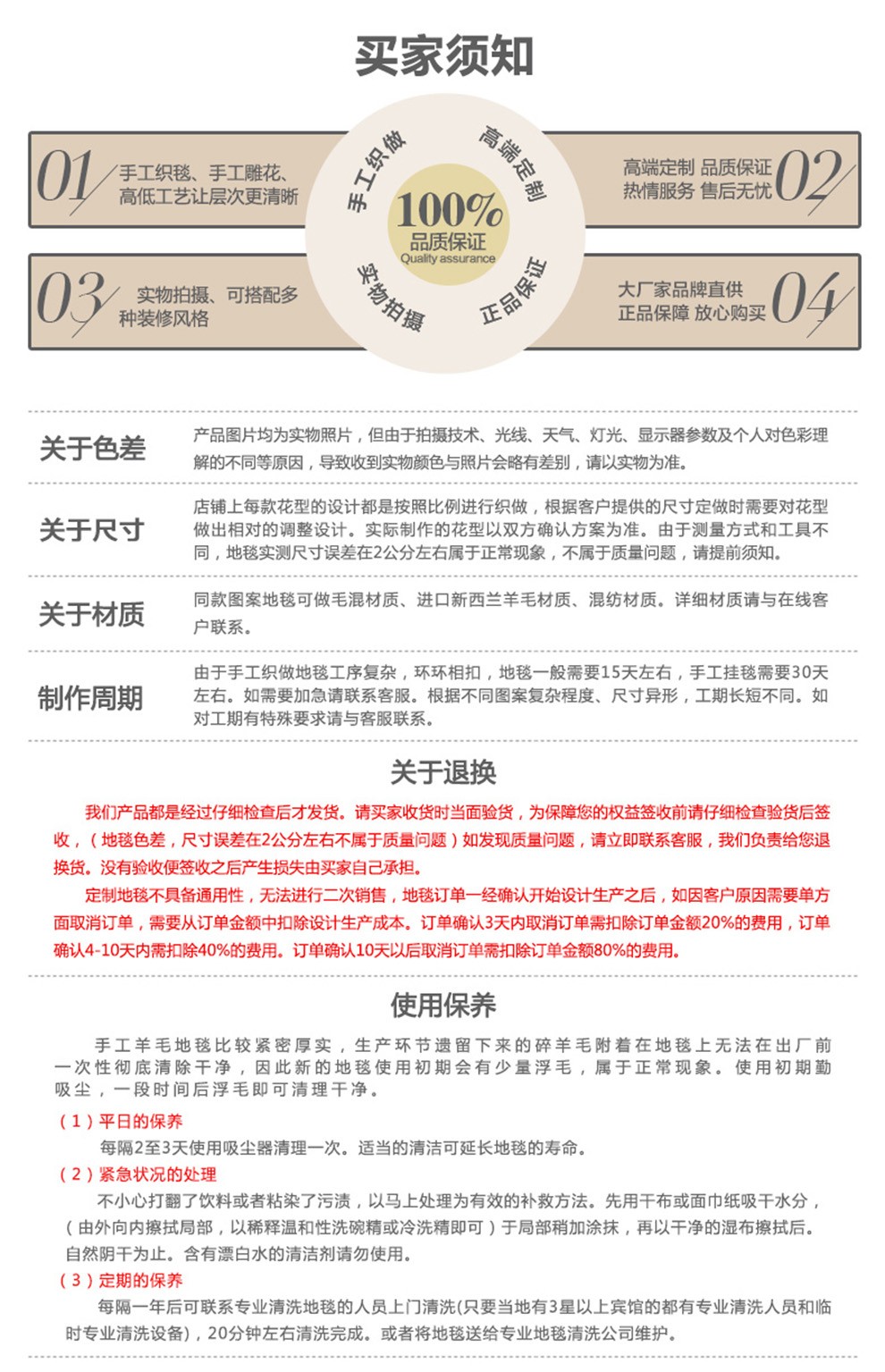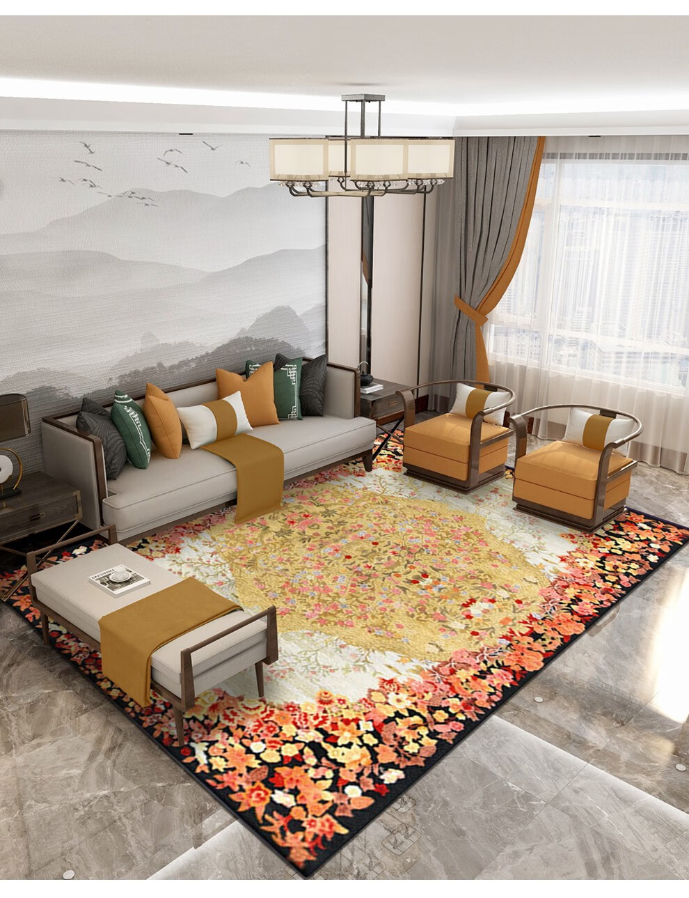 木兰手工织做新西兰羊毛加厚地毯轻奢客厅卧室床边毯茶几地毯家用地毯 黑色加黄色 300cm*400cm