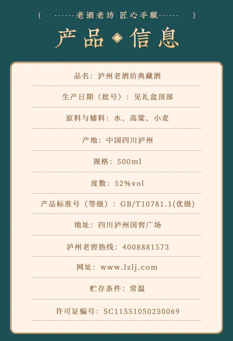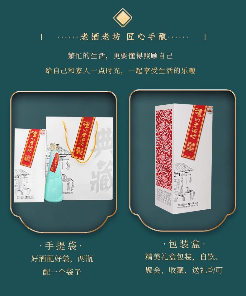 泸州老窖老酒坊典藏 浓香型白酒 自饮送礼袋 52%vol 500mL 2瓶