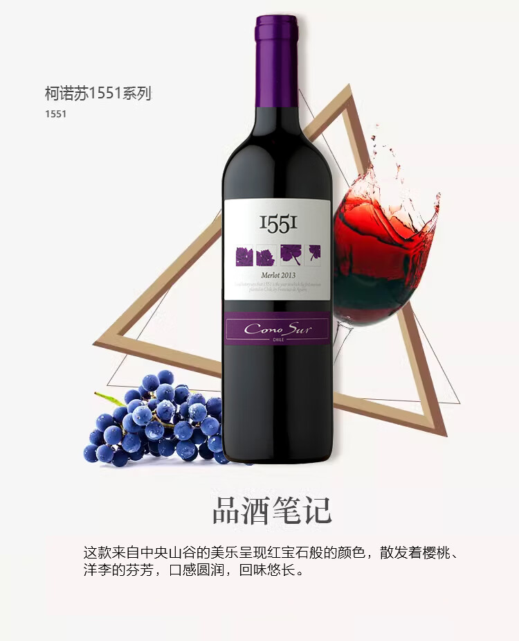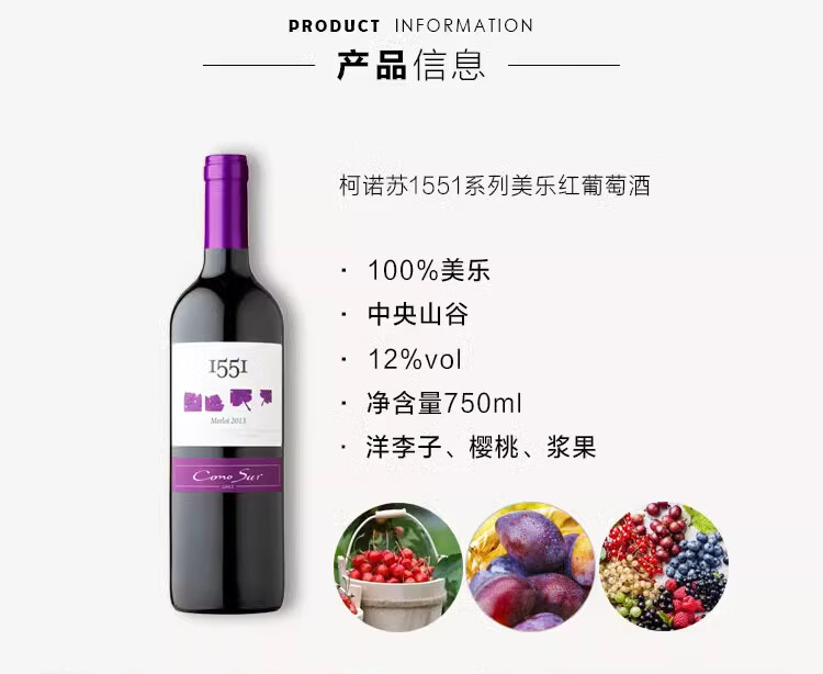 柯诺苏Conosur|智利干露集团红酒|1551美乐干红葡萄酒|原瓶进口 整箱(6支装)
