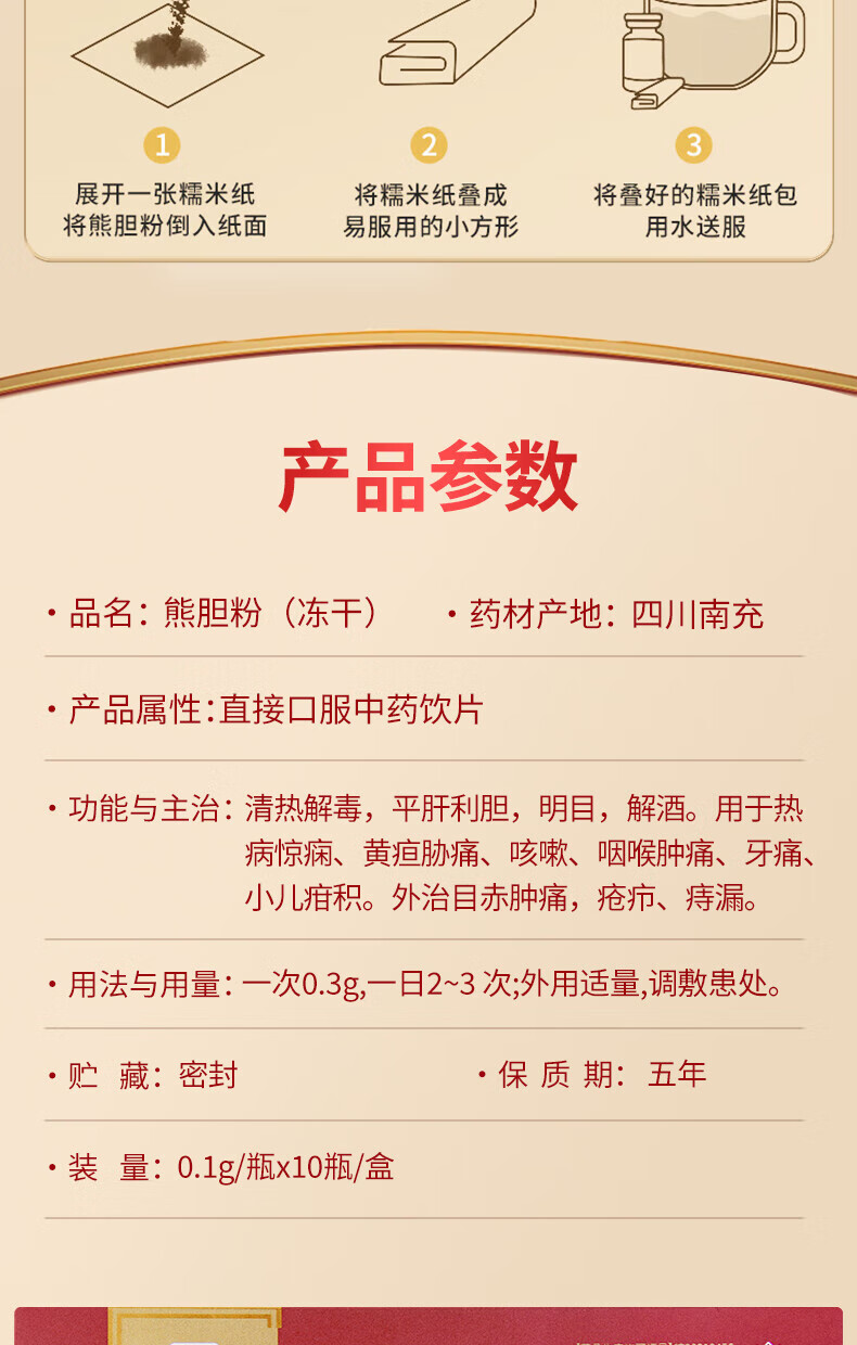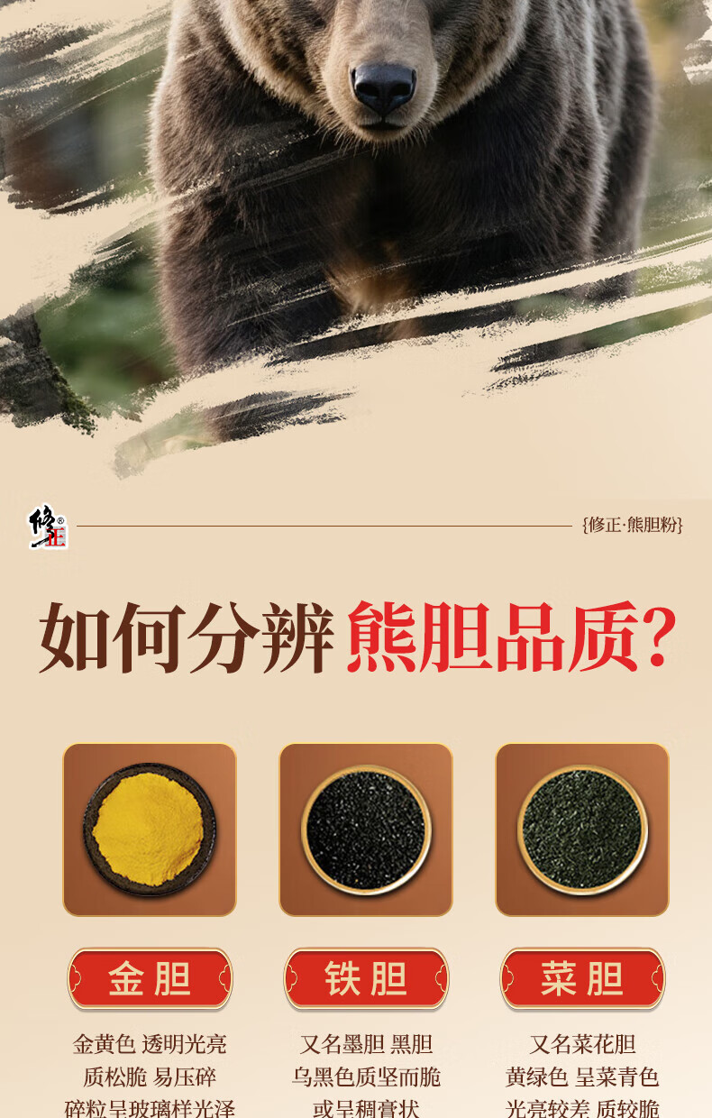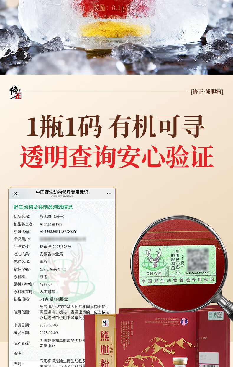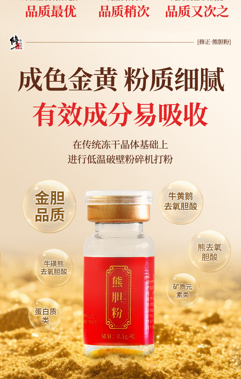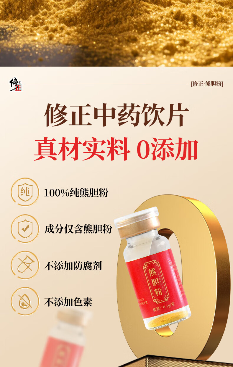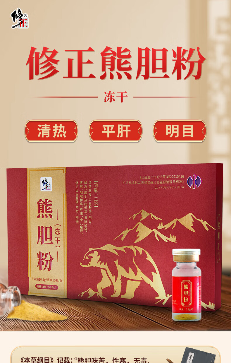 修正熊胆粉(冻干)0.1g/瓶×10瓶/盒中药饮片清热护肝解酒明目细腻打粉易吸收清热解毒平肝利胆明目退翳缓解眼干 熊胆粉