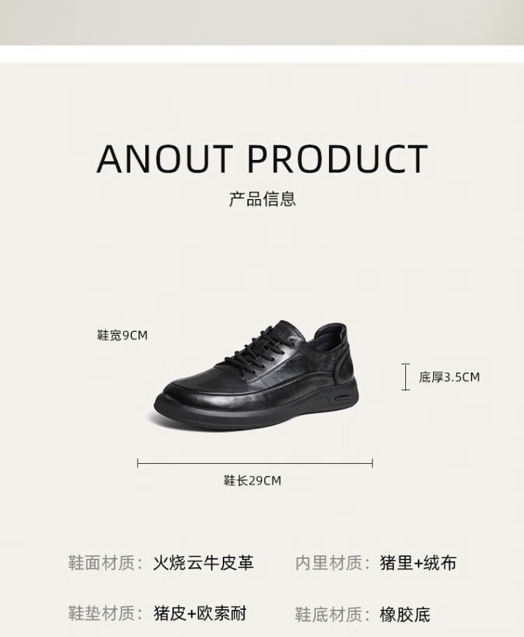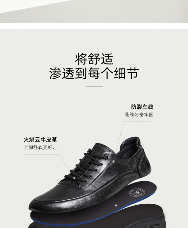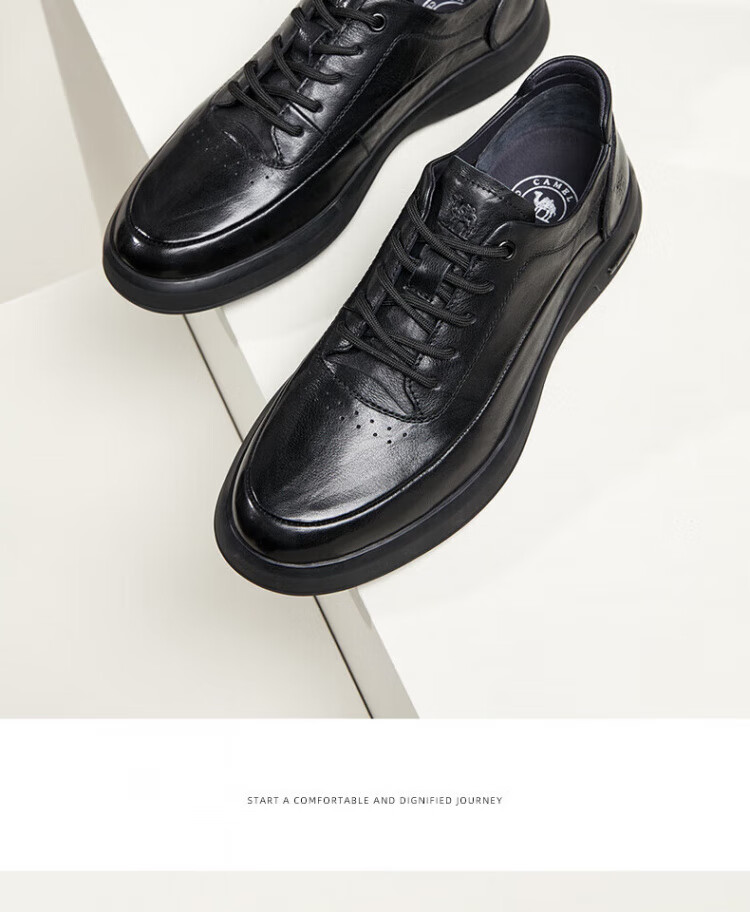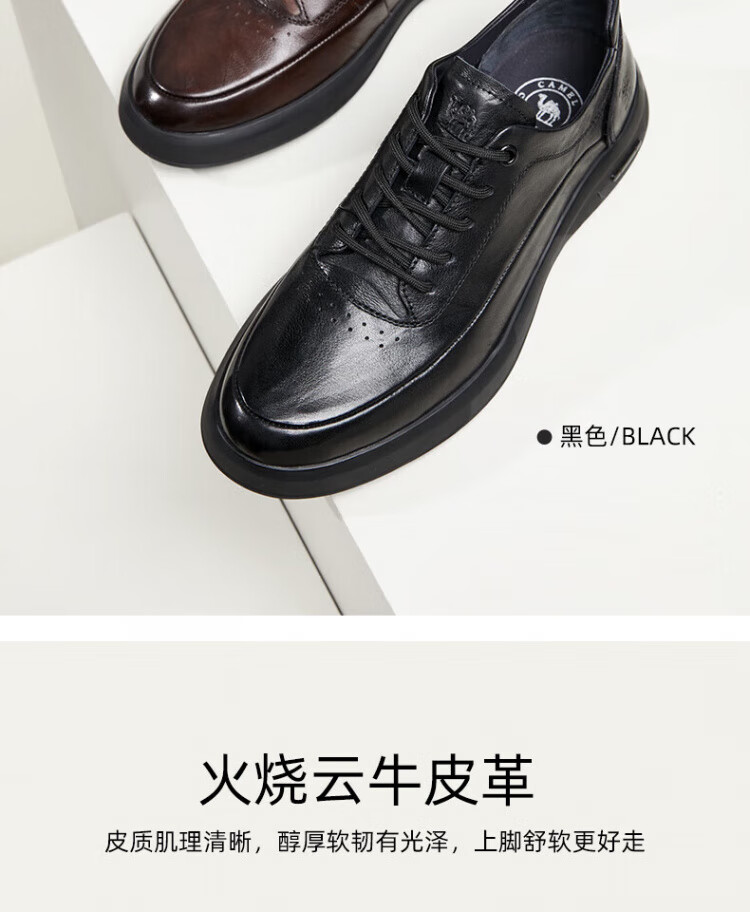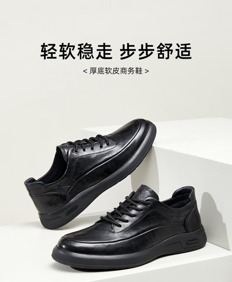 骆驼(CAMEL)新款柔软牛皮男鞋软底舒适通勤商务运动皮鞋 G14S155129 黑色 42 (260mm)