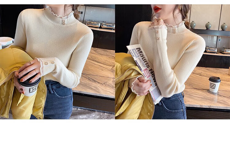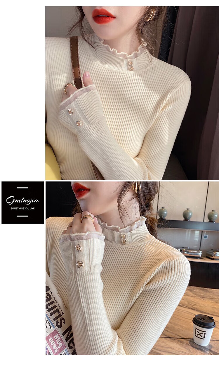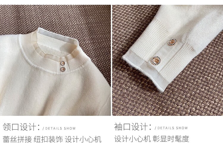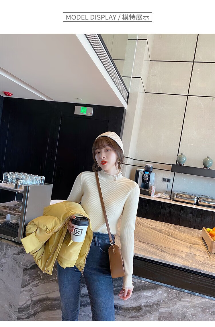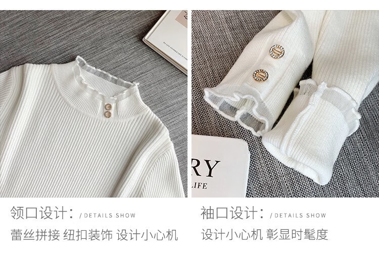 香影纯白色针织打底衫女春秋冬时尚洋气内搭蕾丝半高领毛衣百搭修身上衣 白色 3XL (建议135-150斤)