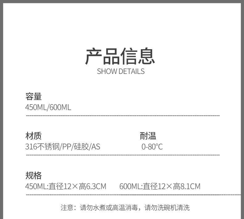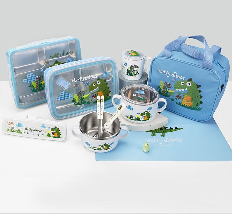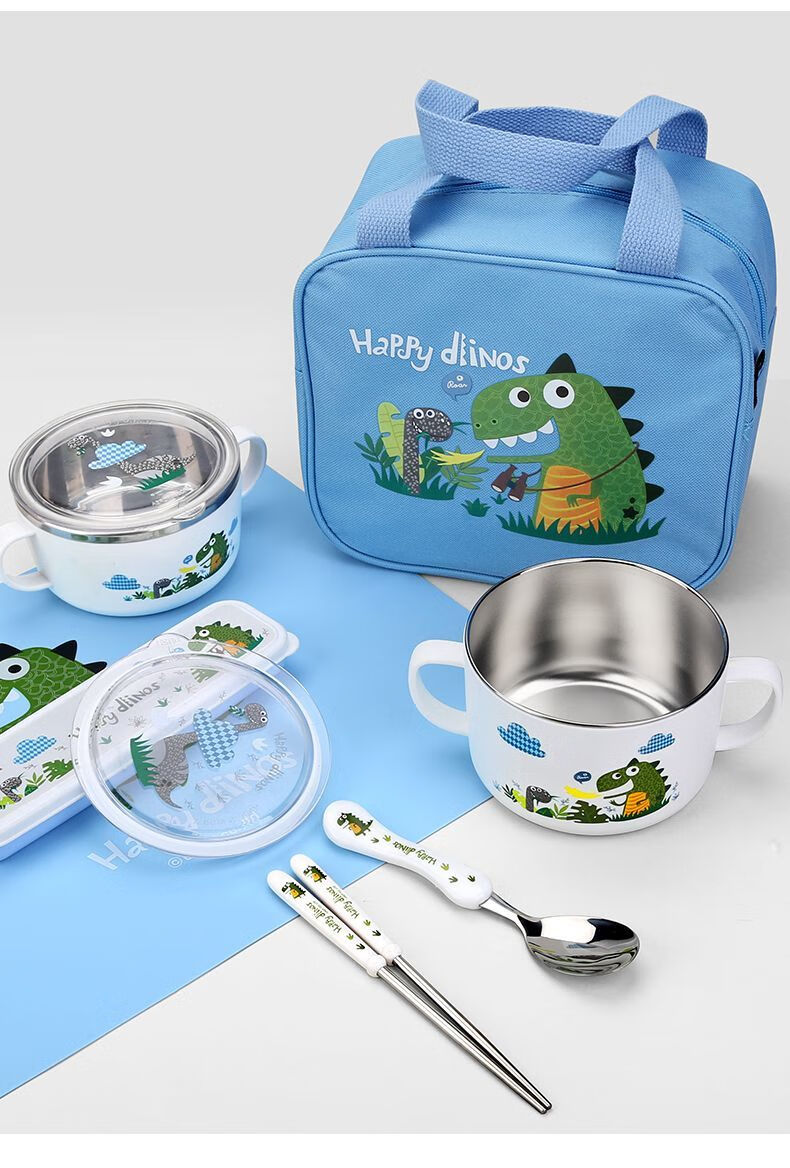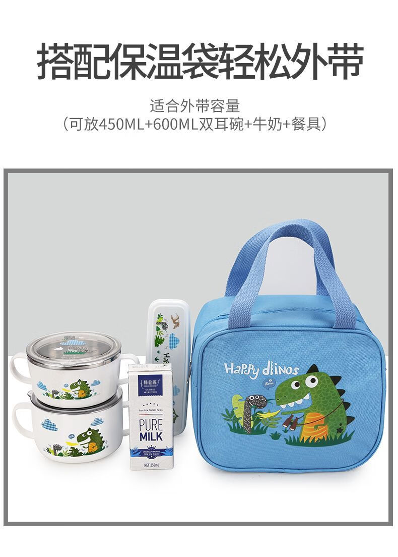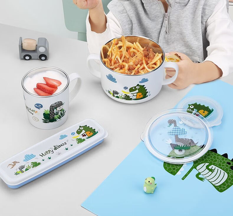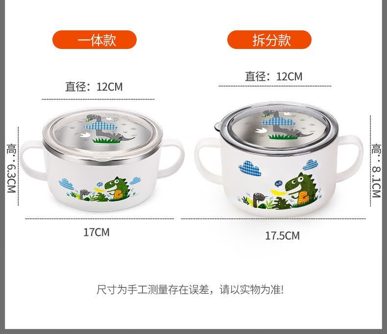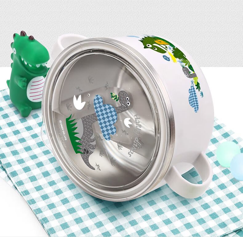 致仕(ZISIZ)儿童碗316不锈钢食品级小学生专用饭碗带盖防摔双耳汤碗带手柄304 【316】小汽车碗-450ml