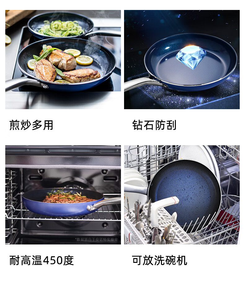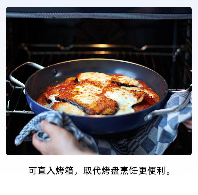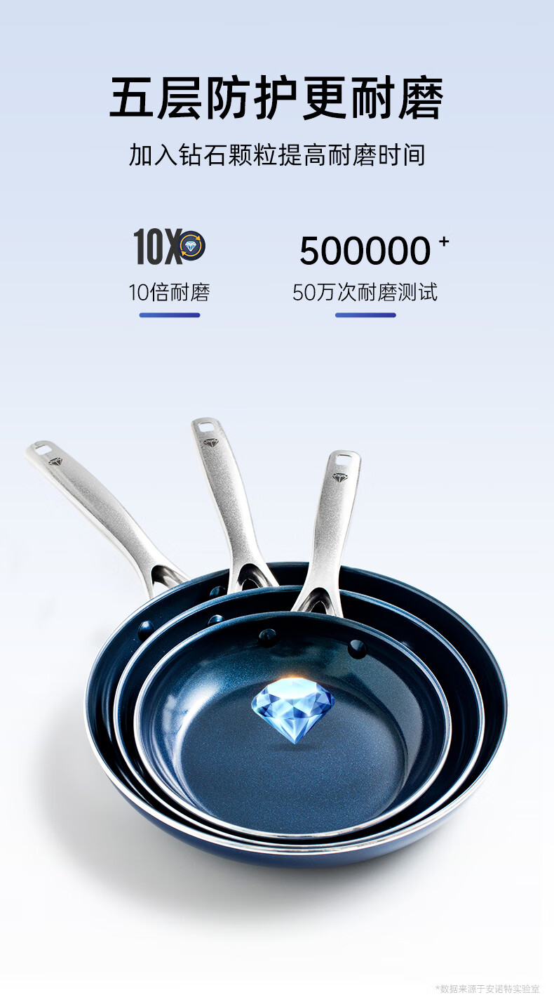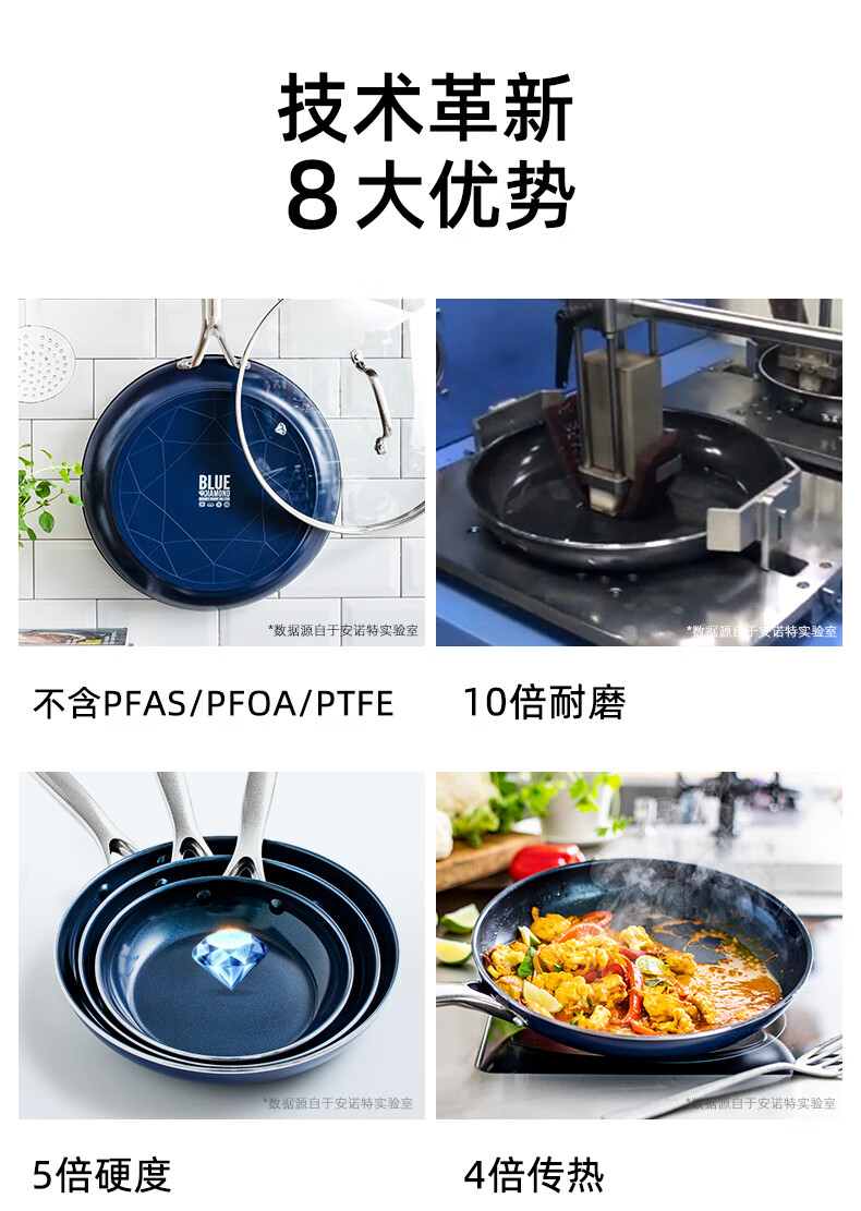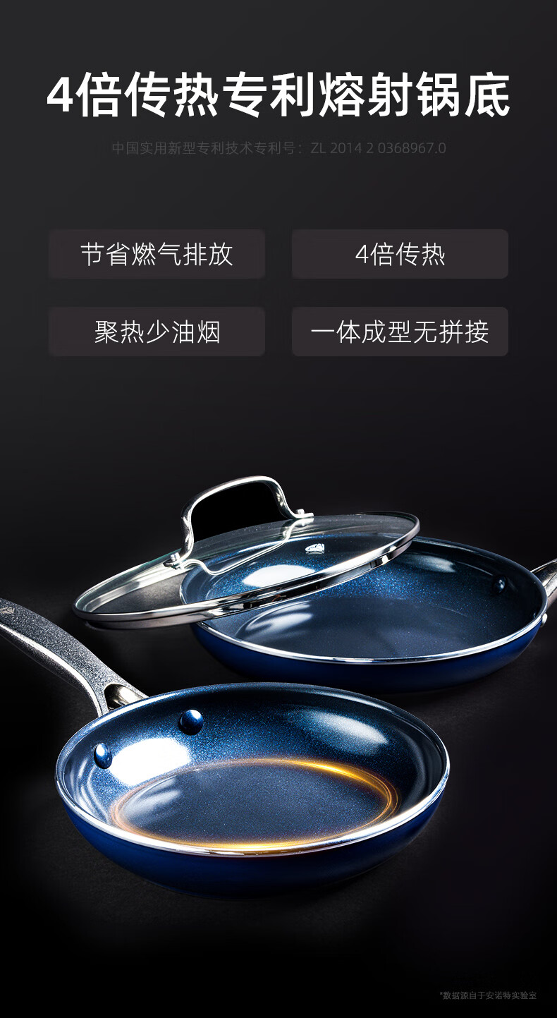 BLUE DIAMOND蓝钻平底锅钻石不粘锅陶瓷煎锅煎蛋家用燃气灶电磁炉通用牛排煎锅 配盖 20cm 8