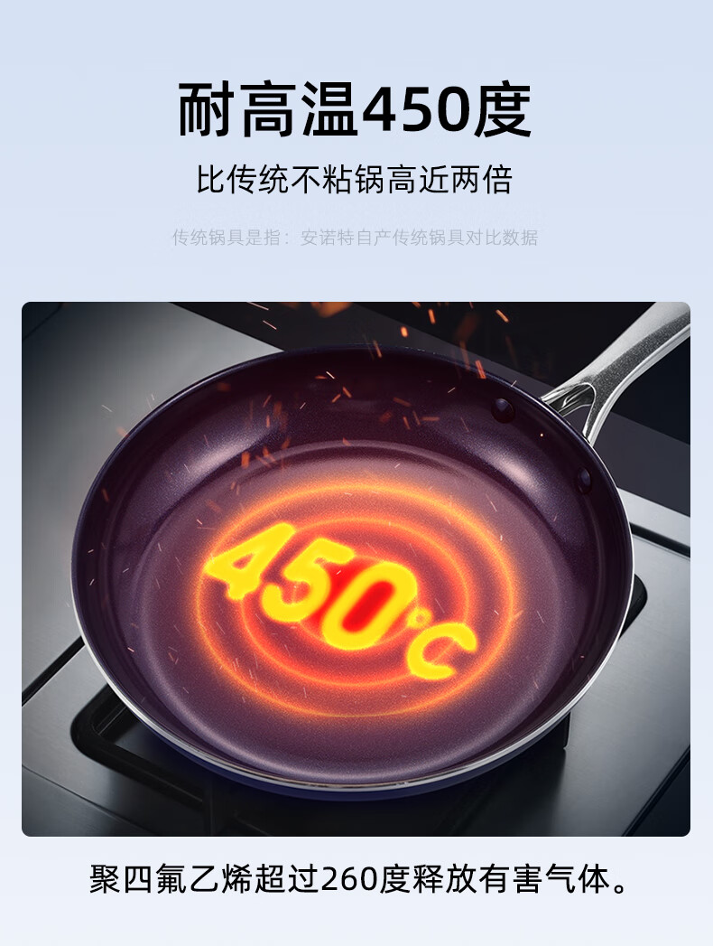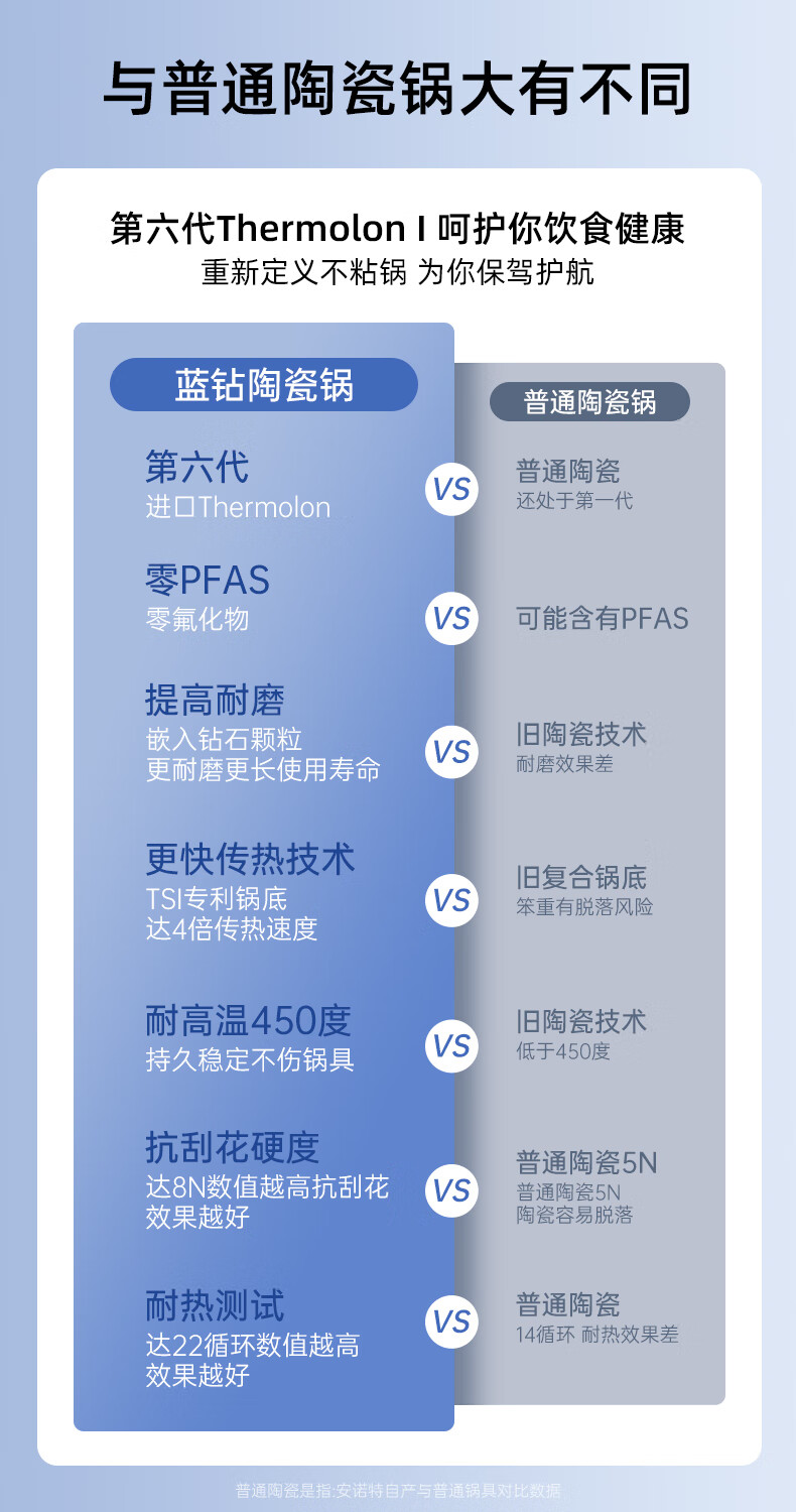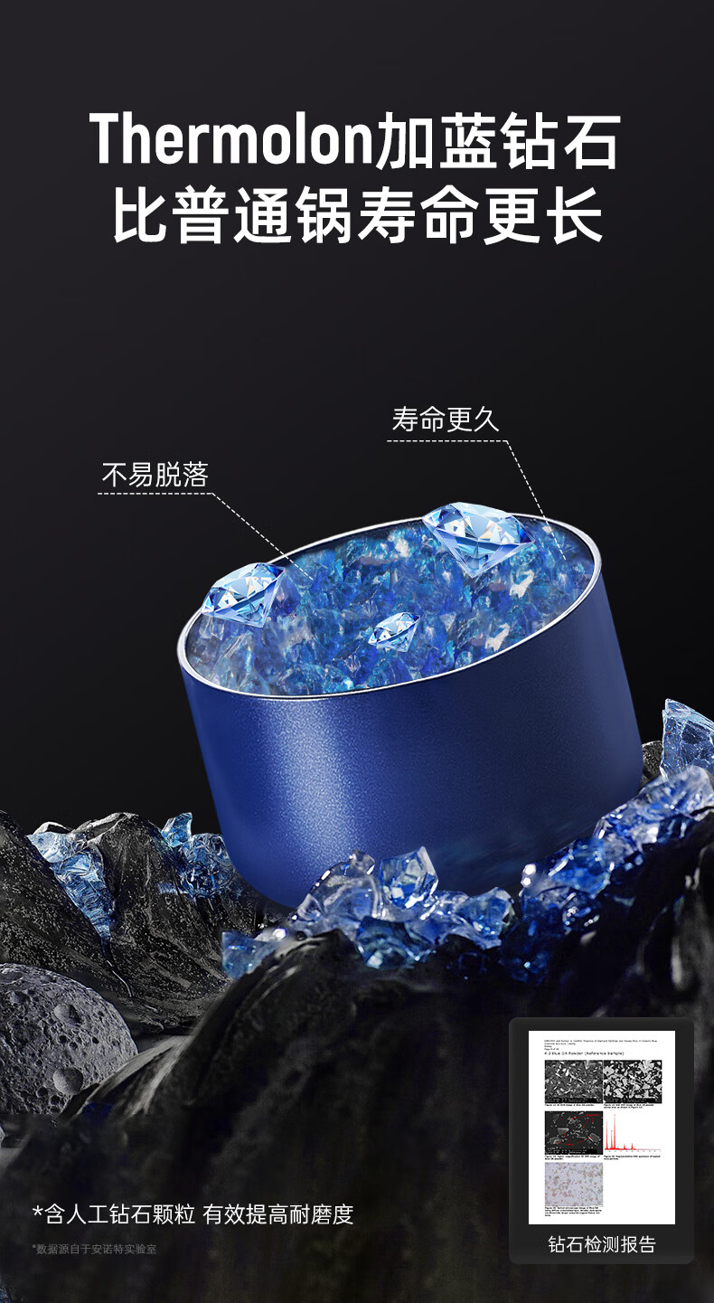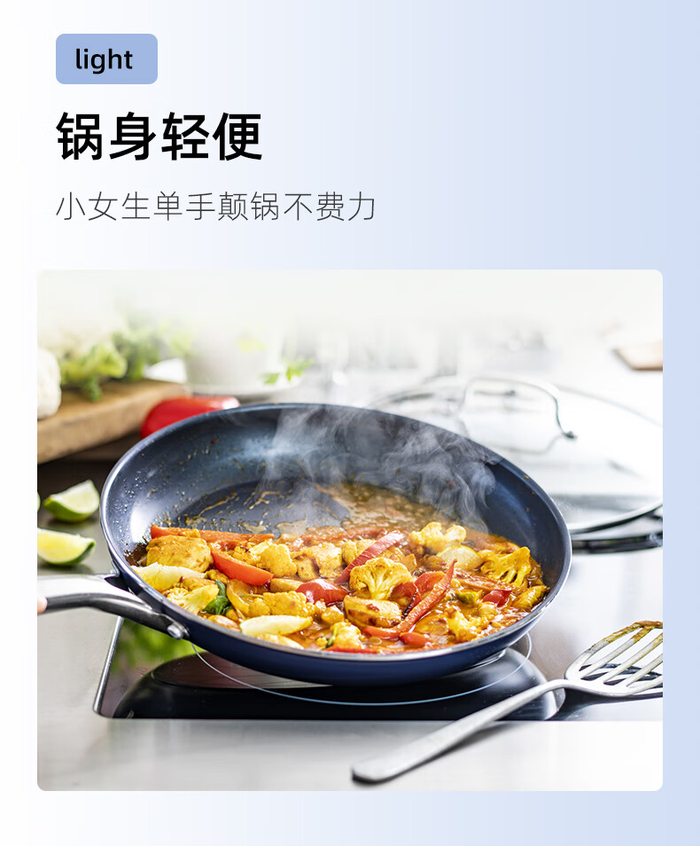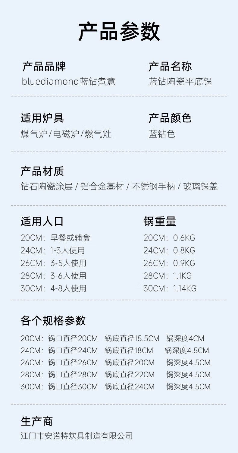 BLUE DIAMOND蓝钻平底锅钻石不粘锅陶瓷煎锅煎蛋家用燃气灶电磁炉通用牛排煎锅 配盖 20cm 8