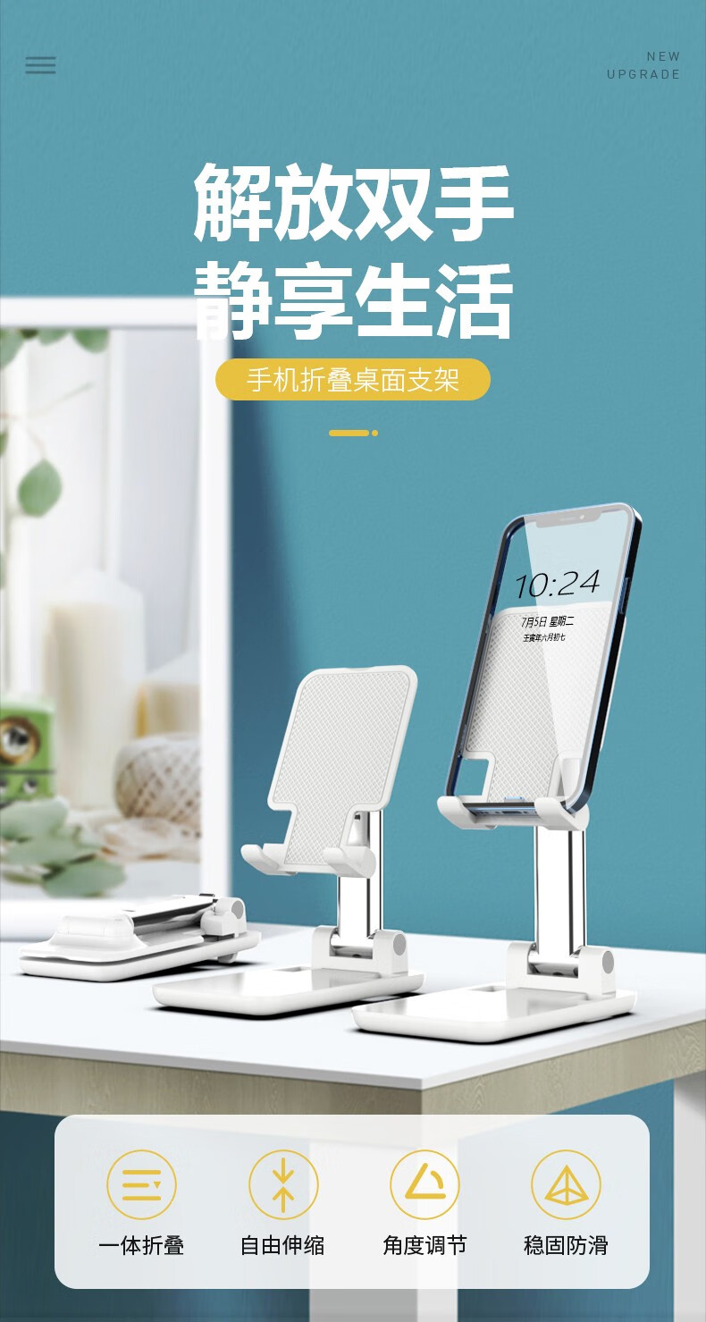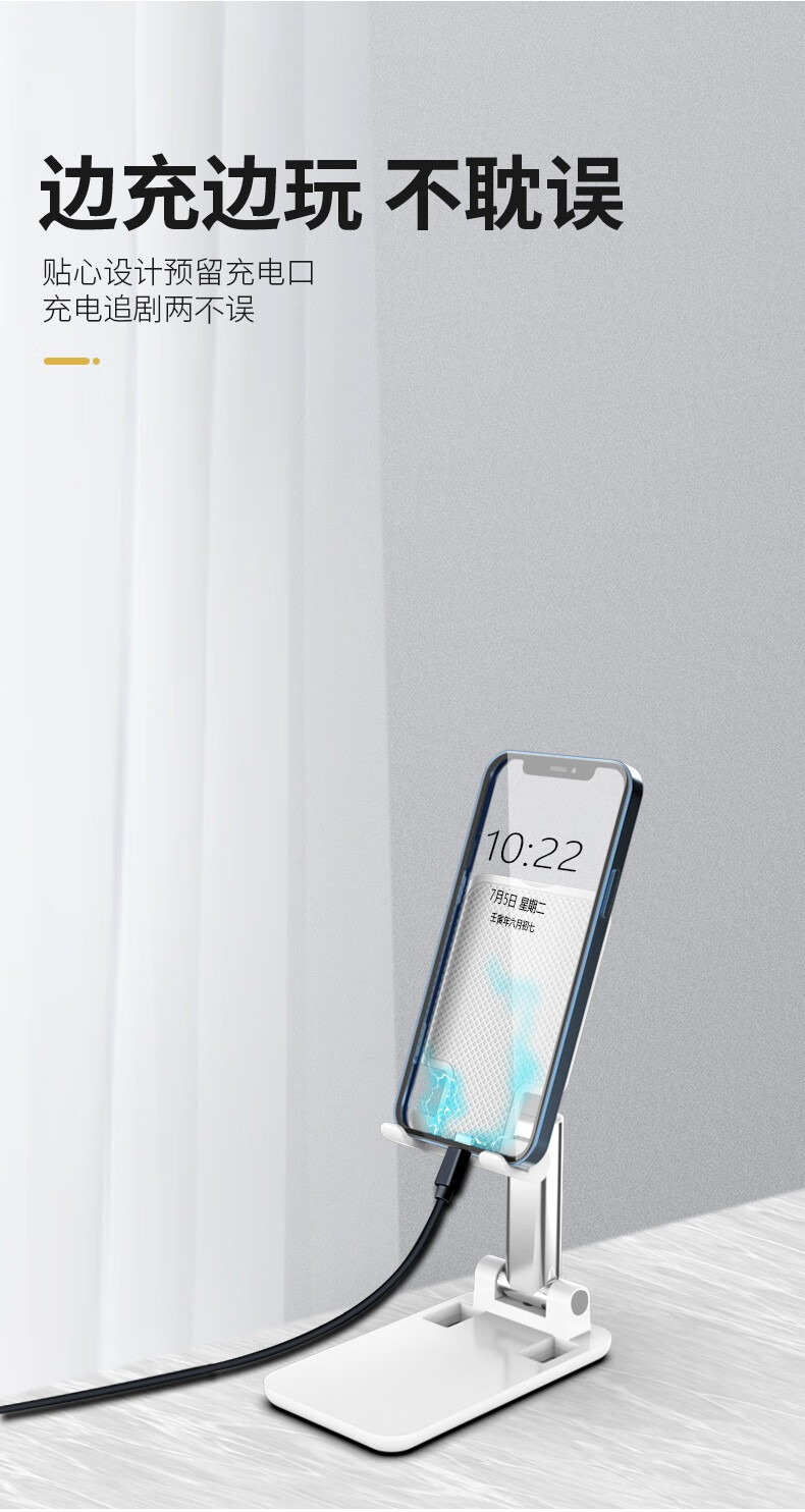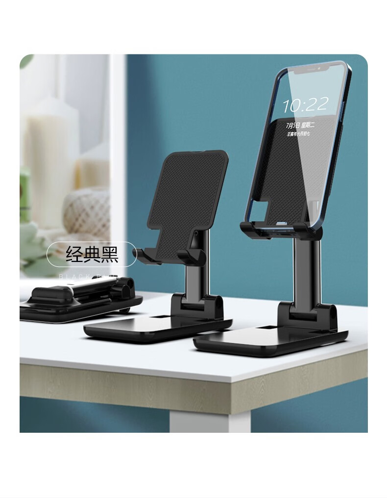 菲尔克【现货直发】 手机支架桌面网红上网课多功能可折叠便携伸缩升降 T9【火暴款支架-可伸缩】丨灵活挂钩-雪夜黑