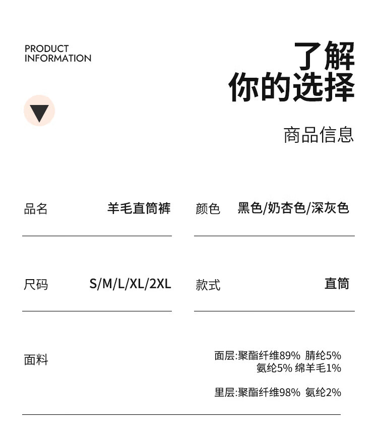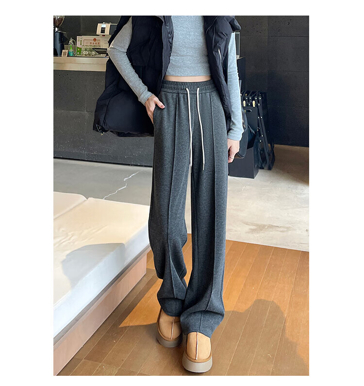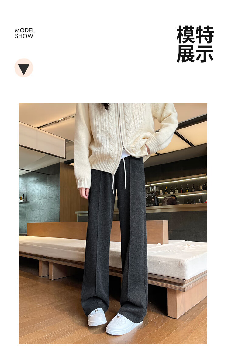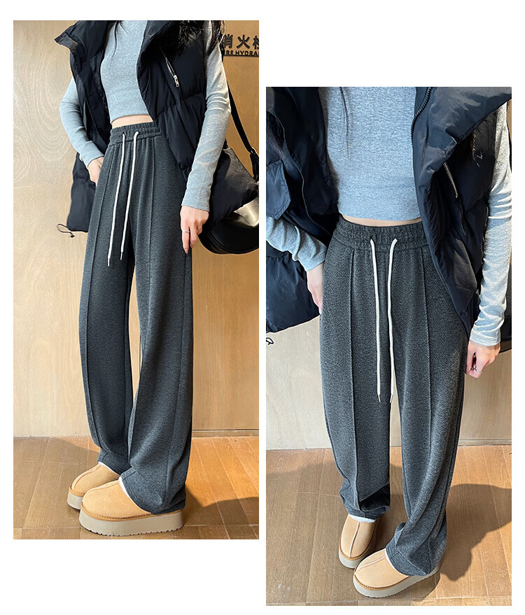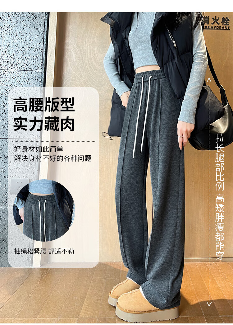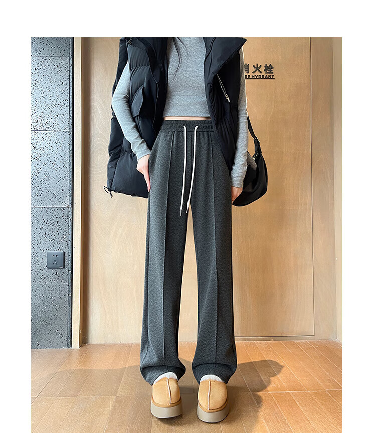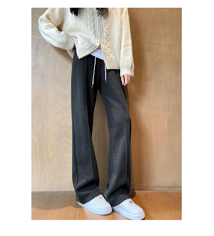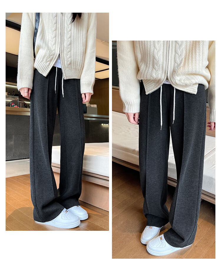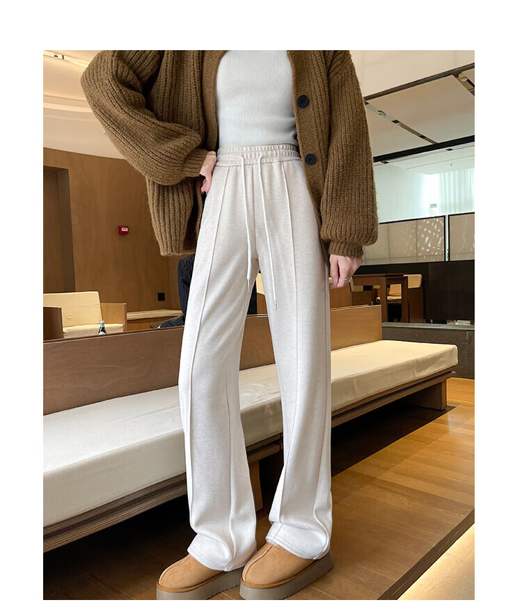 浪莎人字纹毛呢阔腿裤女秋冬季2025新款加绒加厚休闲窄版羊毛直筒裤子 奶杏色 【羊毛亲肤保暖】 XL 【适合125-140斤】