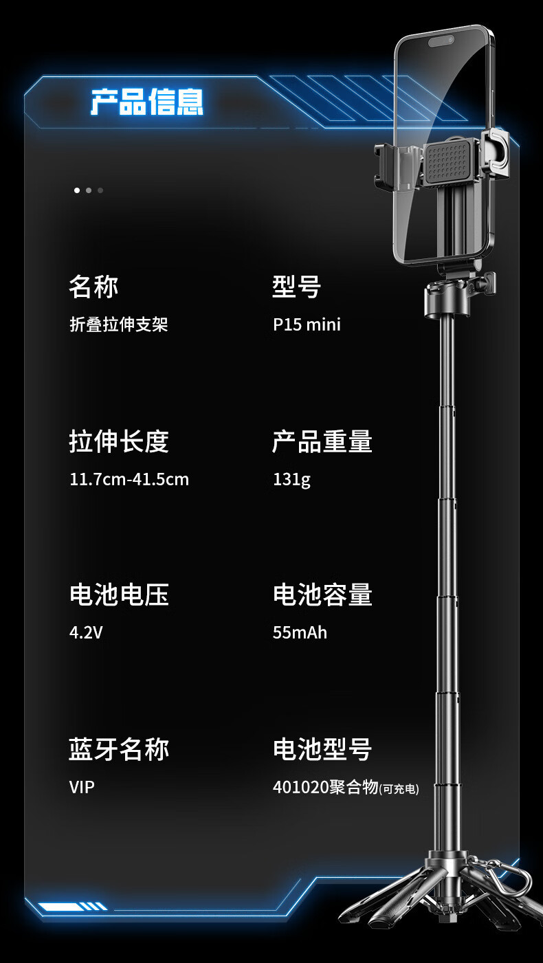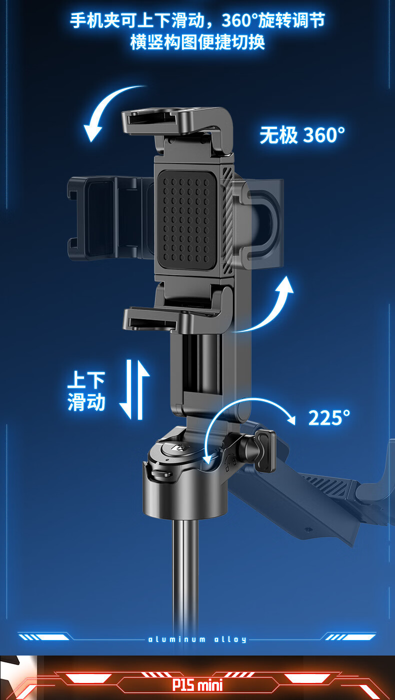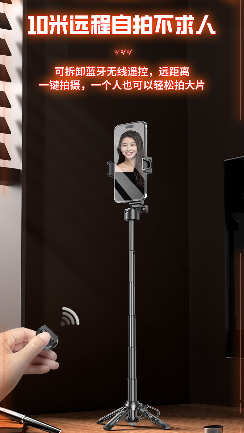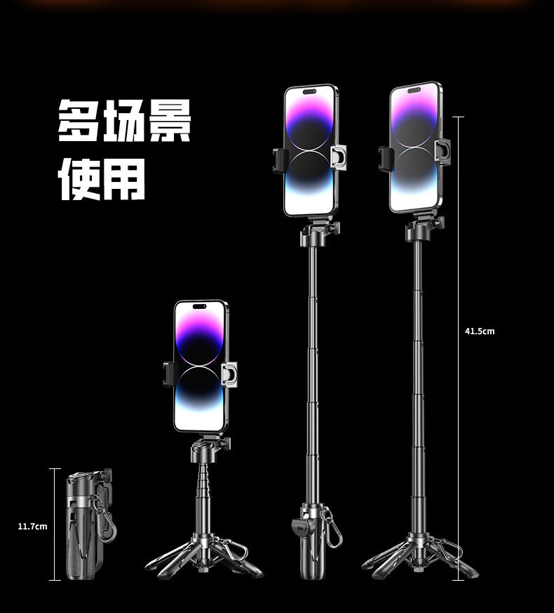宇缤迷你自拍杆2025新款手机通用落地三脚架旅游便携个人拍摄vlog自拍神器360度旋转手持防直播支架 黑色·超迷你自拍杆+充电蓝牙遥控器