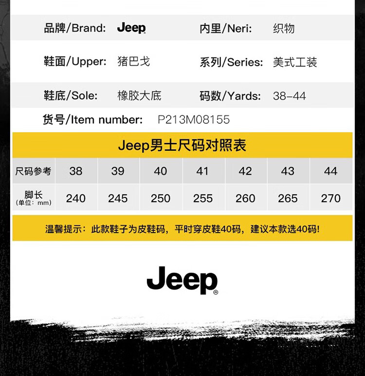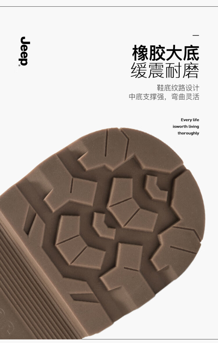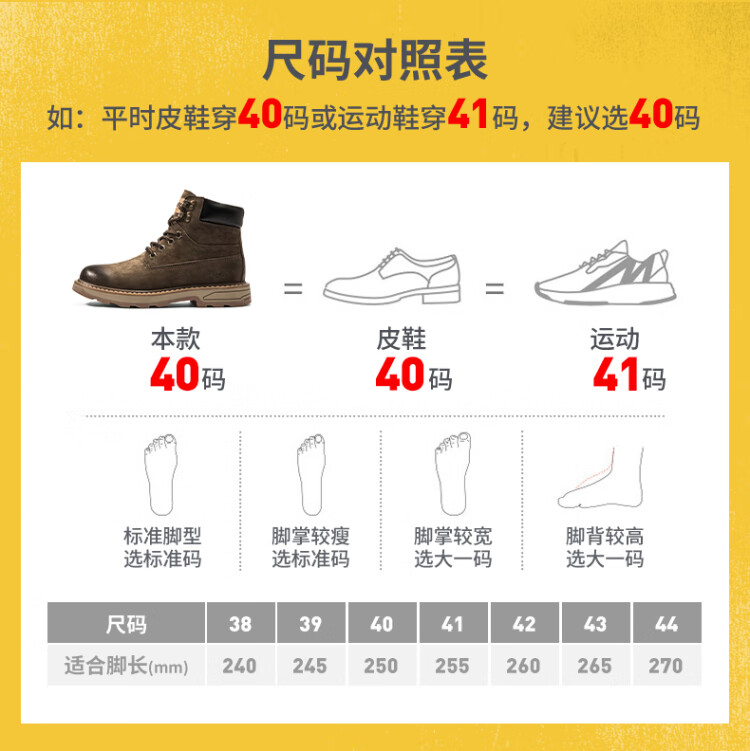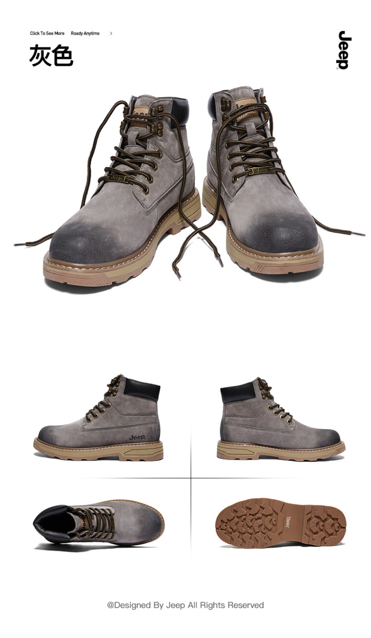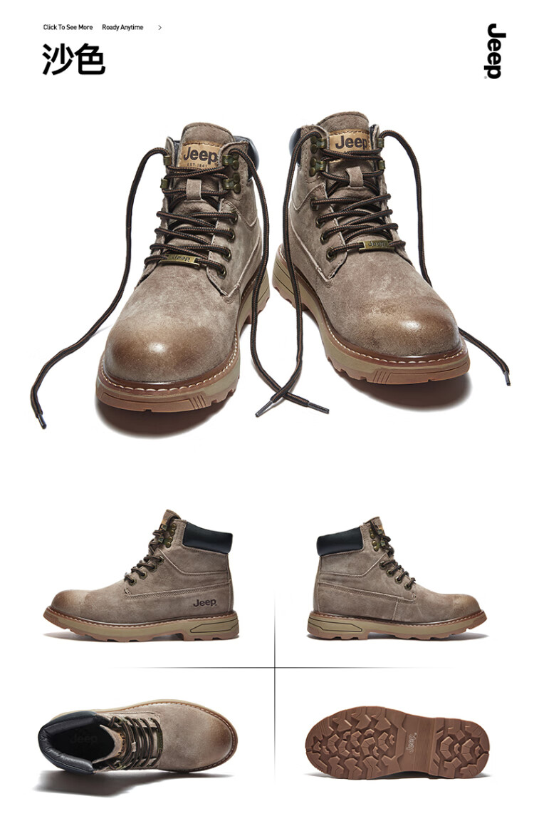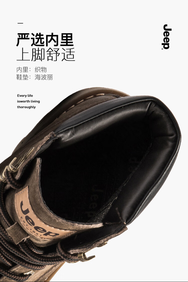 JEEP吉普马丁靴男秋冬季男士高帮百搭复古英伦风增高工装大黄靴子男鞋 卡其色 42