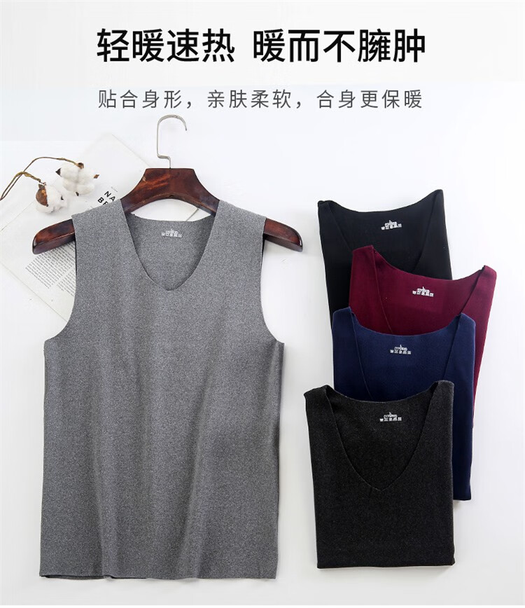 北极绒(Bejirog)秋冬男士德狨无痕保暖背心加绒恒温马甲打底衫内穿 男士德绒浅灰2件装 3XL 适用体重《150-175斤》