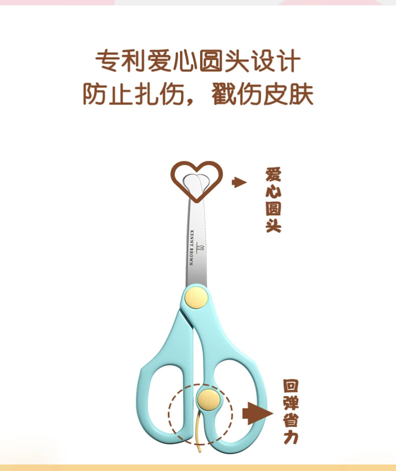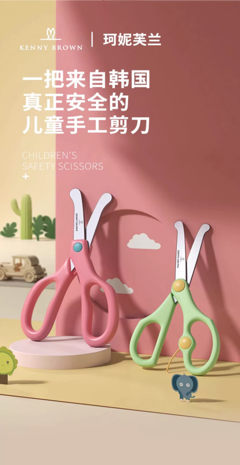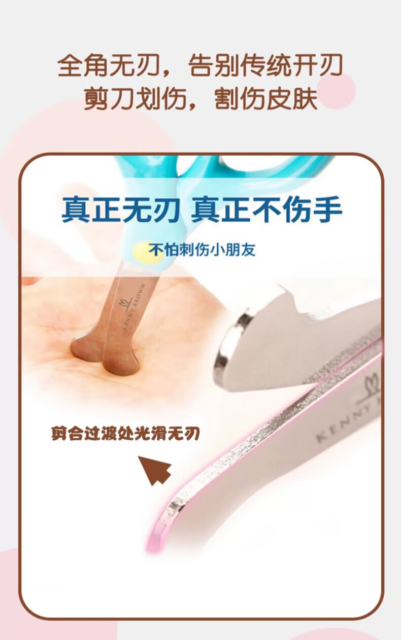 珂妮芙兰Kenny Brown 韩国儿童安全剪刀儿童剪纸无刃无尖圆头不伤手幼儿宝宝3-6岁手工小剪刀 2-4岁 (带回弹粉色)