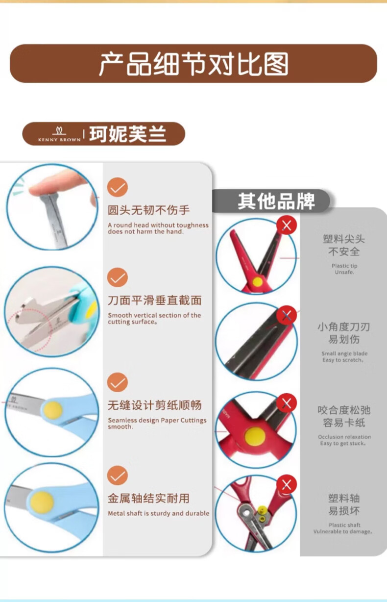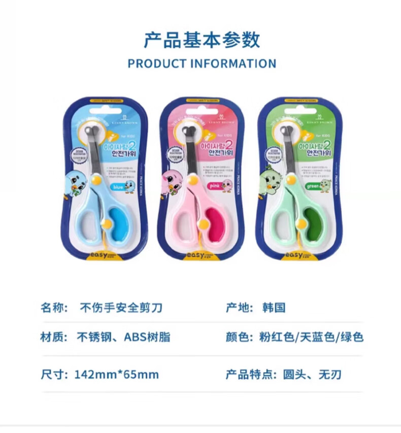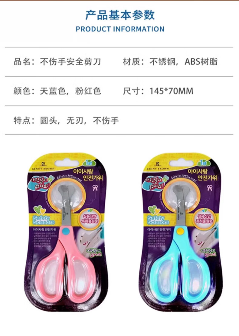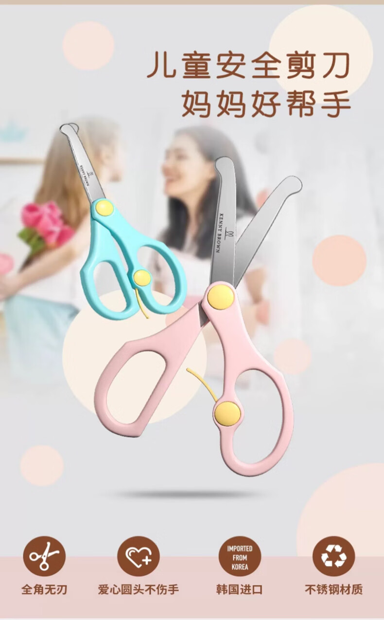 珂妮芙兰Kenny Brown 韩国儿童安全剪刀儿童剪纸无刃无尖圆头不伤手幼儿宝宝3-6岁手工小剪刀 2-4岁 (带回弹粉色)