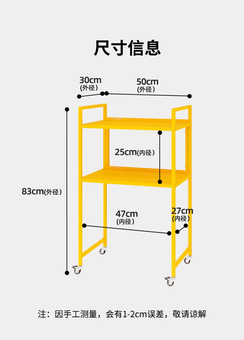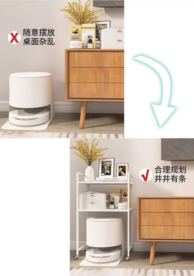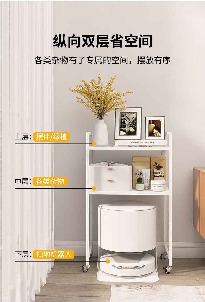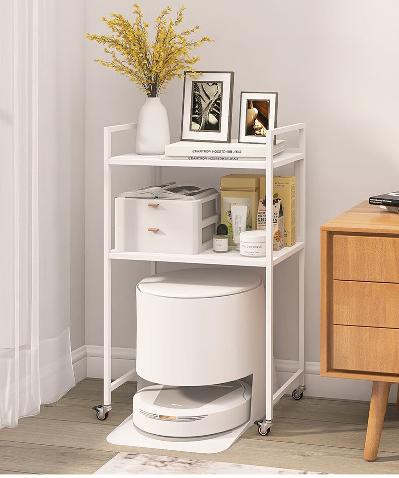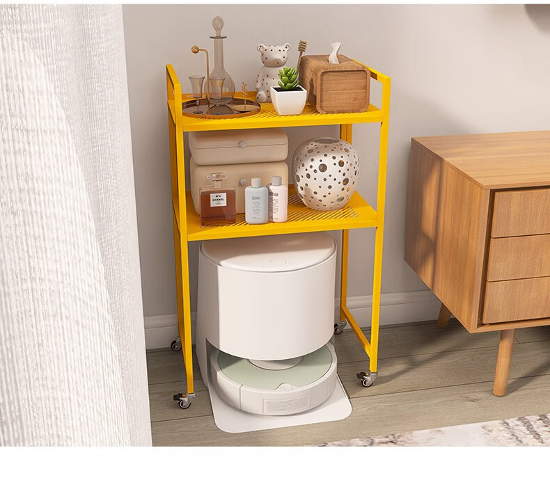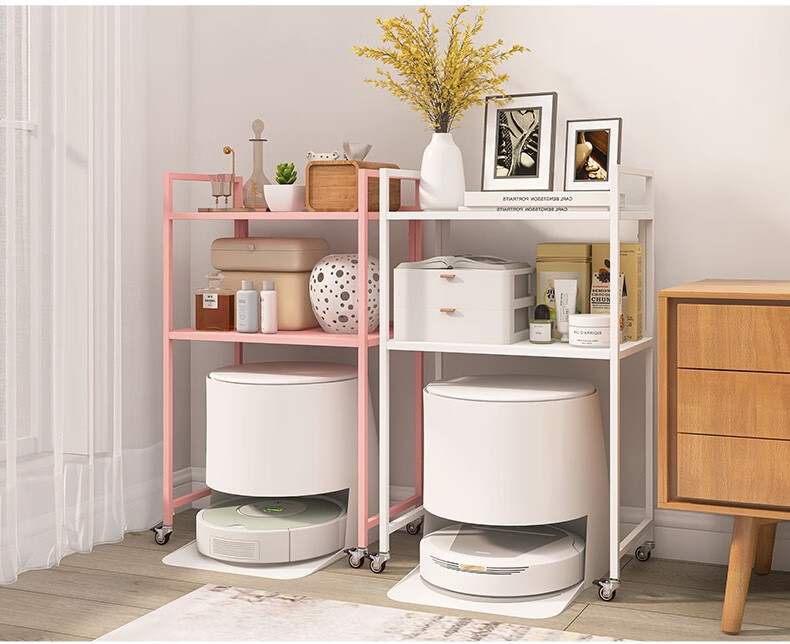 峰阳货架 扫地机器人上方置物架 带轮子可移动 落地二层家用方管架子 黑色 方管型50*30*83cm