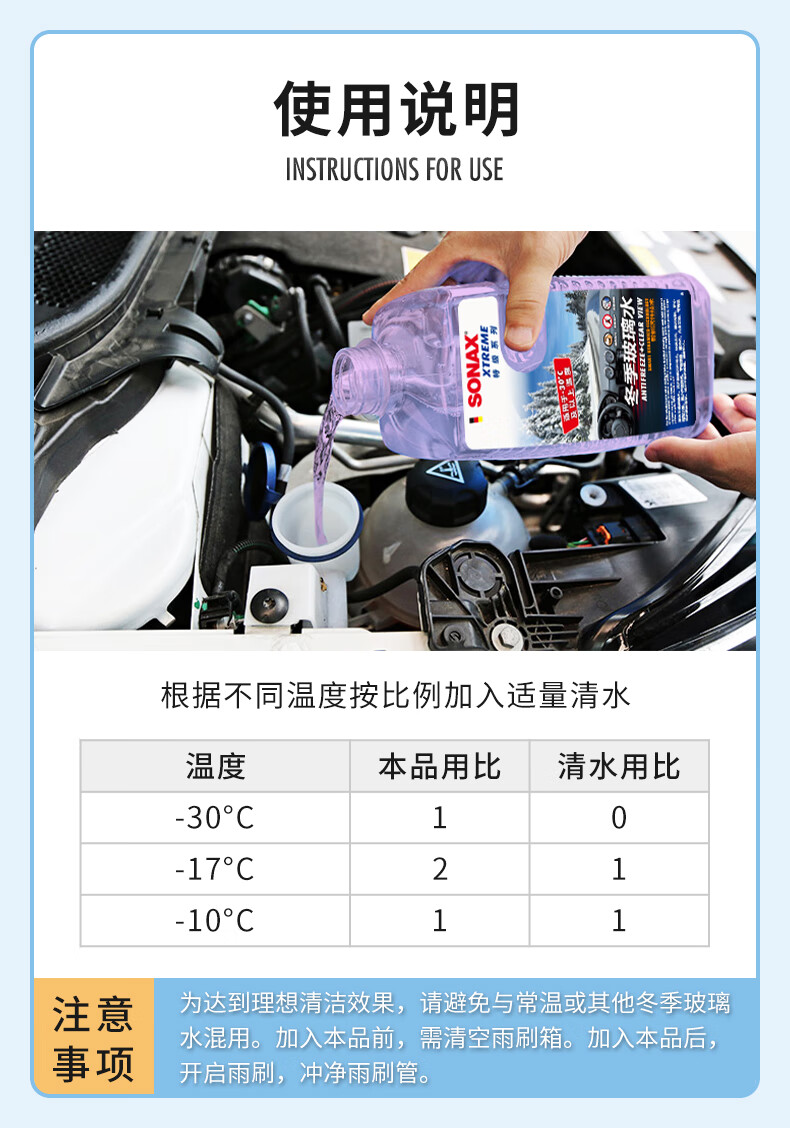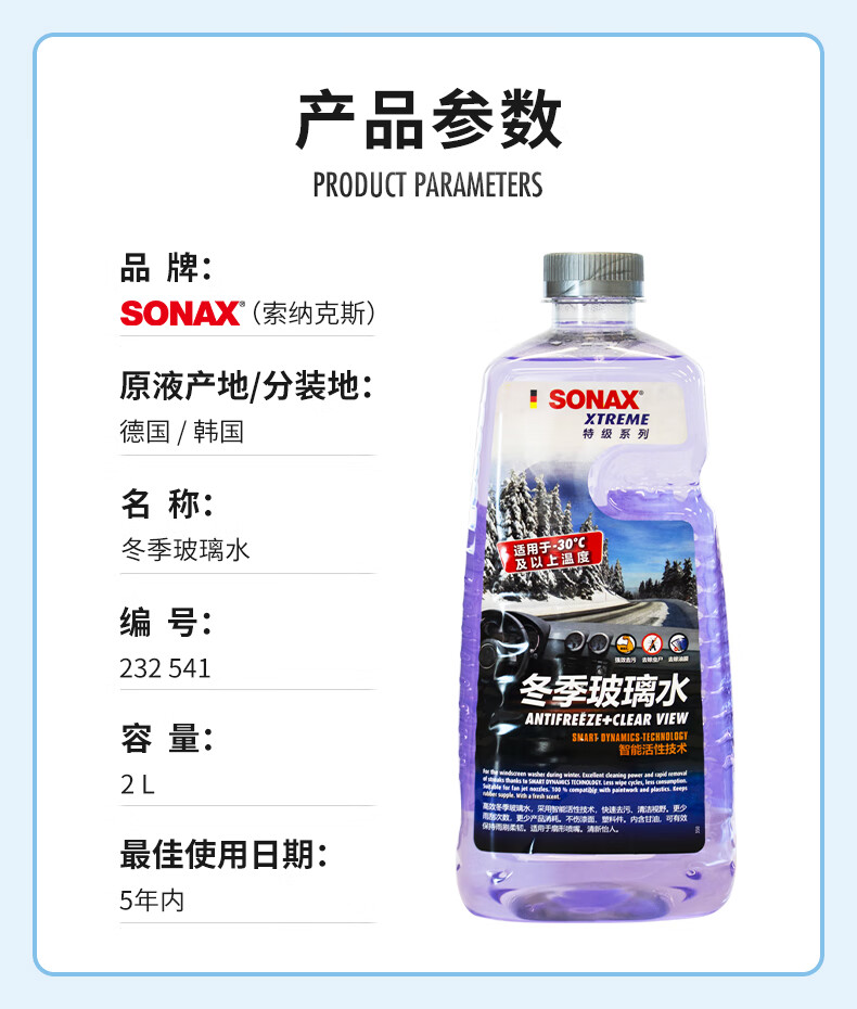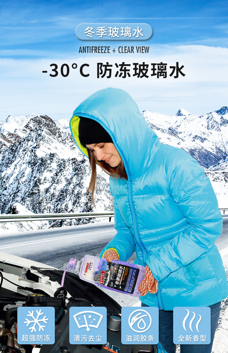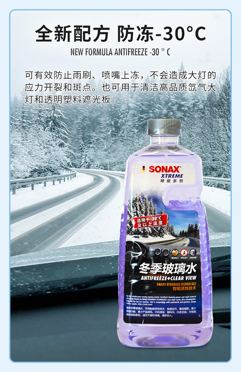 索纳克斯德国进口冬季防冻玻璃水-30°C活性滋润快速去污乙醇雨刮水2L 【-25°】防冻玻璃水2L*4瓶