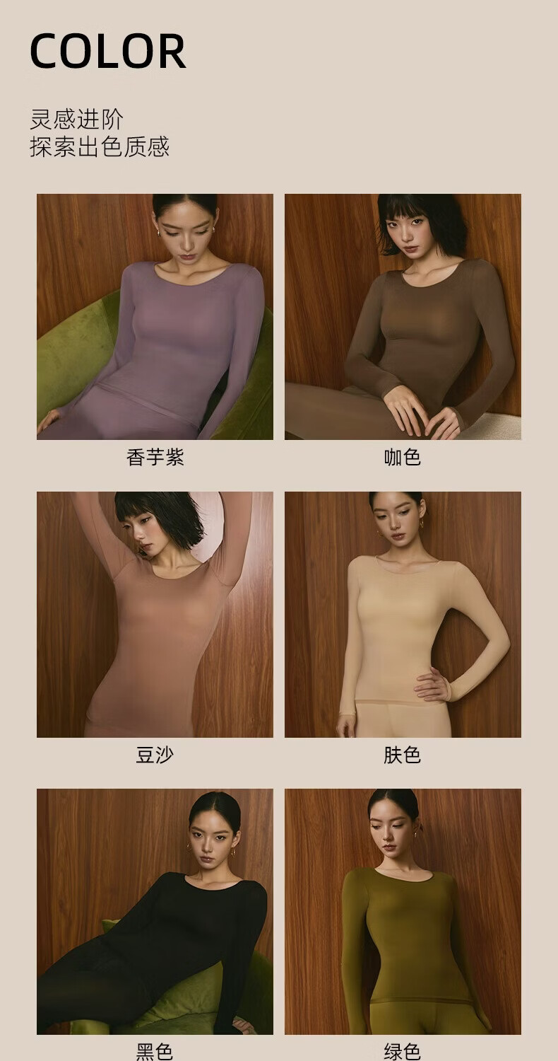 UFEEL肉色美肤衣秋裤保暖内衣女拒绝臃肿套装秋冬玻尿酸恒温基底衣038 经典黑+芋泥紫 2XL (144-170斤)