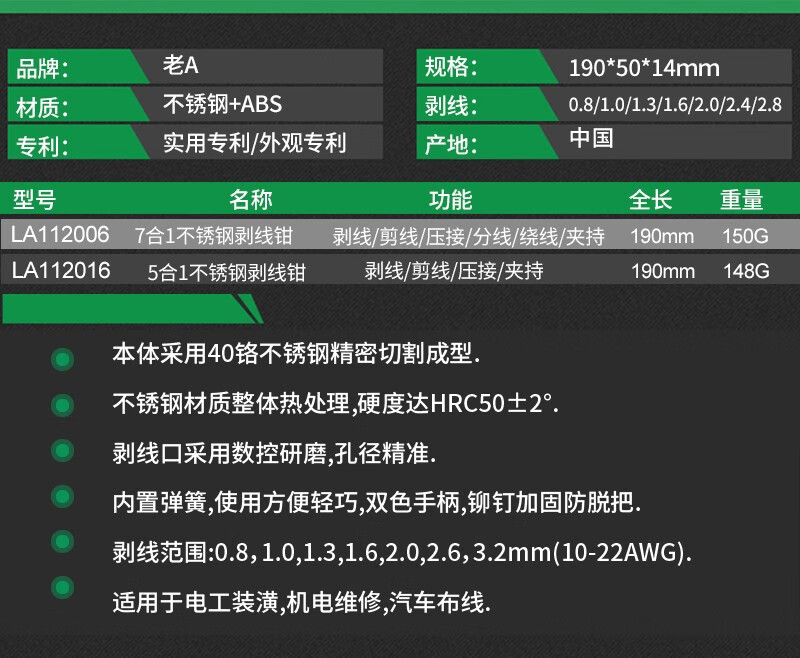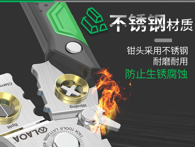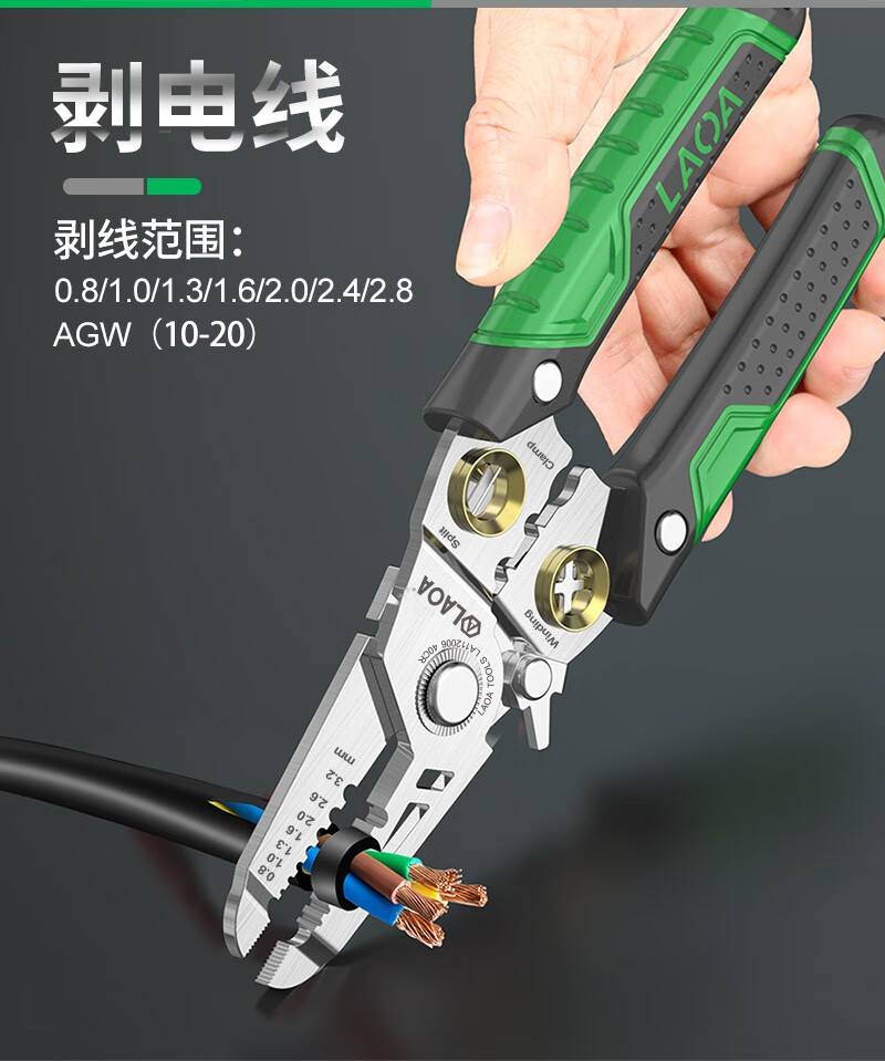 LAOA不锈钢剥线钳 多功能光纤拔线剪线钳电缆剪刀扒线压线钳电工工具 8合1剥线钳(带测电功能)