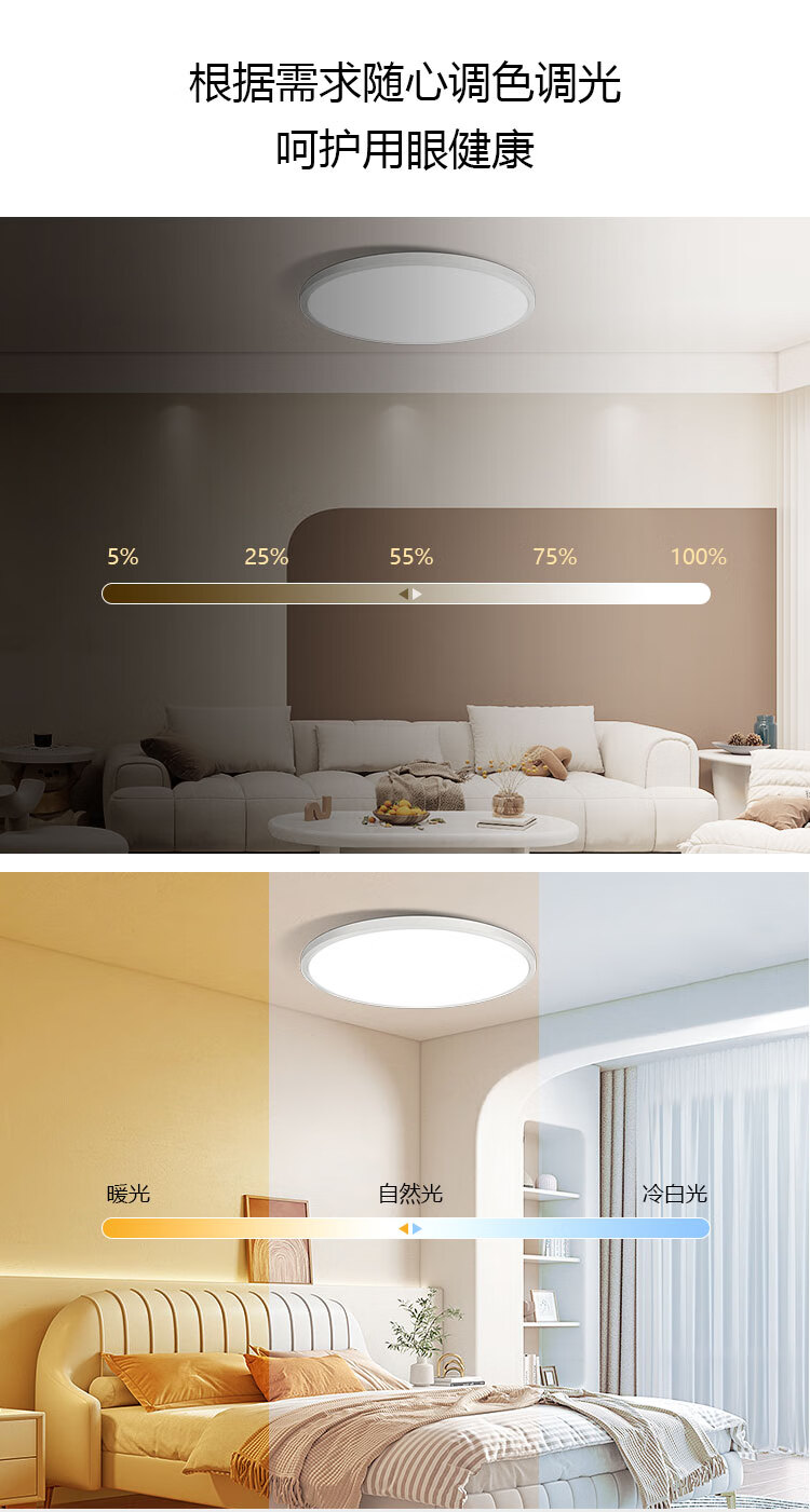 三雄极光led吸顶灯全光谱护眼客厅灯餐厅灯防蓝光书房灯具 128W 30㎡内适用 6800lm P3智控·接入米家app