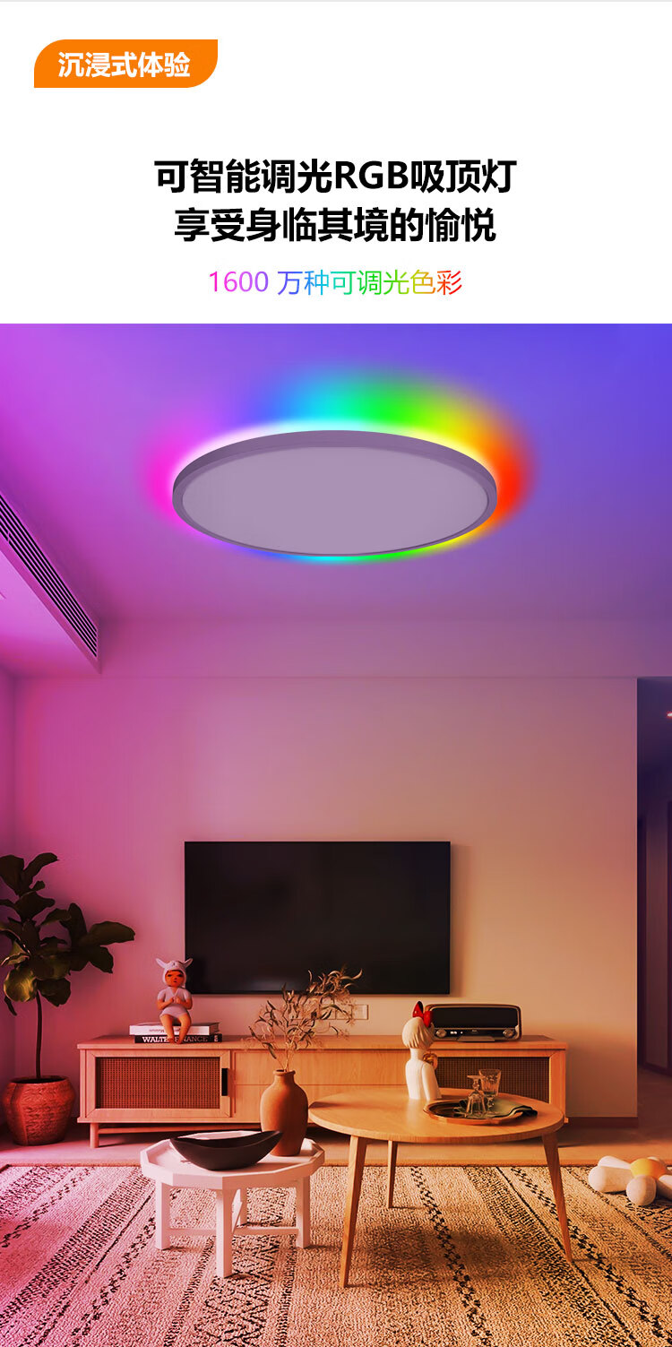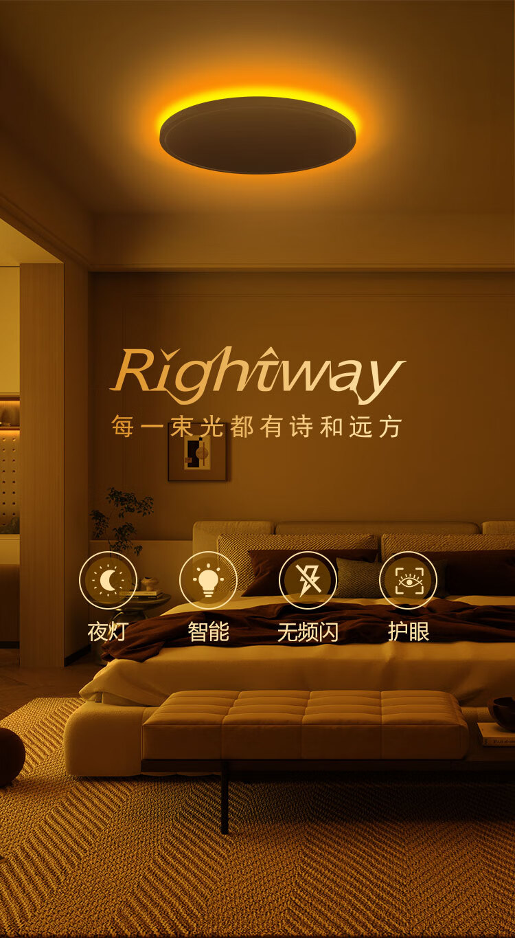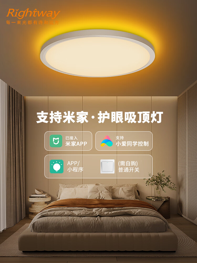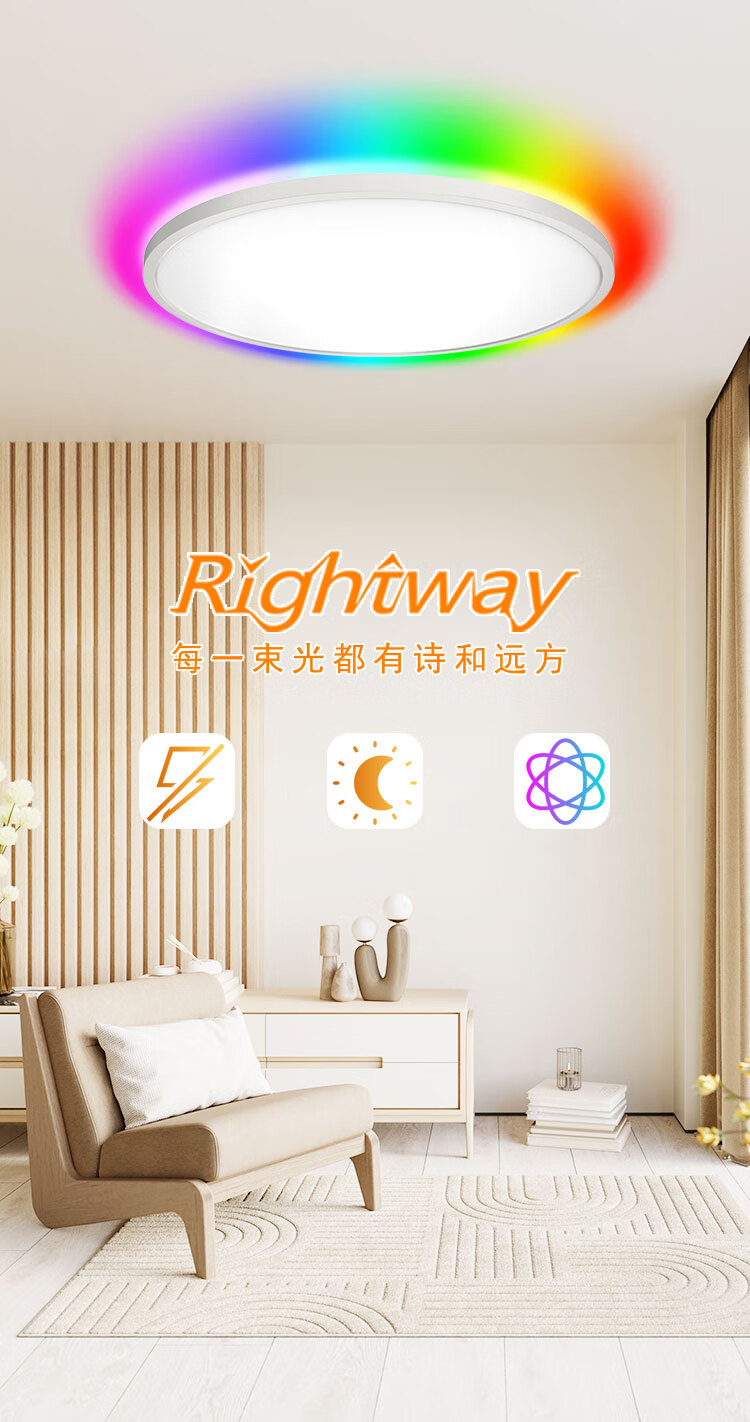 RIGHTWAY智能吸顶灯卧室护眼灯led灯客厅灯简约现代大气家用2025年新款 背面RGB多彩款-40cm 10-20㎡