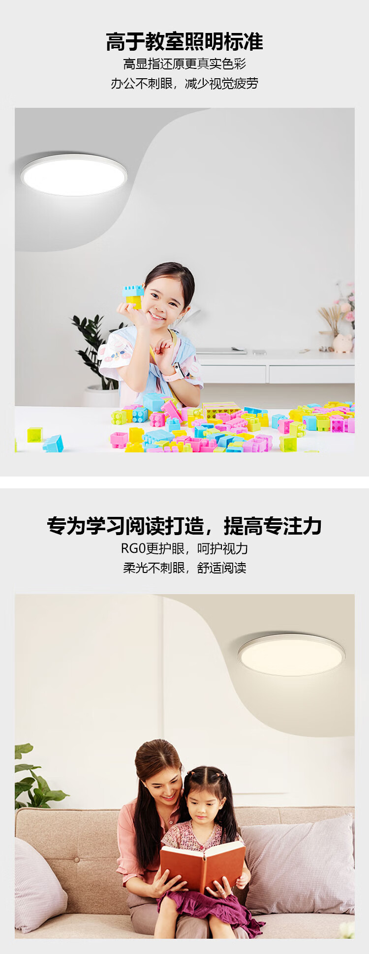LIGHTPOOL 全光谱吸顶灯 客厅儿童书房 卧室 rg0低蓝光防频闪led护眼吸顶灯 28W 8㎡内适用 2000lm 超薄三色侧发光