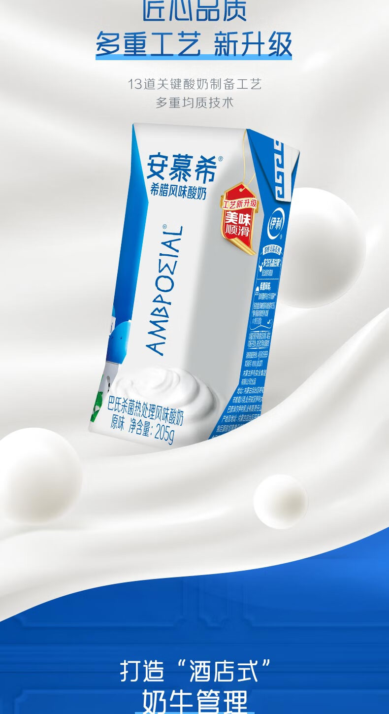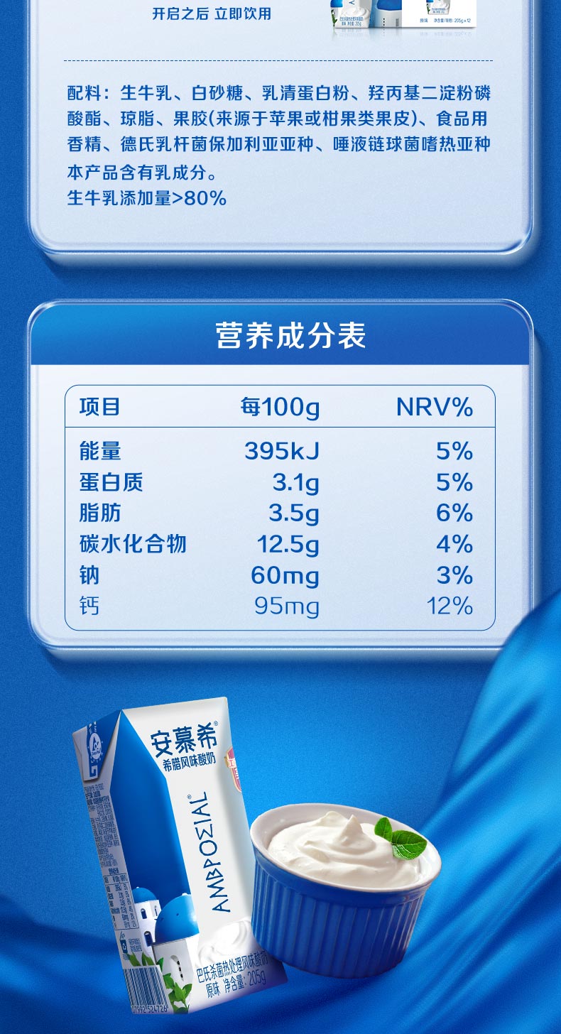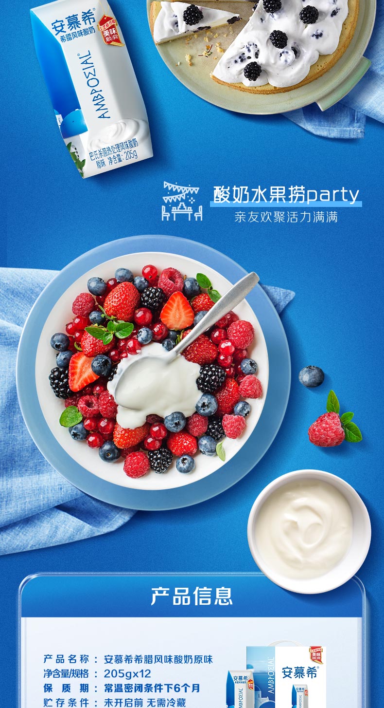 安慕希伊利希腊风味常温酸奶原味整箱牛奶乳品儿童营养过年年货礼盒9月 原味升级装205gx12盒x1箱