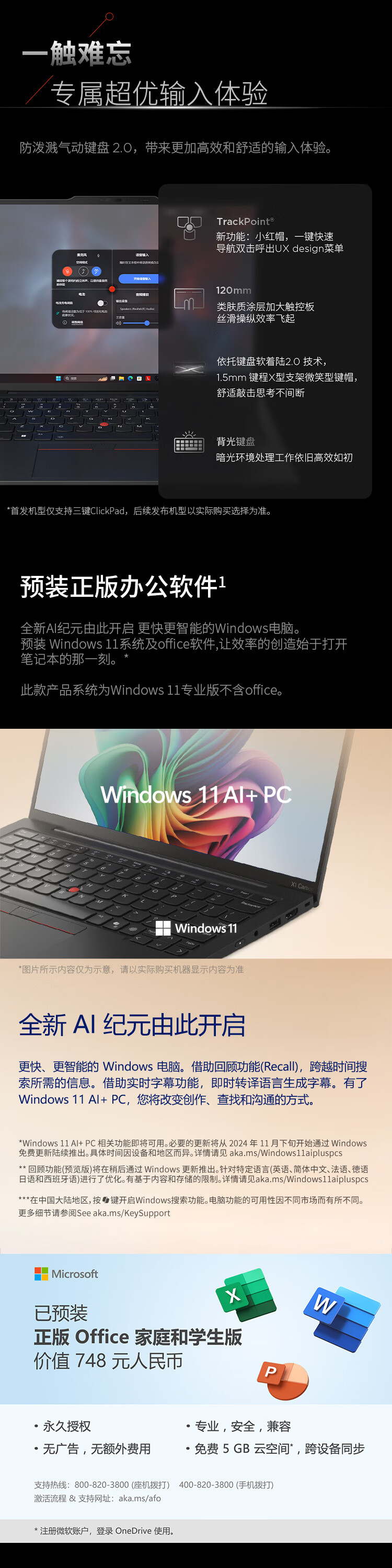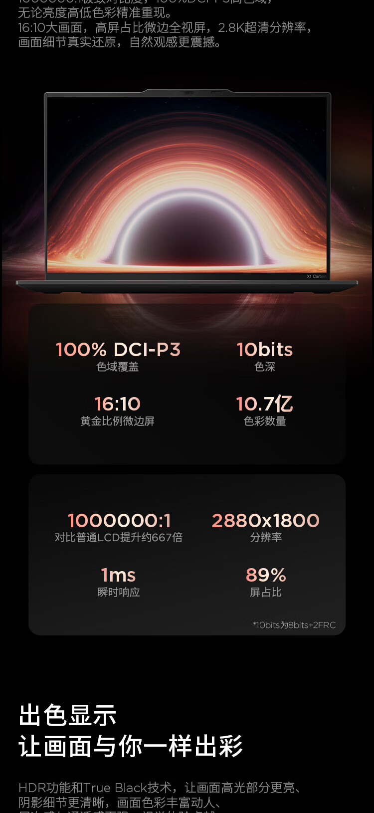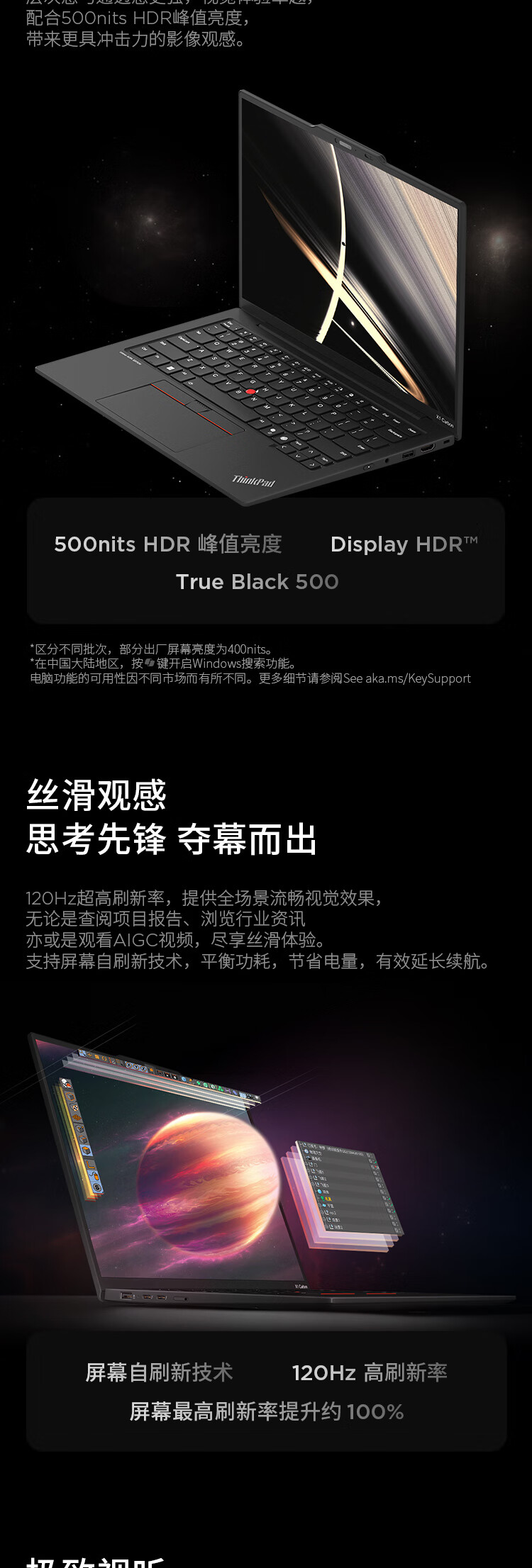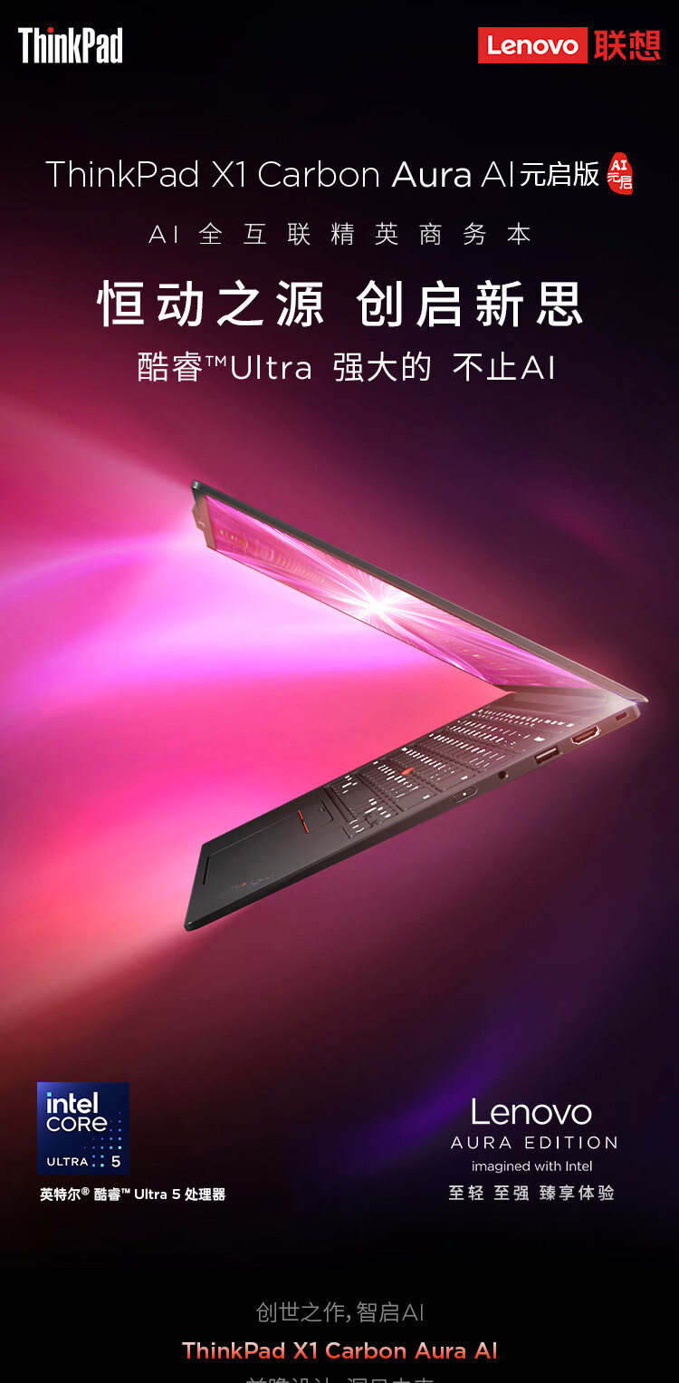 ThinkPad X1 Carbon Aura AI 2025酷睿Ultra5-228V 全互联商务办公笔记本电脑32G 512GB OLED(P6CD)