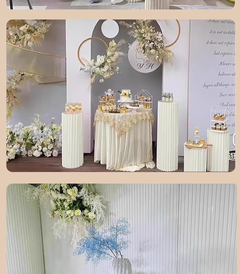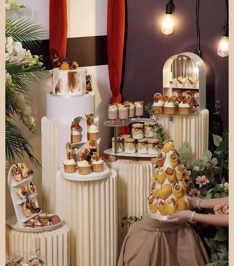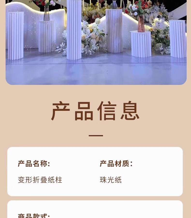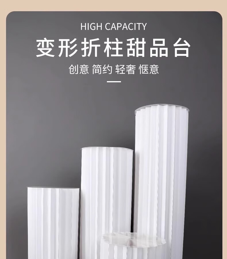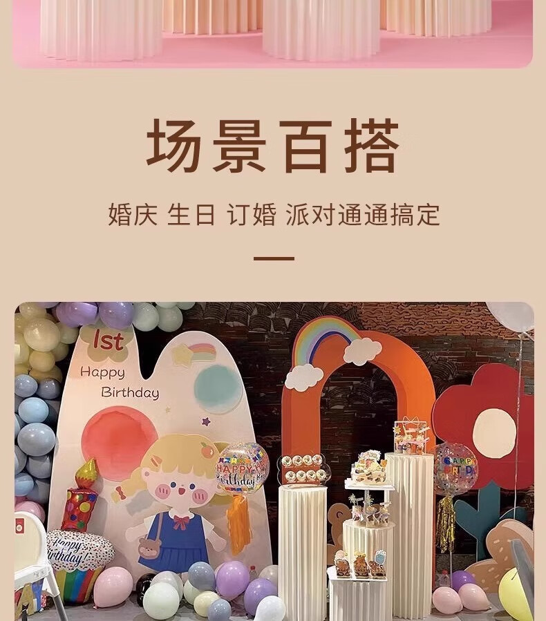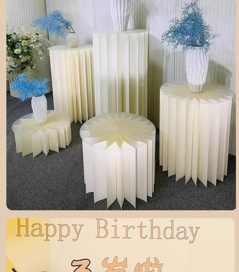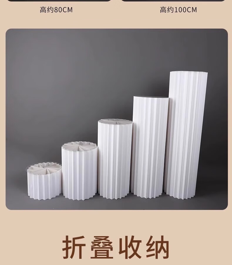 抓周道具用品折叠甜品台婚庆摆件罗马柱路引圆柱立柱橱窗折纸装饰柱子 直径30高40/60/80厘米送面板