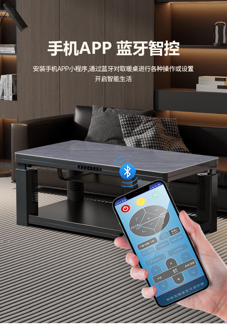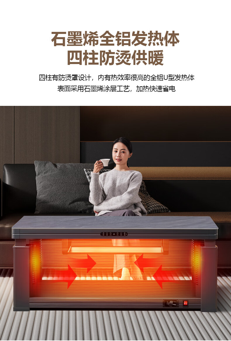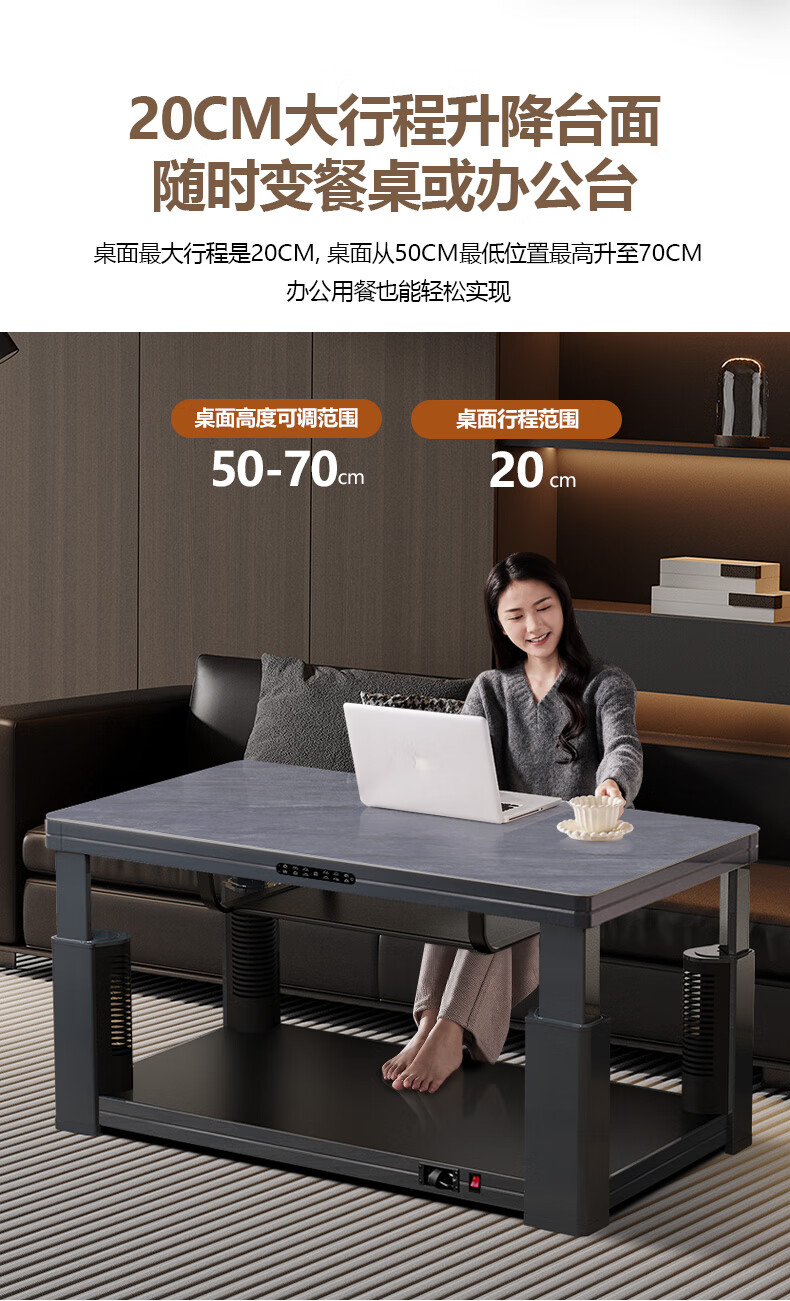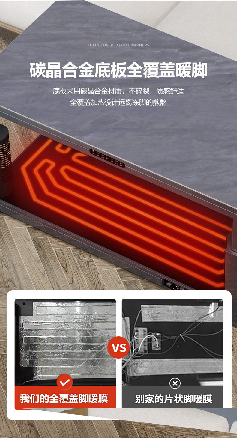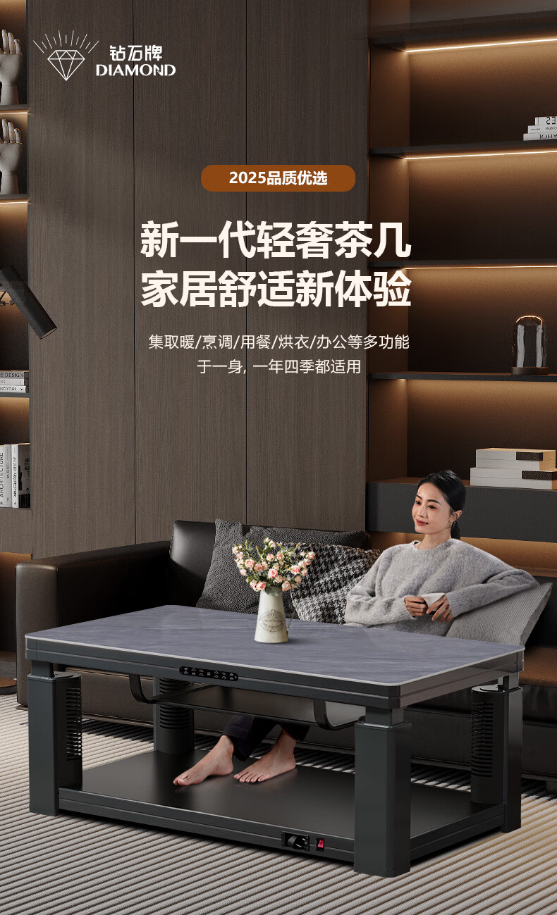 钻石牌电暖桌烤火桌长方形电热电炉取暖桌升降茶几电暖炉电烤桌客厅烤火炉桌子一体家用冬季多功能取暖器 ZS-RZ90黑灰-格慕灰-WL1270Y