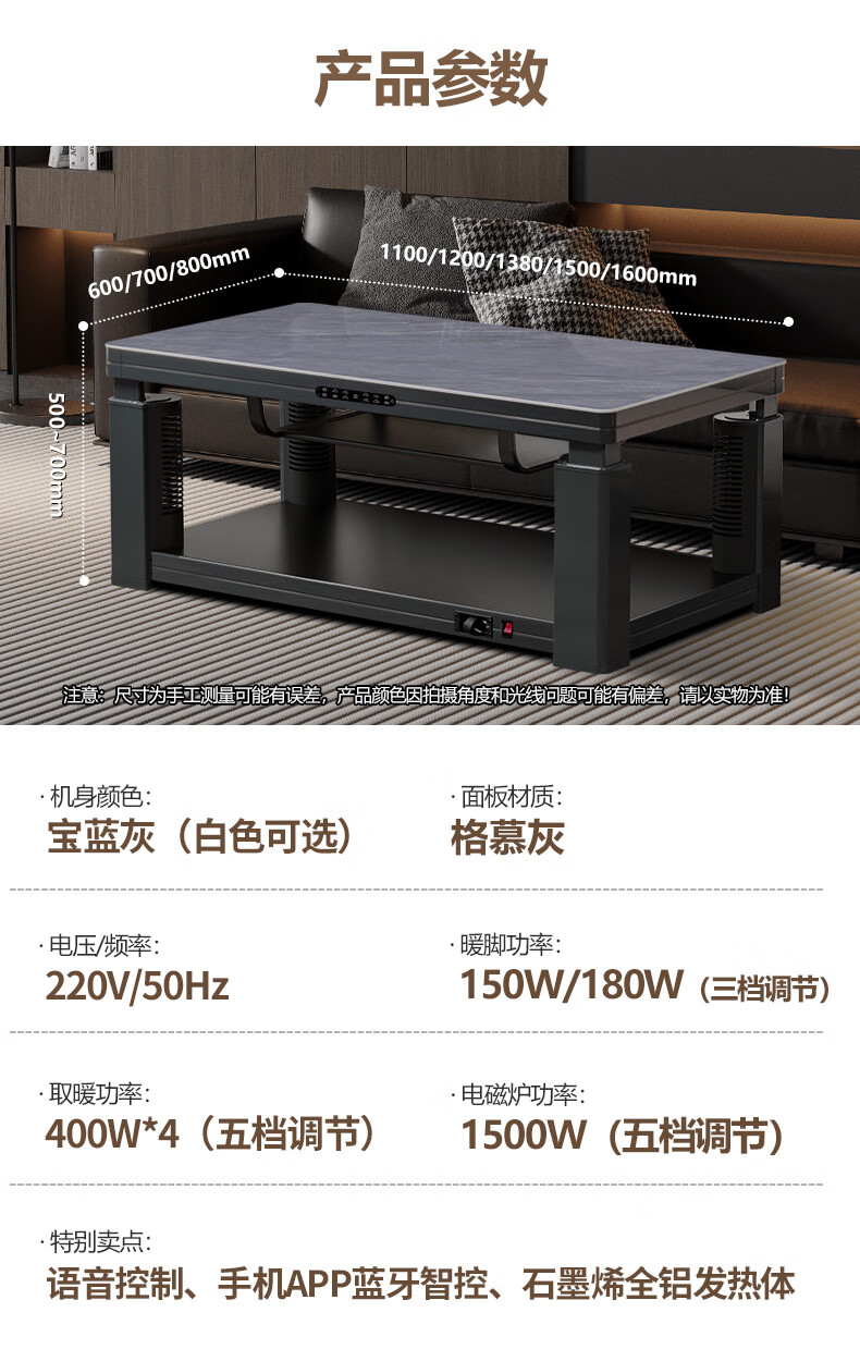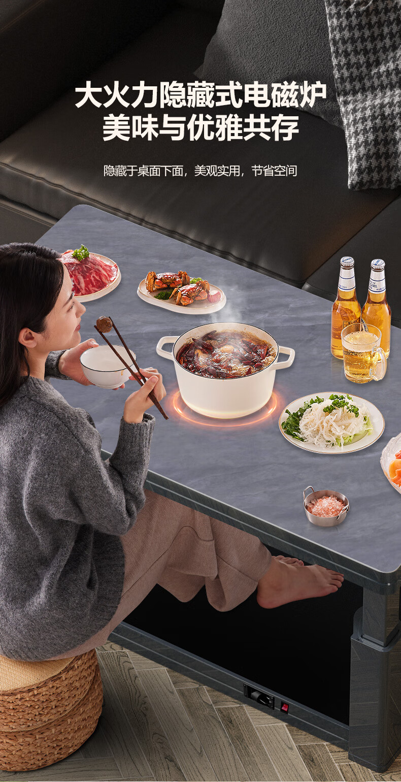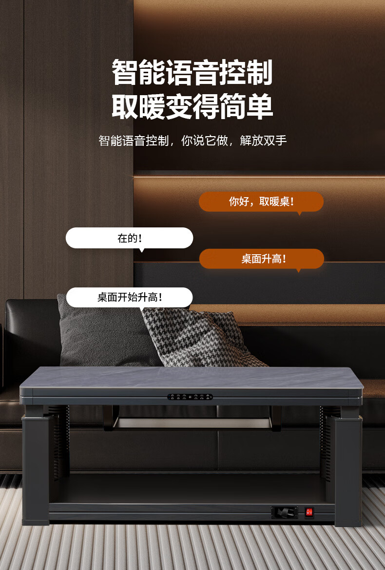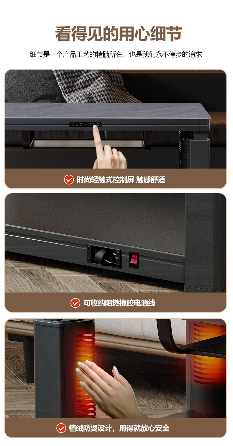 钻石牌电暖桌烤火桌长方形电热电炉取暖桌升降茶几电暖炉电烤桌客厅烤火炉桌子一体家用冬季多功能取暖器 ZS-RZ90黑灰-格慕灰-WL1270Y