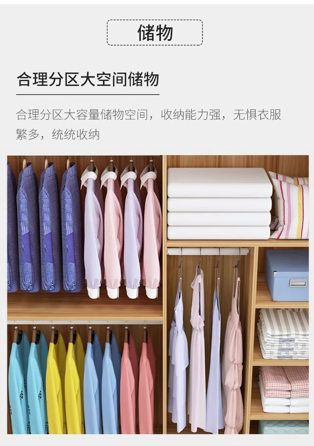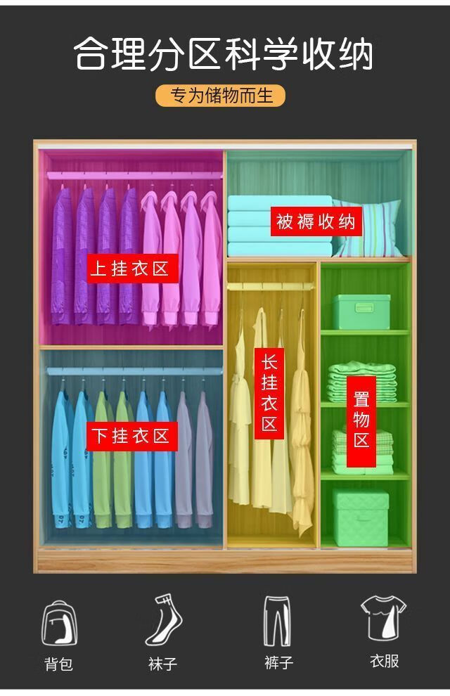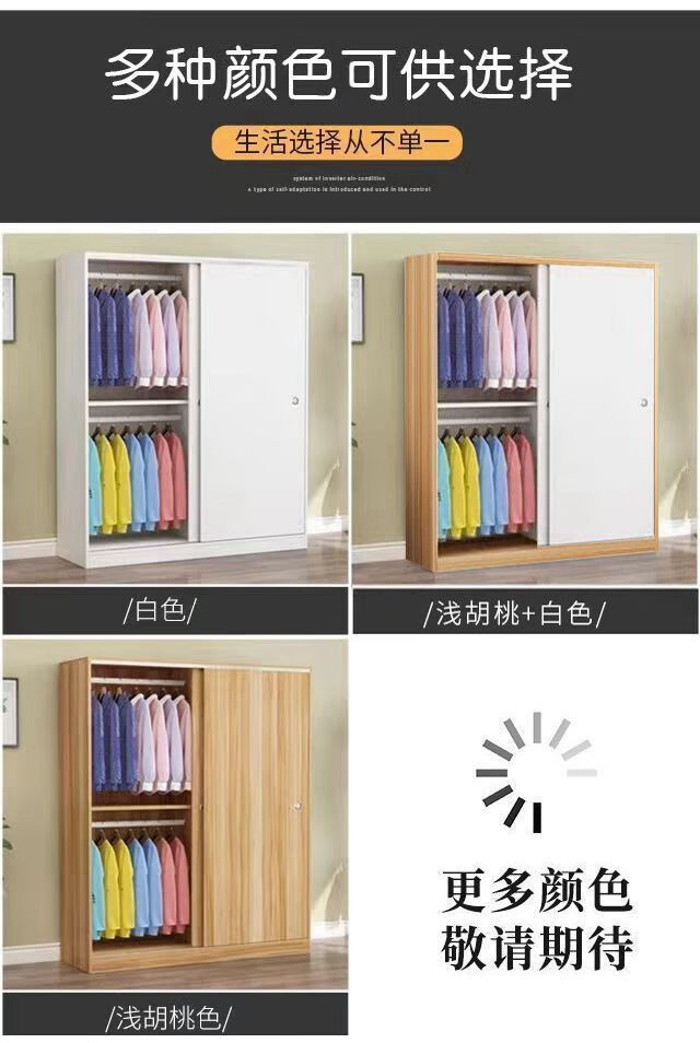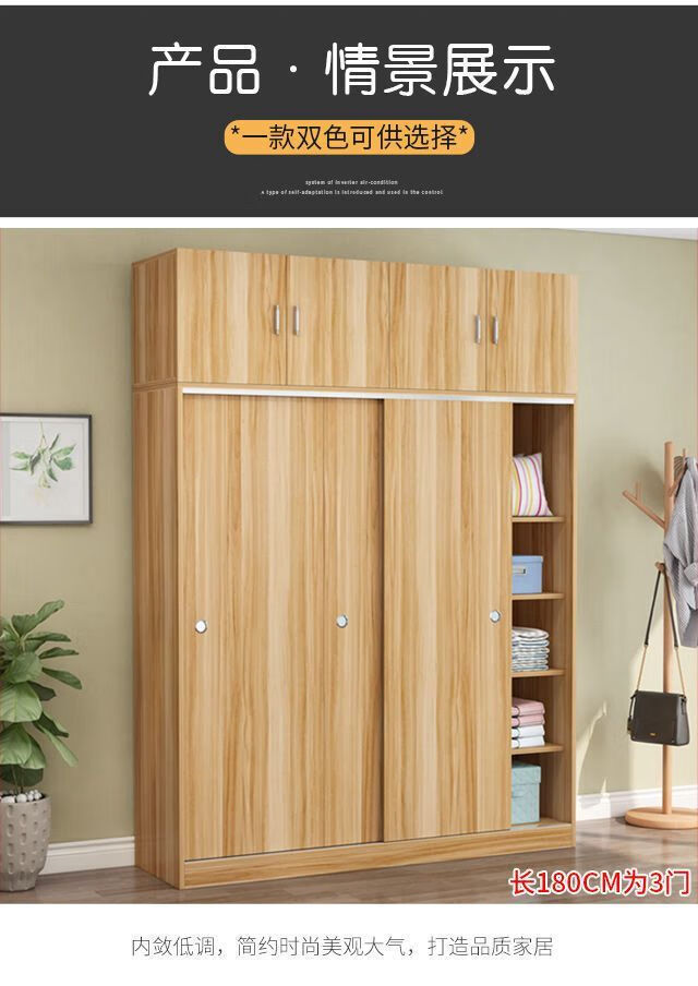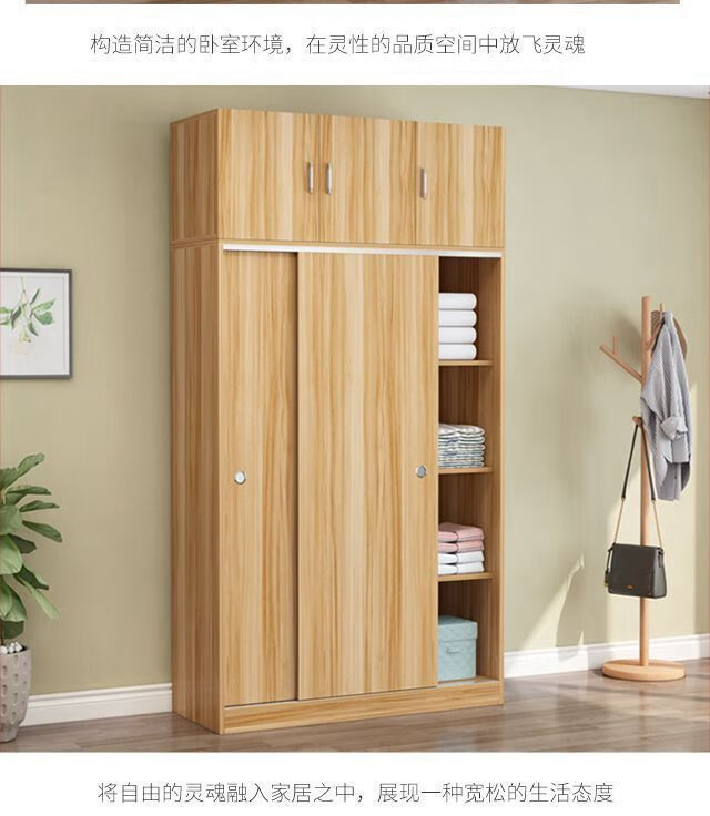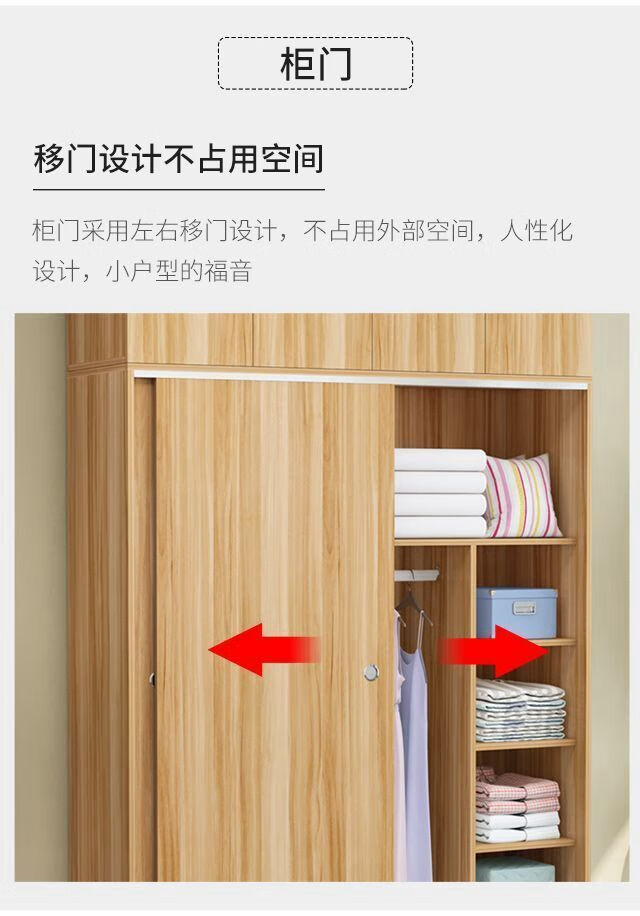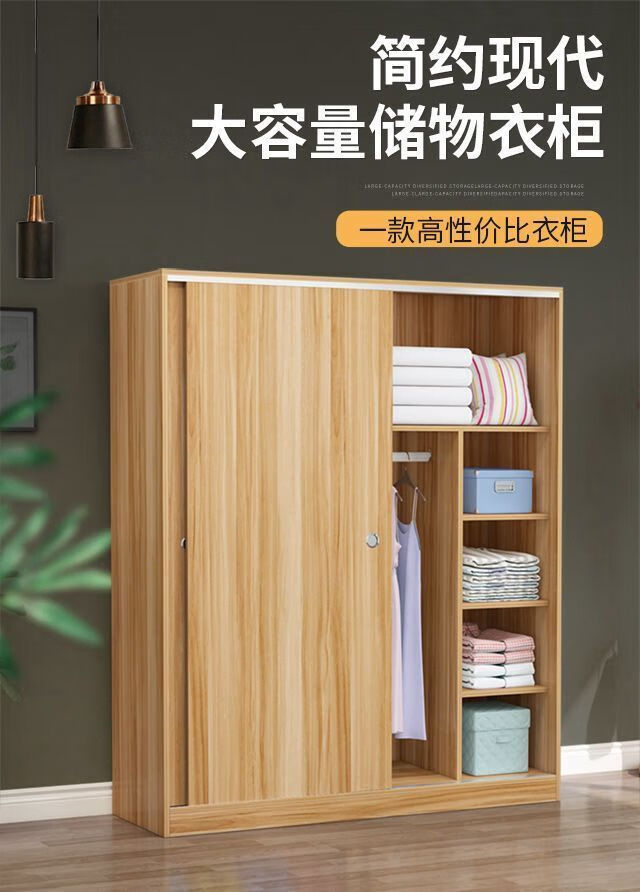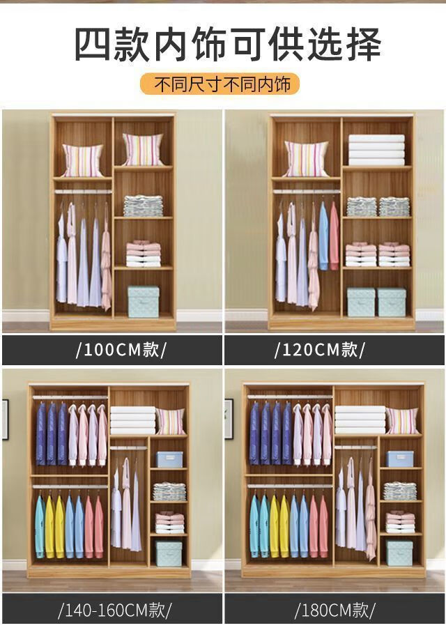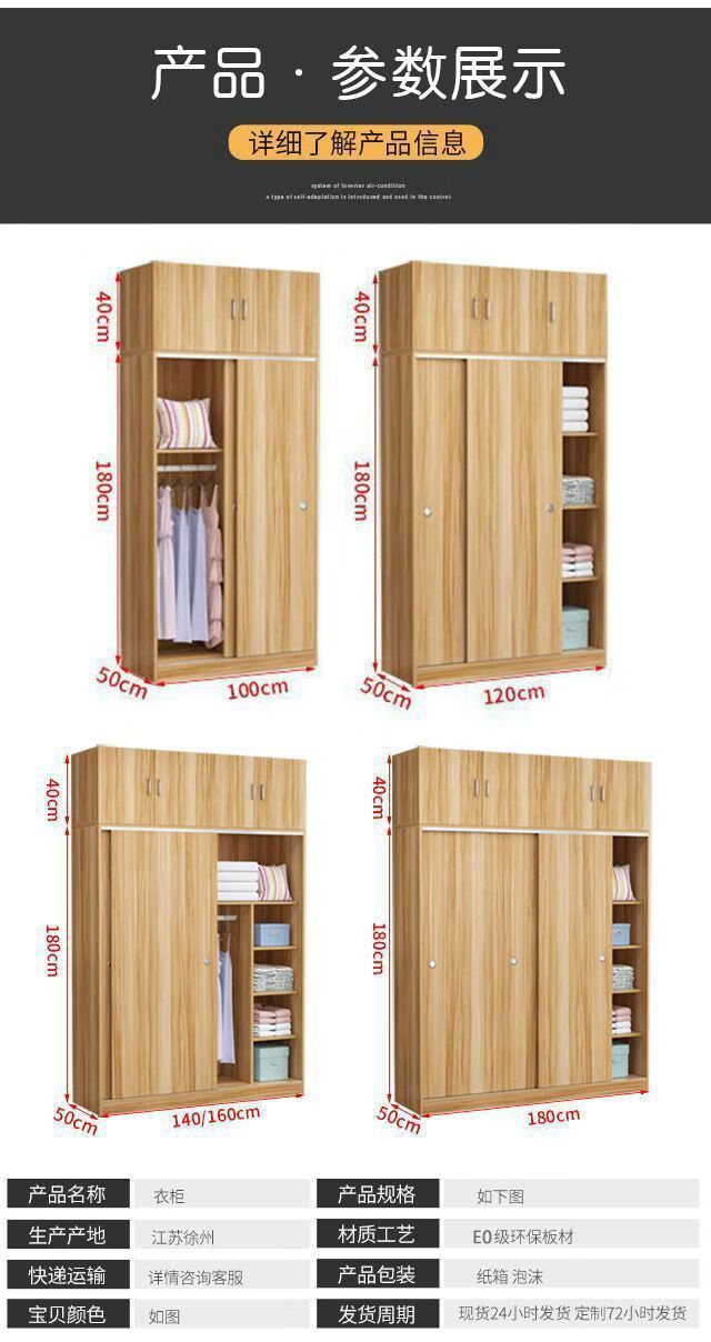 弘星隆推拉门衣柜家用卧室小户型儿童衣橱出租房用简易实木出租屋多层 【浅胡桃款】 【实木】100*180*50主柜