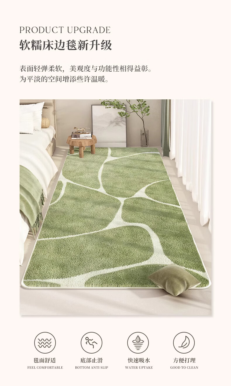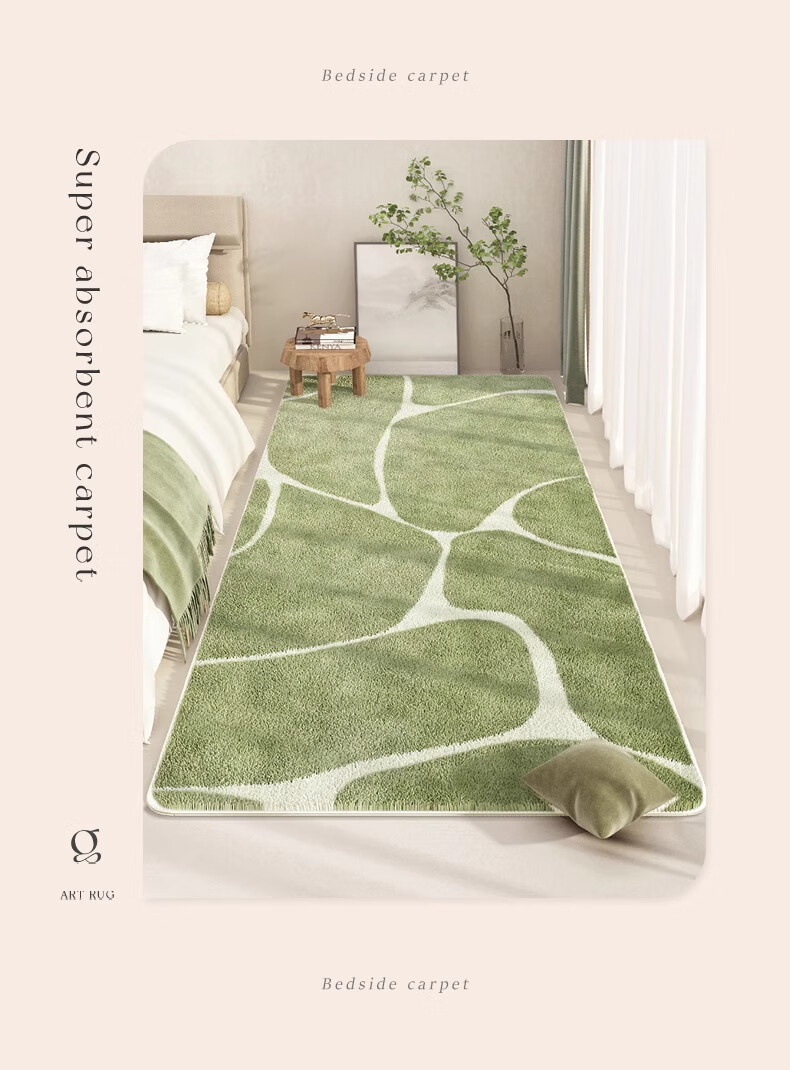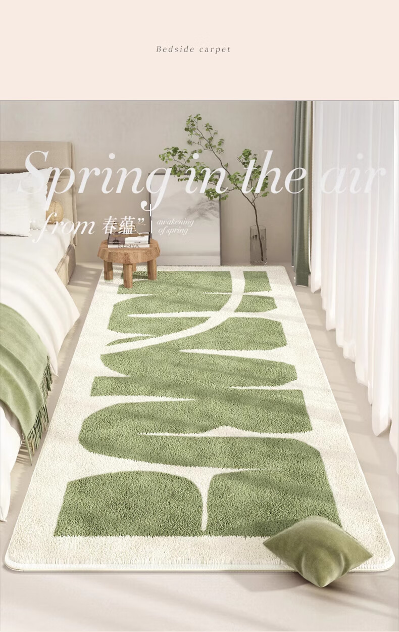 KAYE加厚床边毯春绿卧室仿羊绒地毯房间地垫轻奢现代简约沙发茶几毯子 FYR-春山秀丽 50X140cm