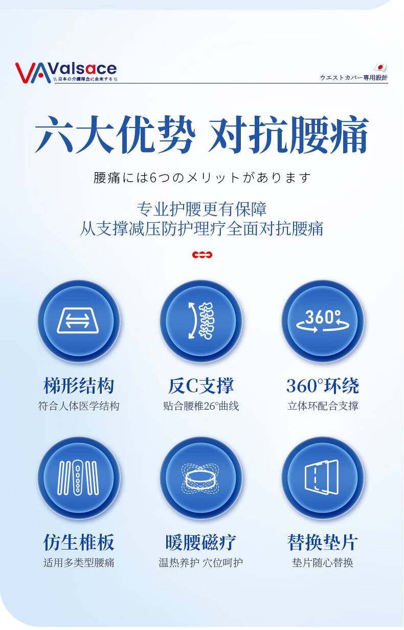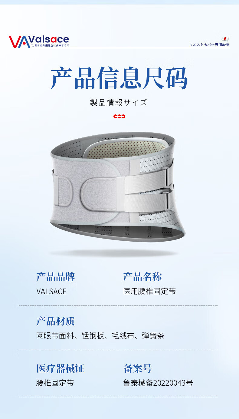 Valsace医用护腰带腰间盘突出腰肌劳损腰椎神器膨出腰托腰围钢板支撑XL码