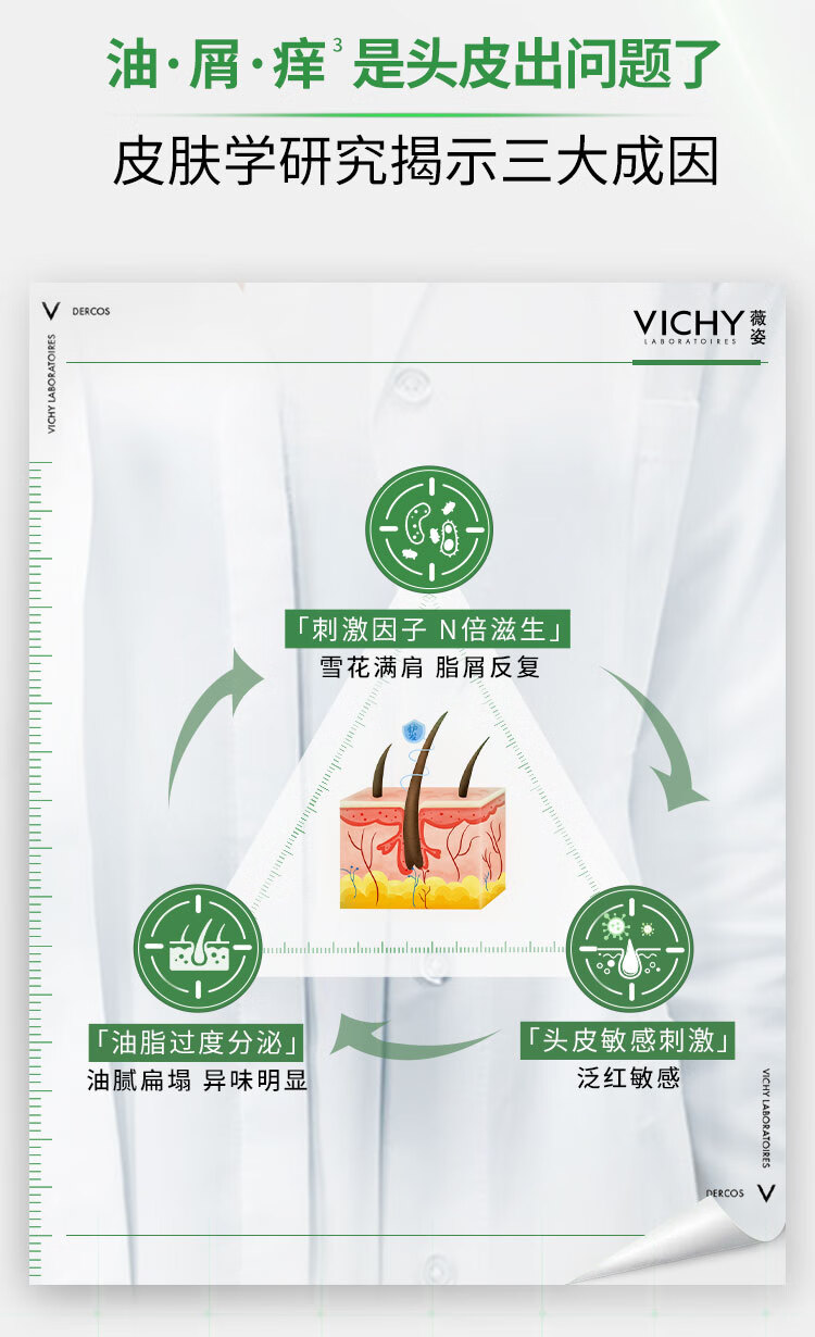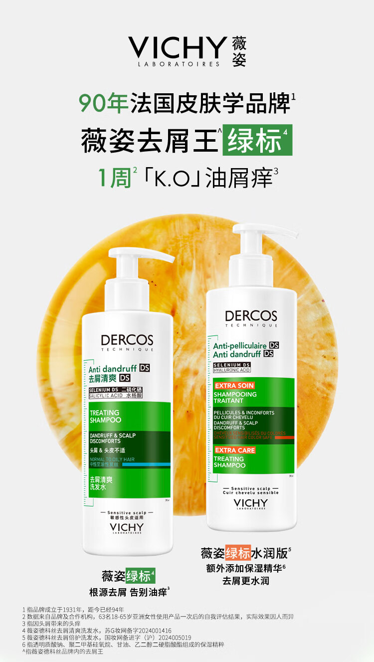 薇姿(VICHY)洗发水1%二硫化硒绿标去屑洗发水控油柔顺洗发露390ml热门商品