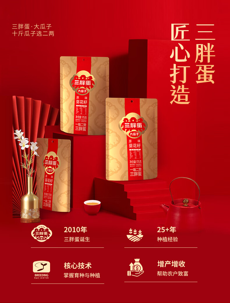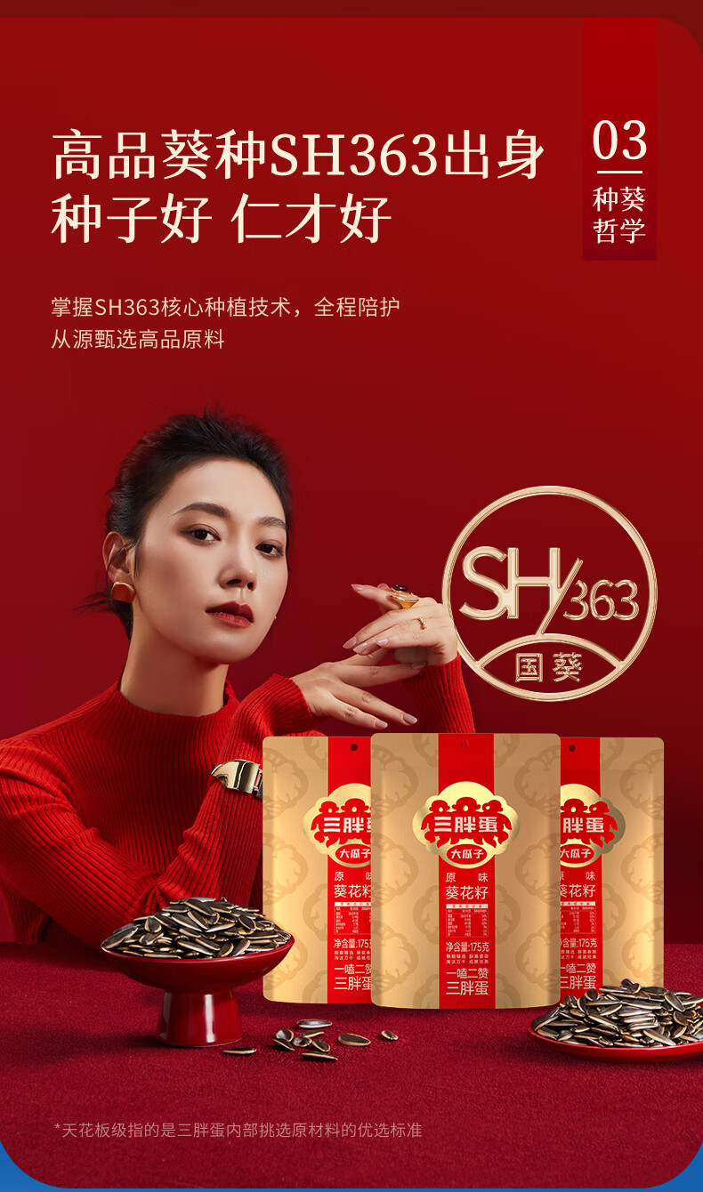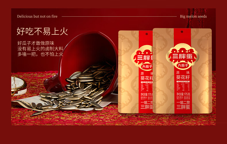 三胖蛋原味瓜子175g 坚果炒货大颗粒葵花籽 解馋办公室休闲小零食
