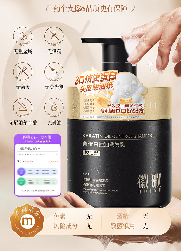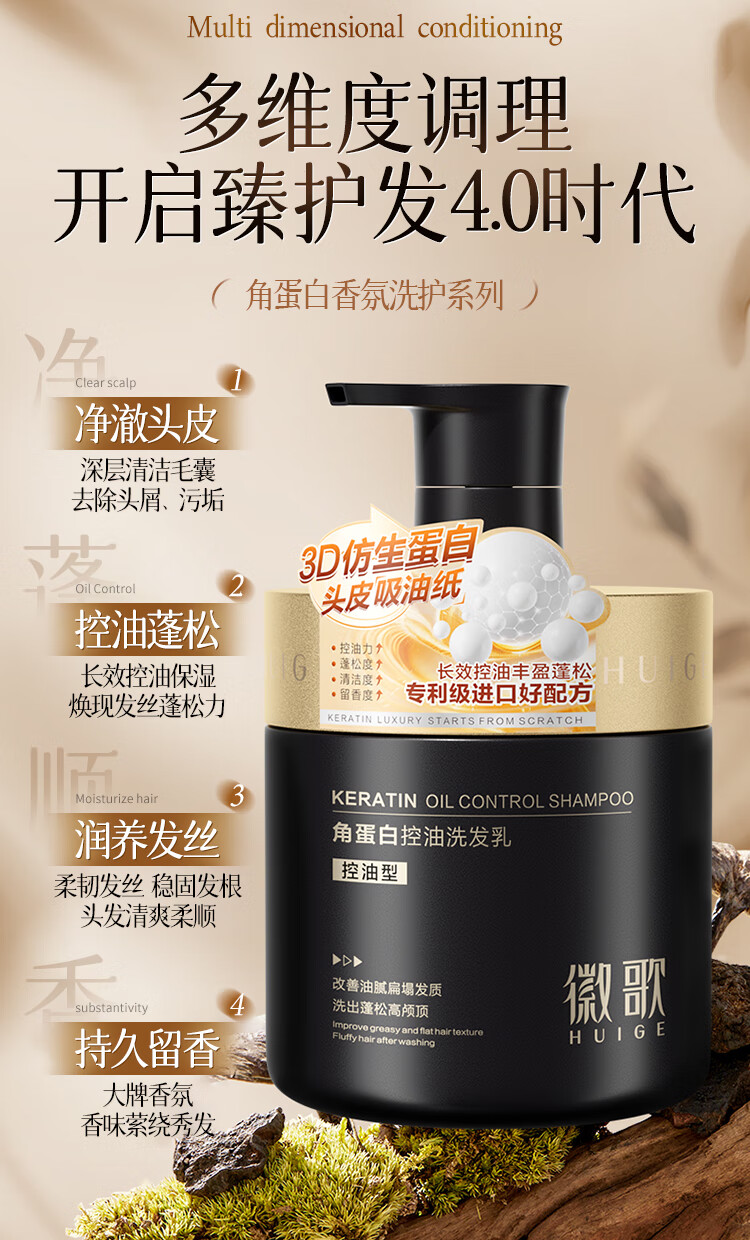 徽歌进口角蛋白洗发水1L控油蓬松改善干枯毛躁去屑止痒洗头膏护发套装