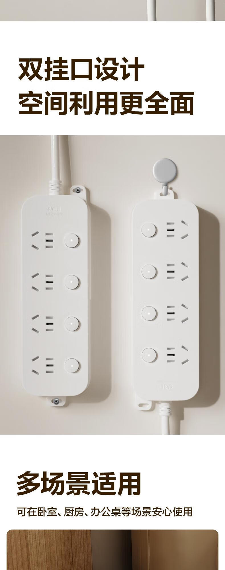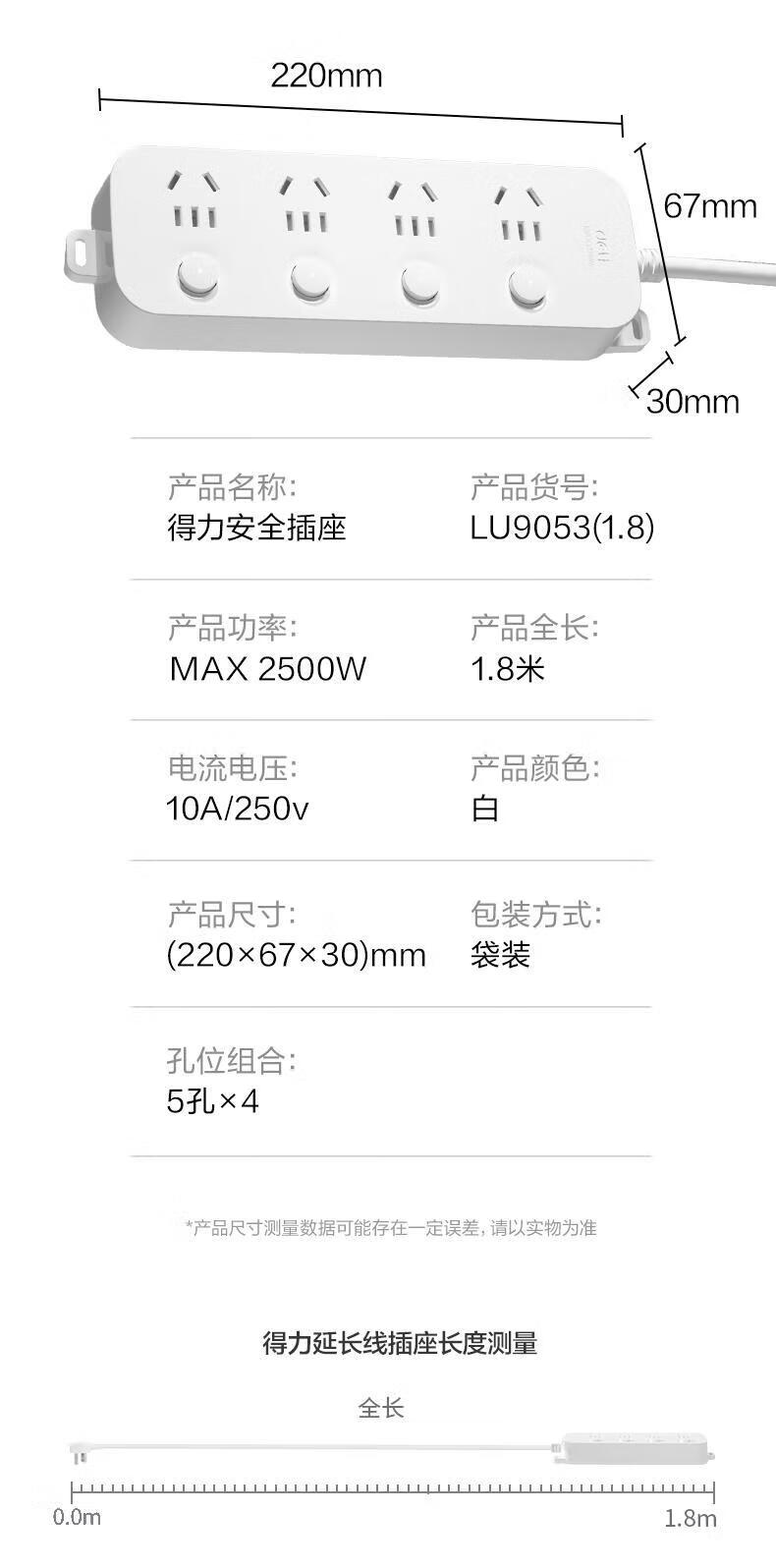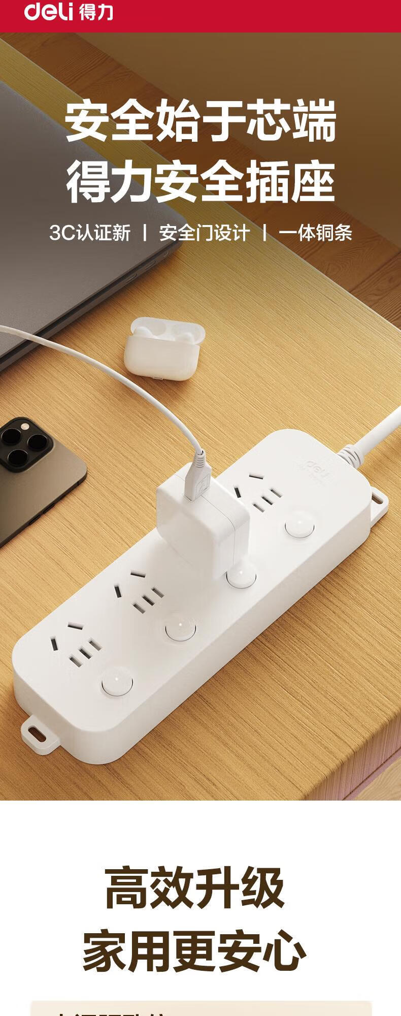 得力(deli)【国标3C认证/儿童保护门/阻燃外壳】分控开关插排 电源 插座 插线板 排插 插板 拖线板 接线板 【3位5孔/分控1米】LU5055插座