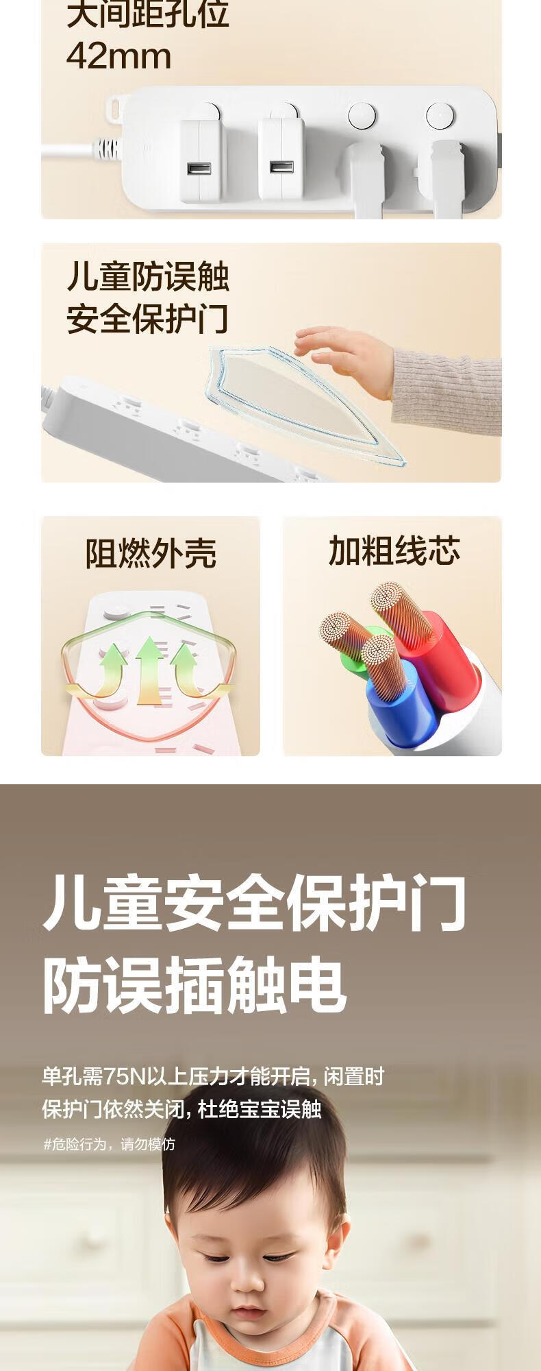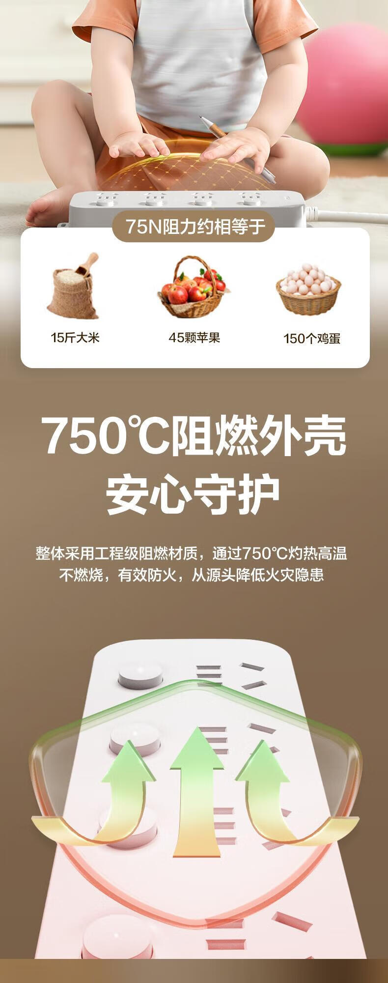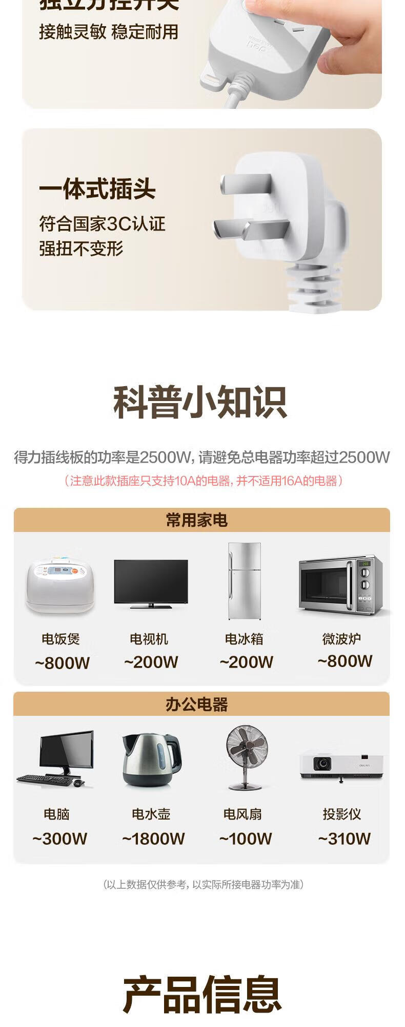 得力(deli)【国标3C认证/儿童保护门/阻燃外壳】分控开关插排 电源 插座 插线板 排插 插板 拖线板 接线板 【3位5孔/分控1米】LU5055插座