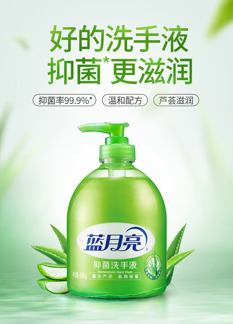 蓝月亮洗手液 抑菌补充装 家用 泡沫丰富 (500g瓶+500g瓶补)*2