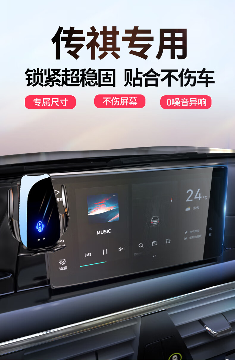 贝涵23款广汽传祺GS3影速第二代GS8 影酷专用车载手机支架汽车改装24 电动锁紧款【智能锁紧+360旋转】 22-25款GS8(14.6英寸屏专用)