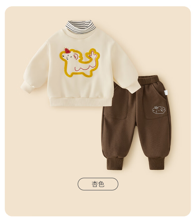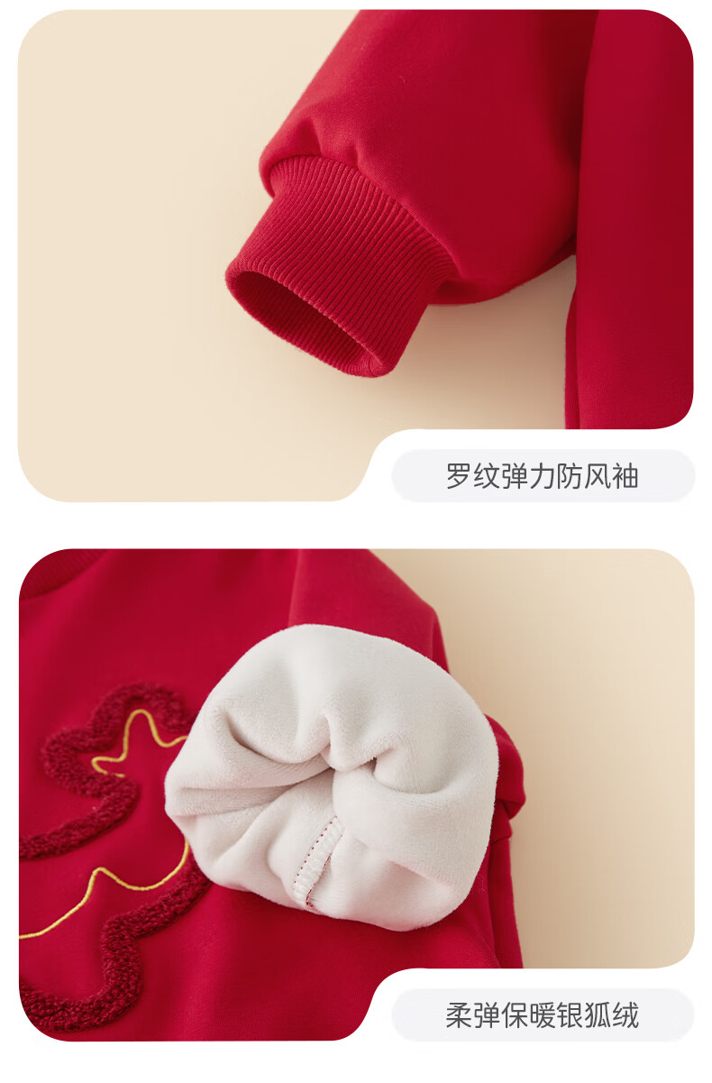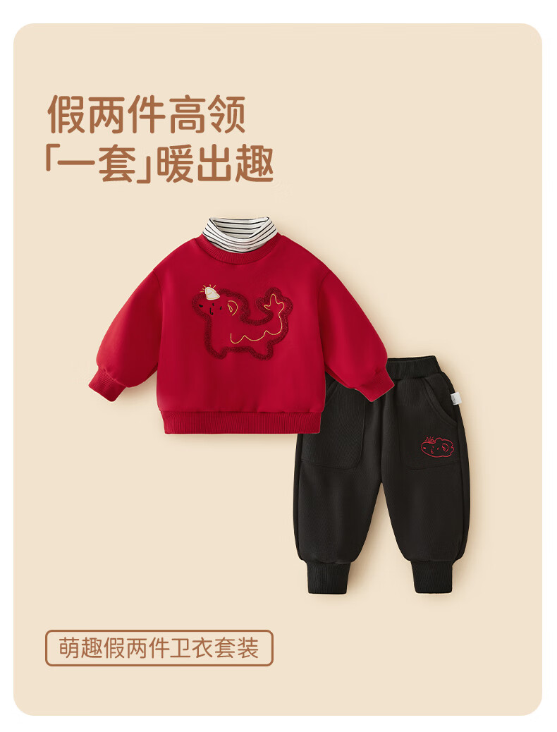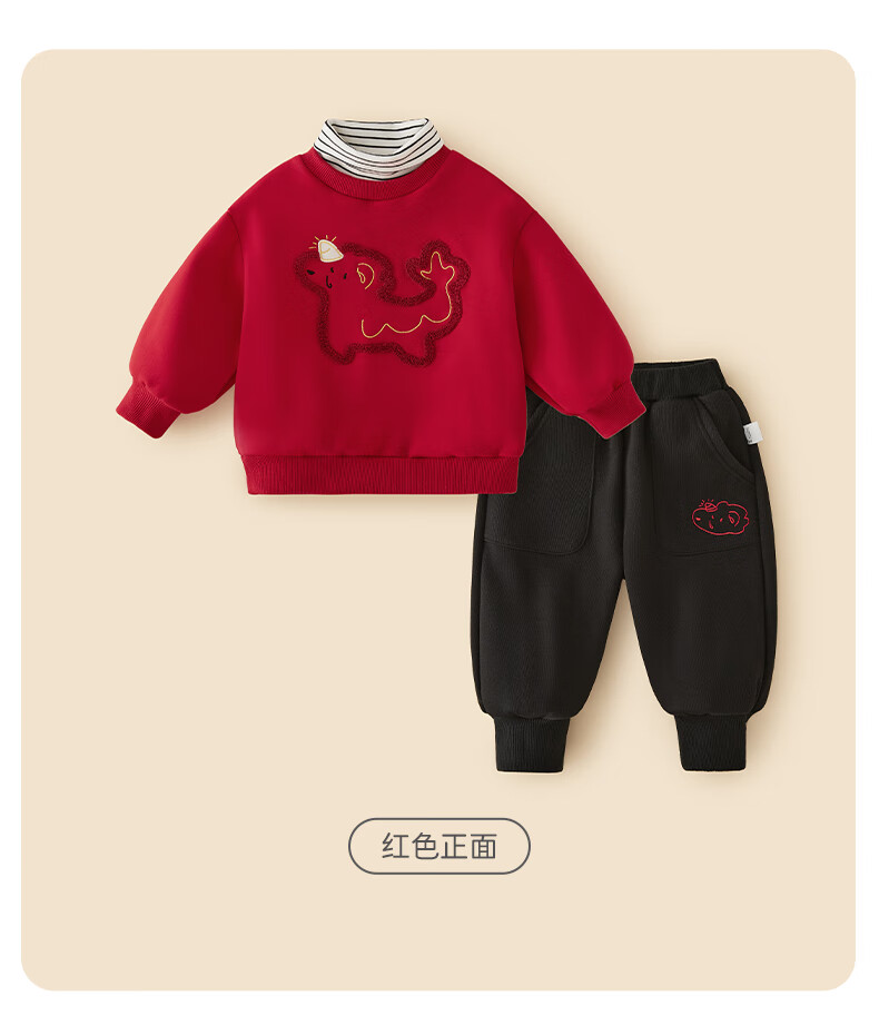 JELLYBABY男童加绒卫衣套装宝宝红色新年装小童女童秋冬两件套国潮儿童衣服 红色 110 CM