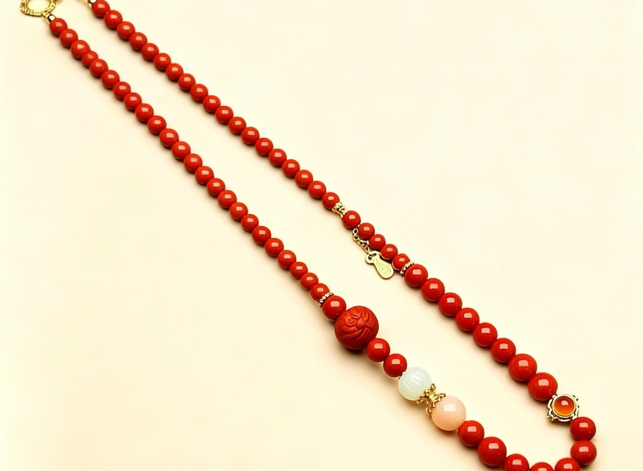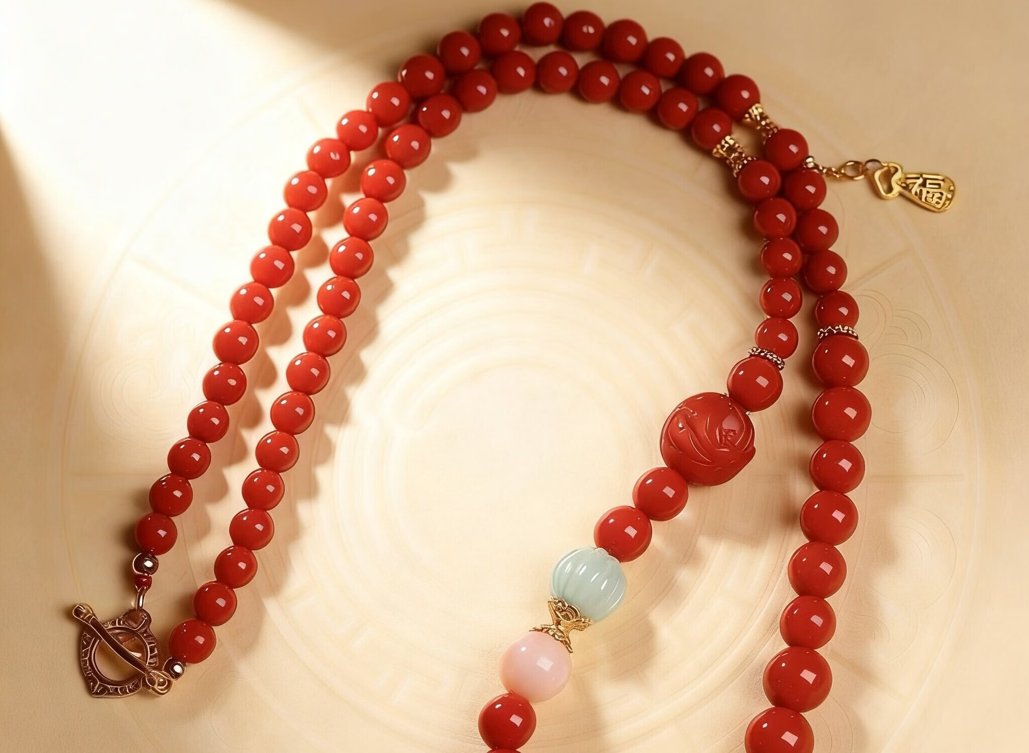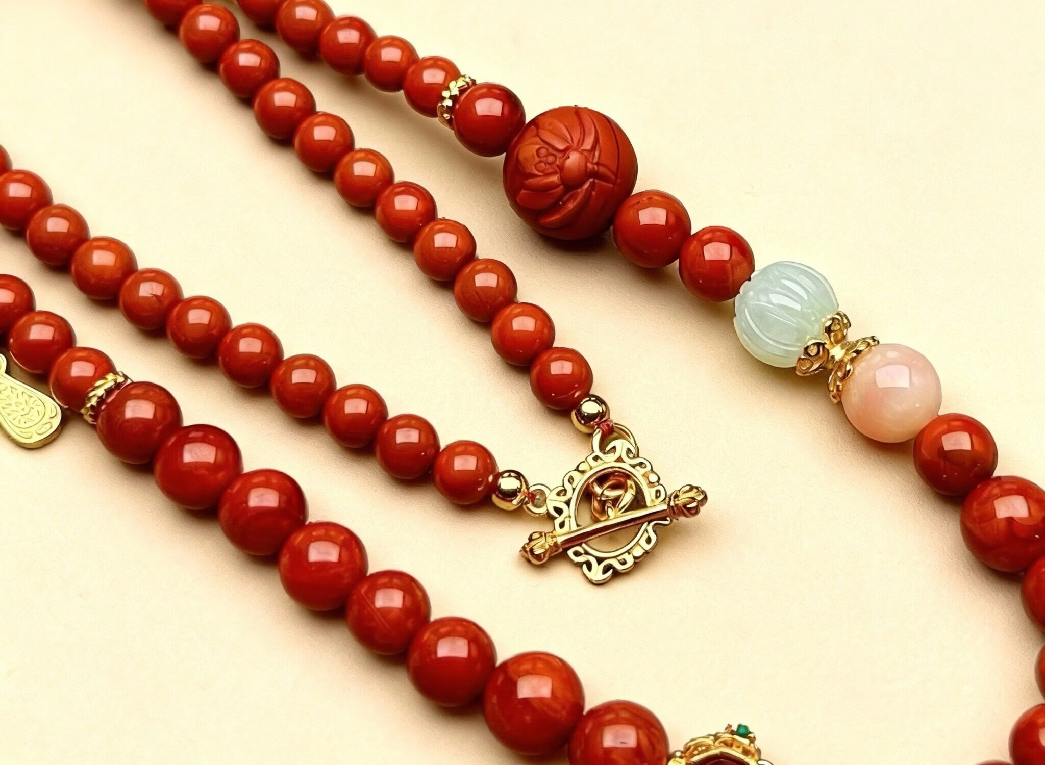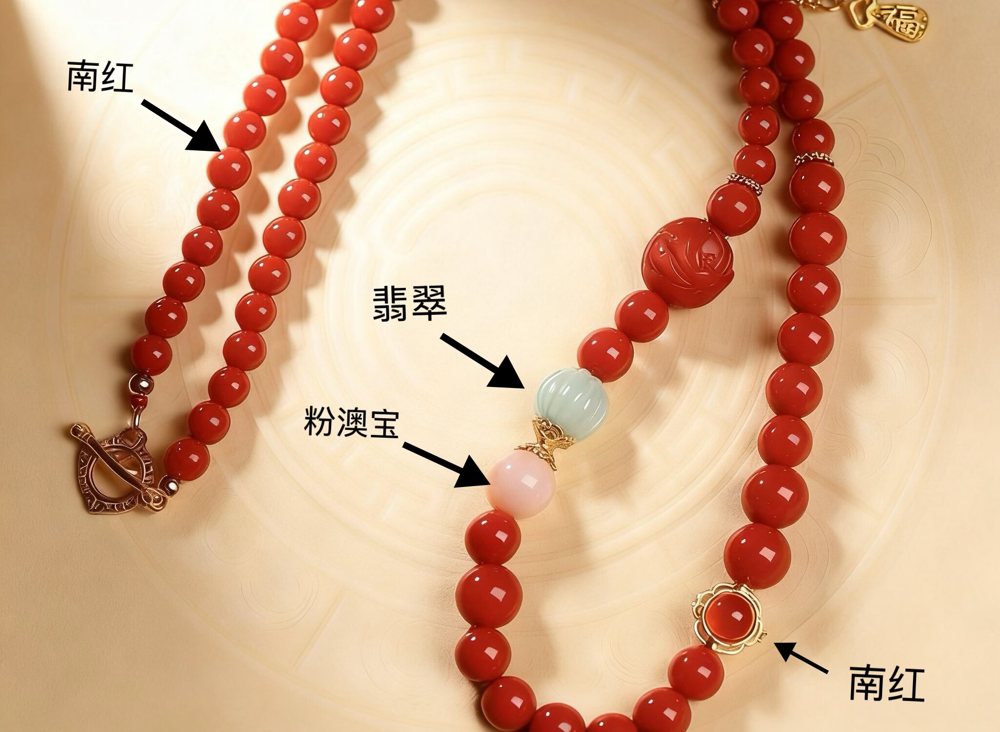 新年礼物送妈妈手串本命年礼物满肉南红串珠女翡翠银项链