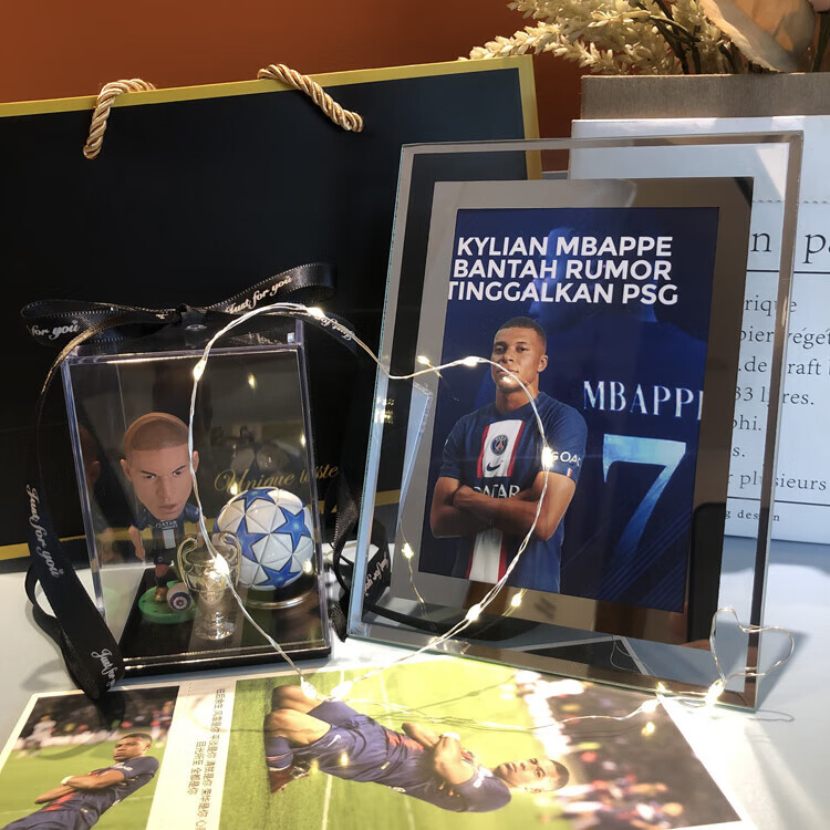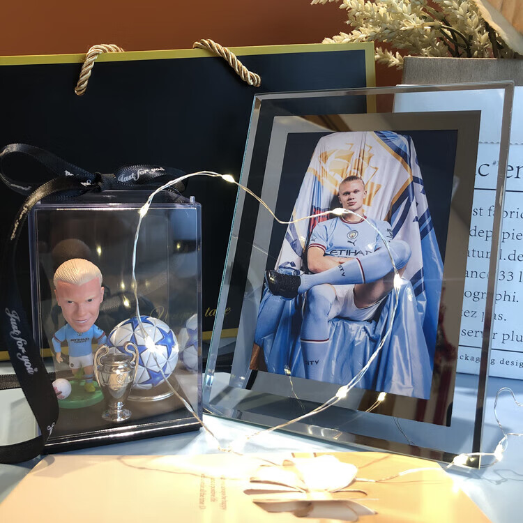 梦京鱼足球礼物送男生礼盒哈兰德梅西C罗姆巴佩玩偶摆件送男生日纪念品 因扎吉+欧冠杯+足球+展示盒