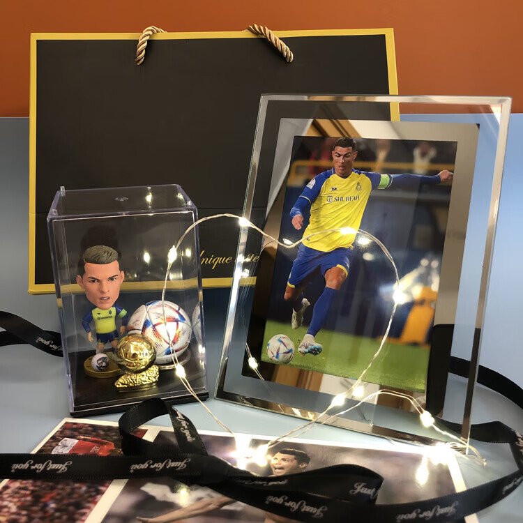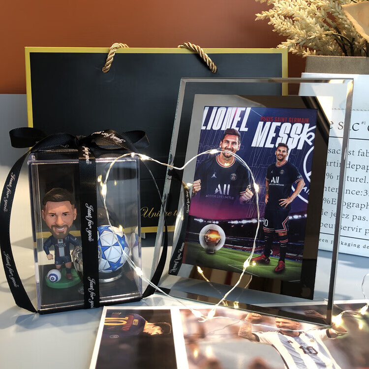 梦京鱼足球礼物送男生礼盒哈兰德梅西C罗姆巴佩玩偶摆件励志纪念品 因扎吉+欧冠杯+足球+展示盒
