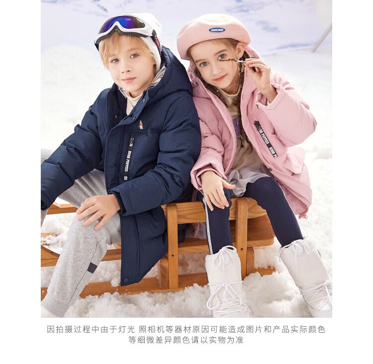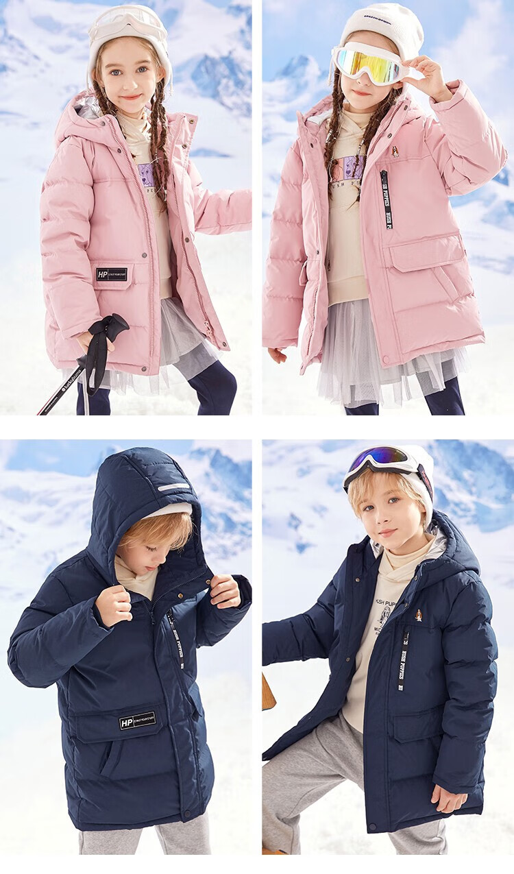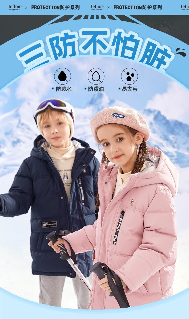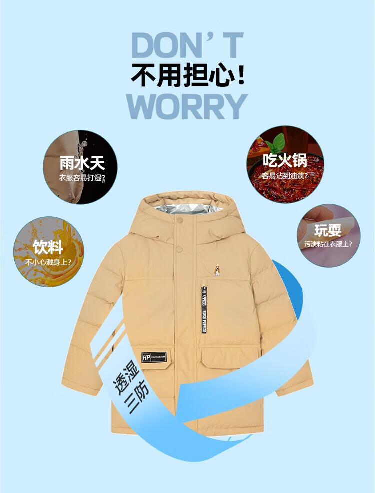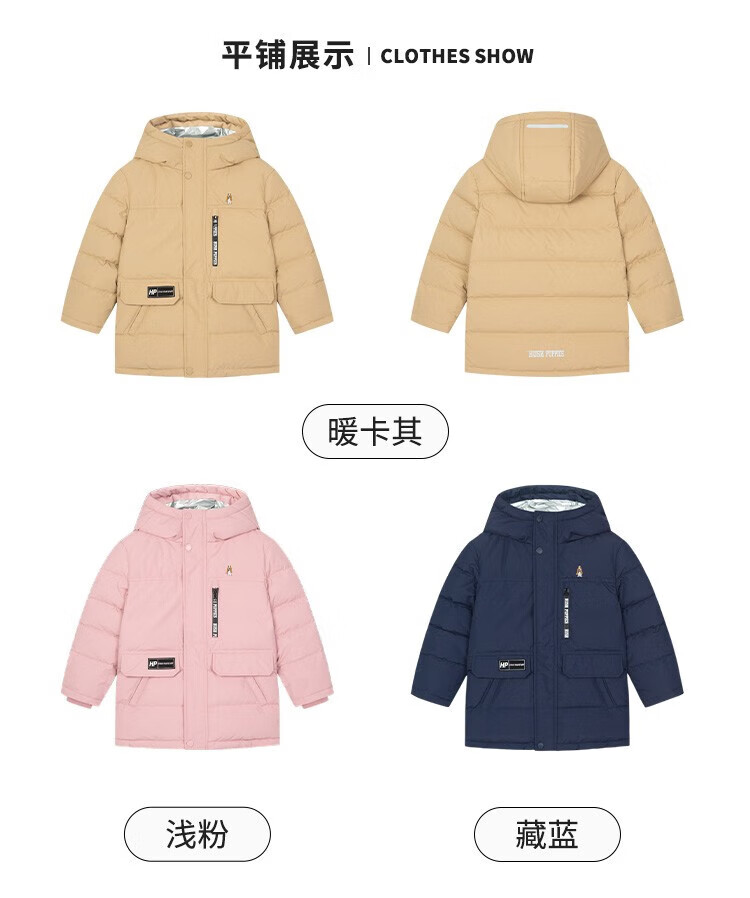 暇步士(Hush Puppies)童装儿童羽绒服男童女童冬季新款男女大童保暖连帽三防羽绒服 暖卡其 130