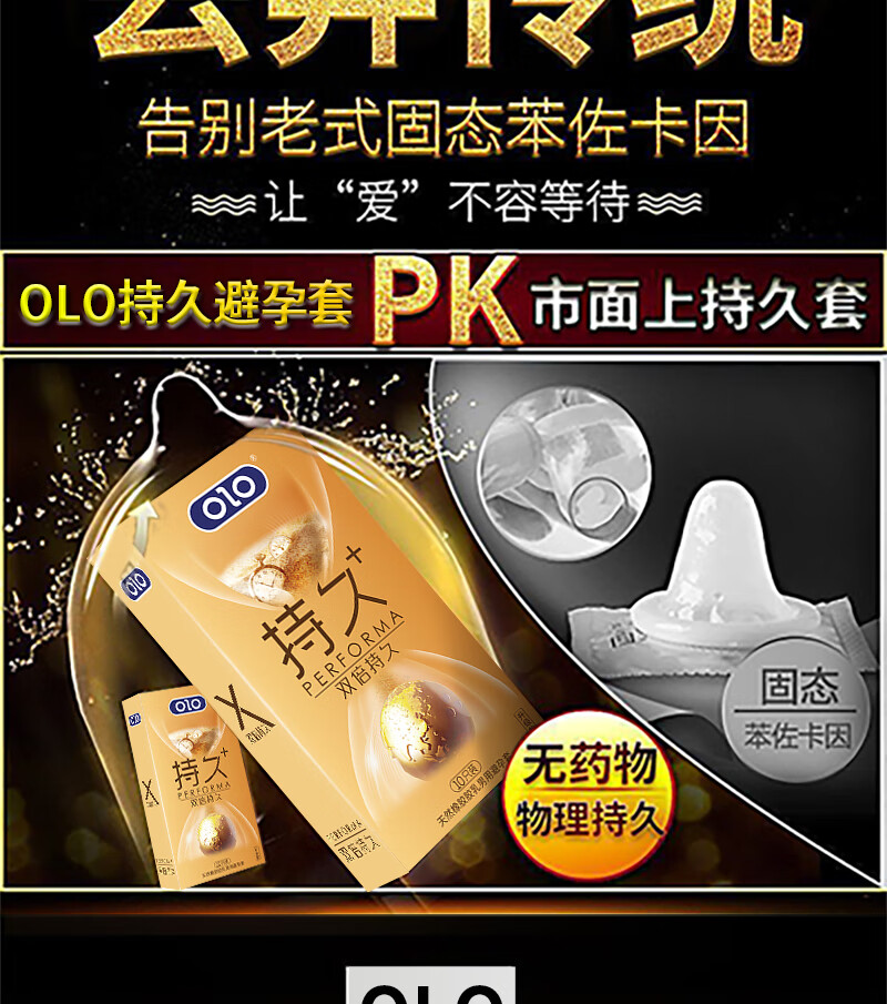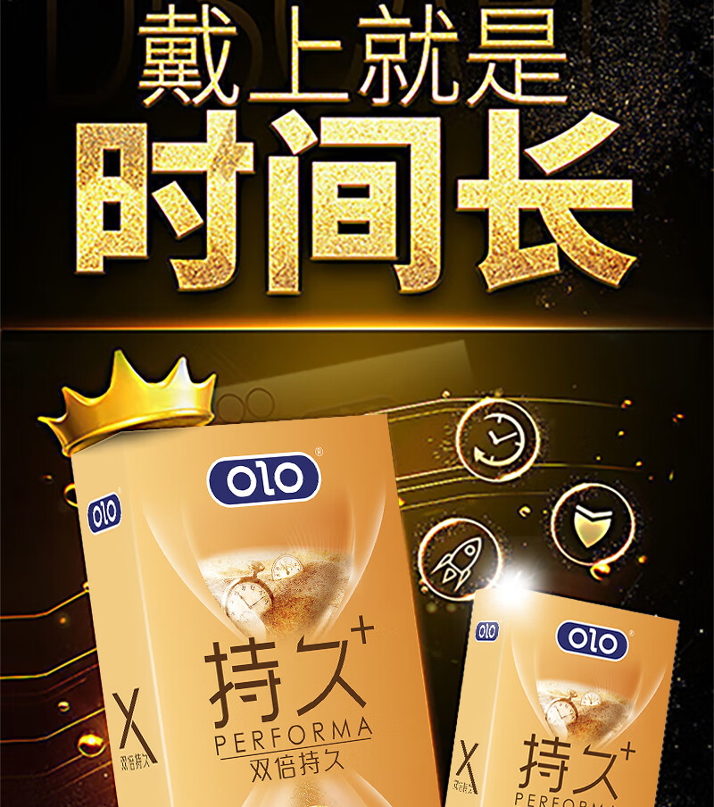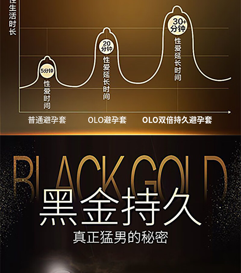 OLO避孕套延时加厚防敏感螺纹颗粒男用超薄持久乳胶安全套物理情趣tt 【3只】双倍持久金色升级款体验装*1盒