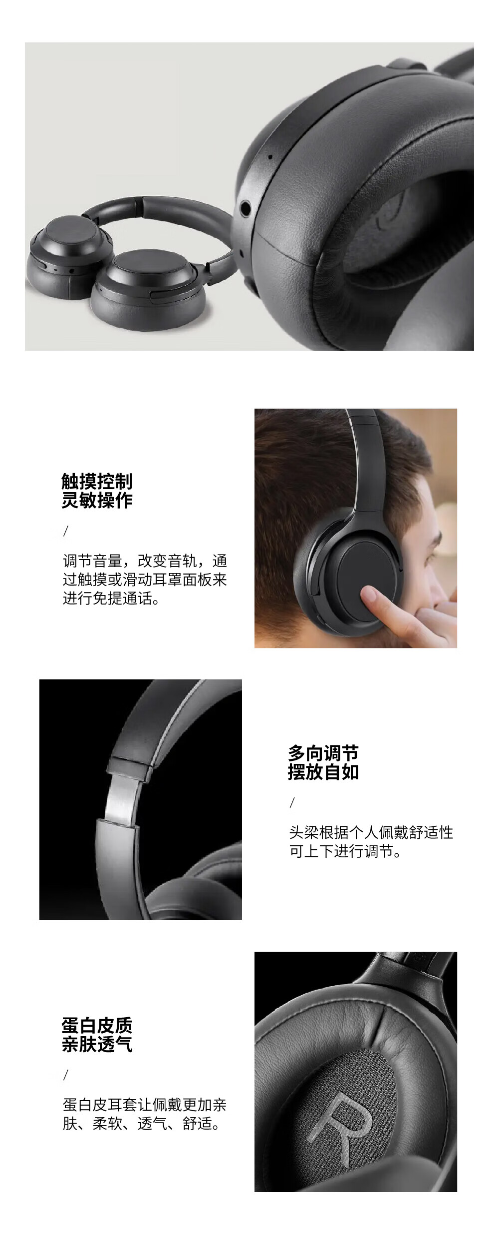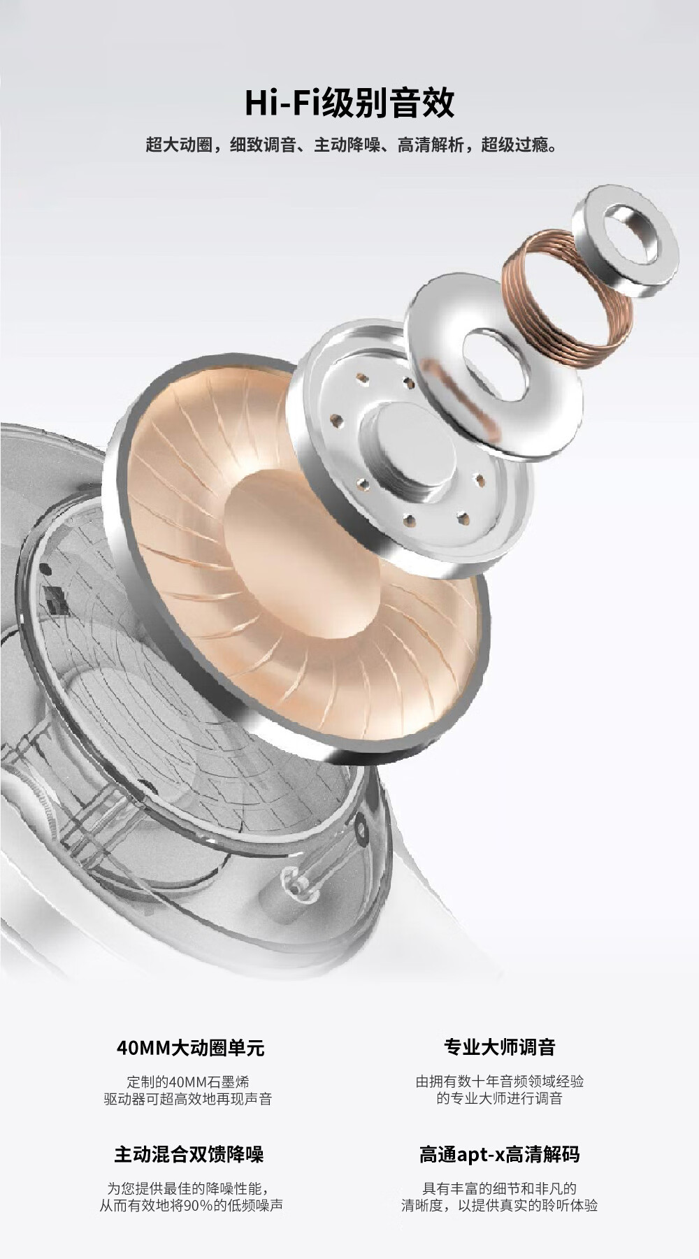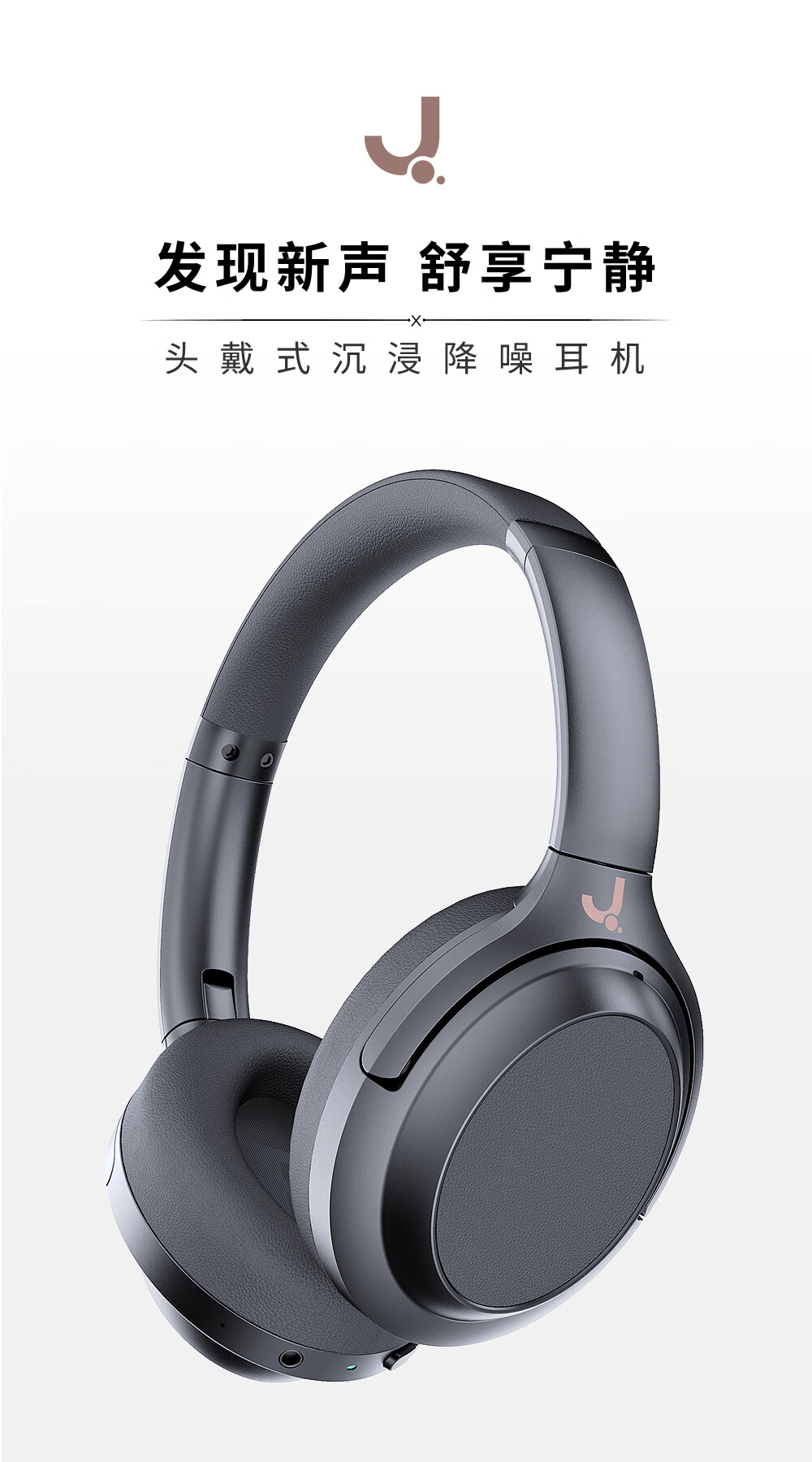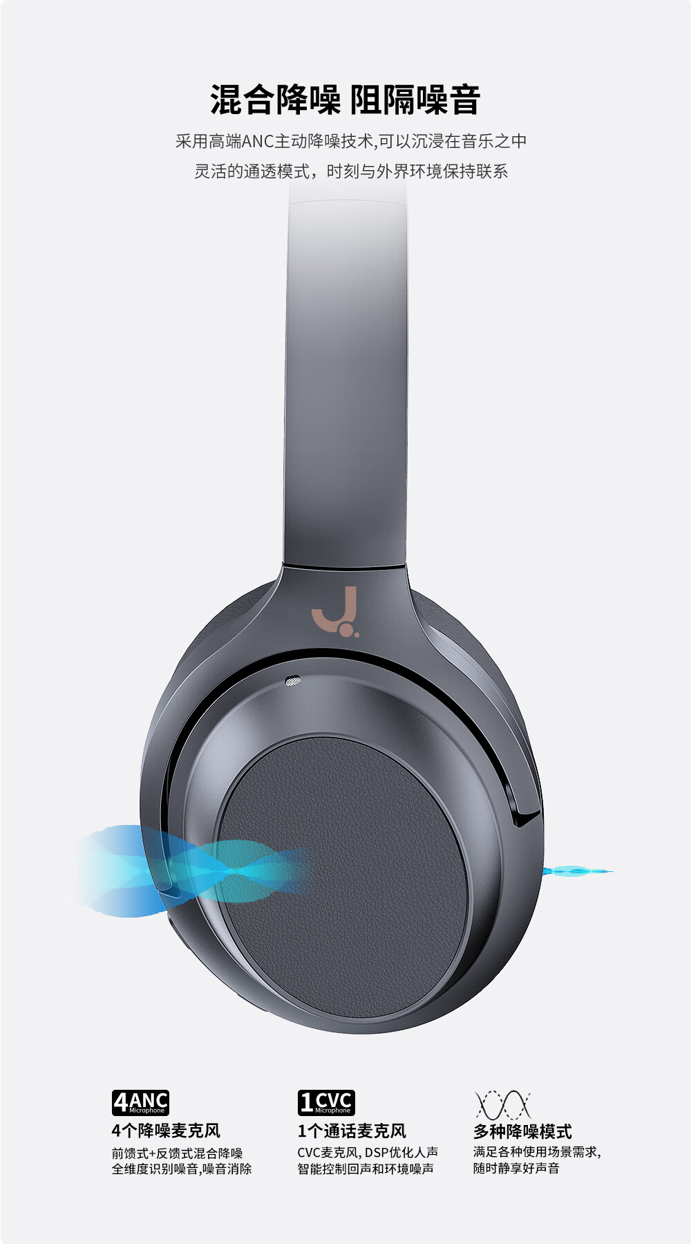 J(匠子)发烧级高品质蓝牙头戴耳机40mm大动圈单元ANC主动降噪通透模式多设备连接高通芯片 BN928双馈主动降噪 黑色