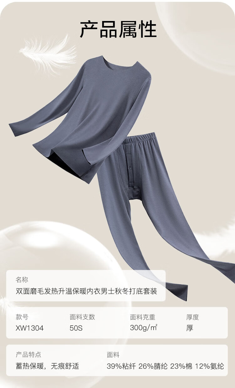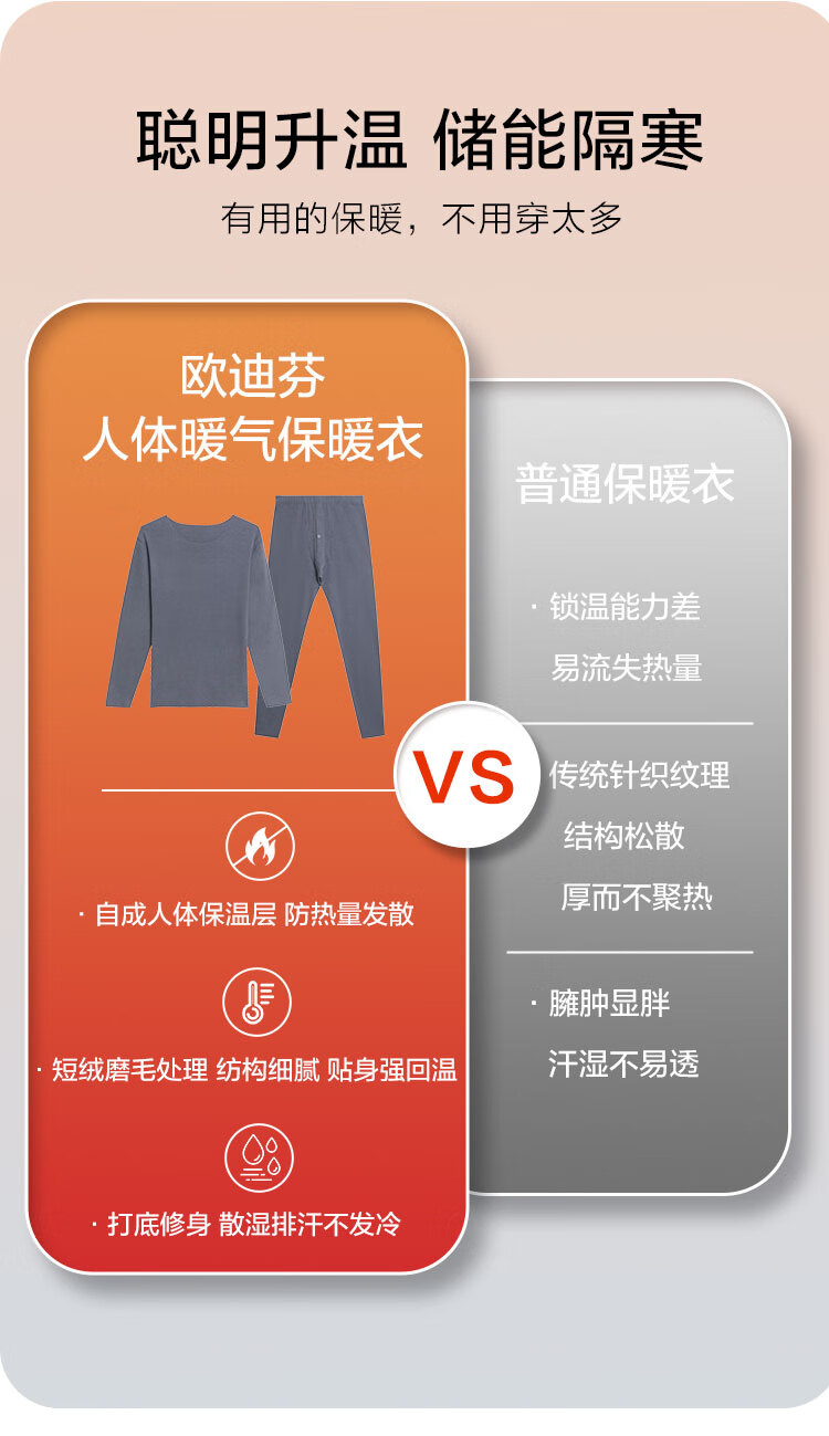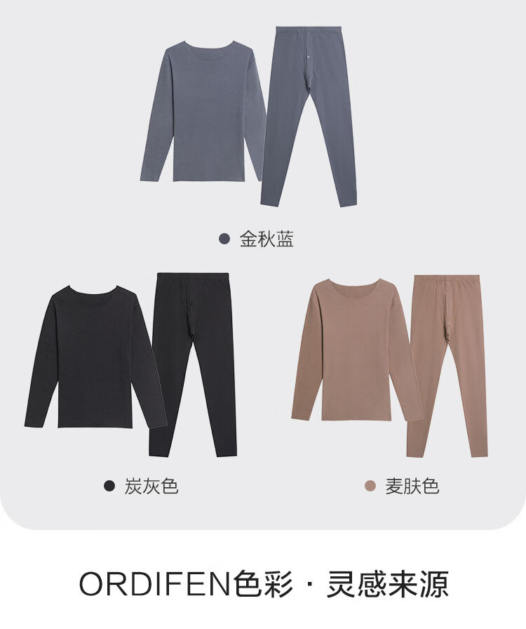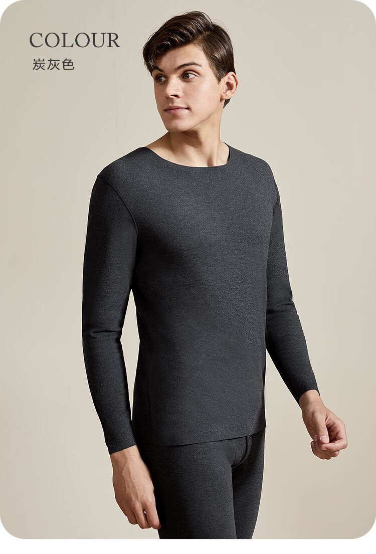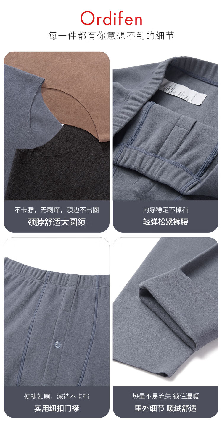 欧迪芬(Ordifen)秋冬打底衣男双面磨毛蓄热高弹防静电秋衣秋裤红色保暖套装 炭灰色 2XL