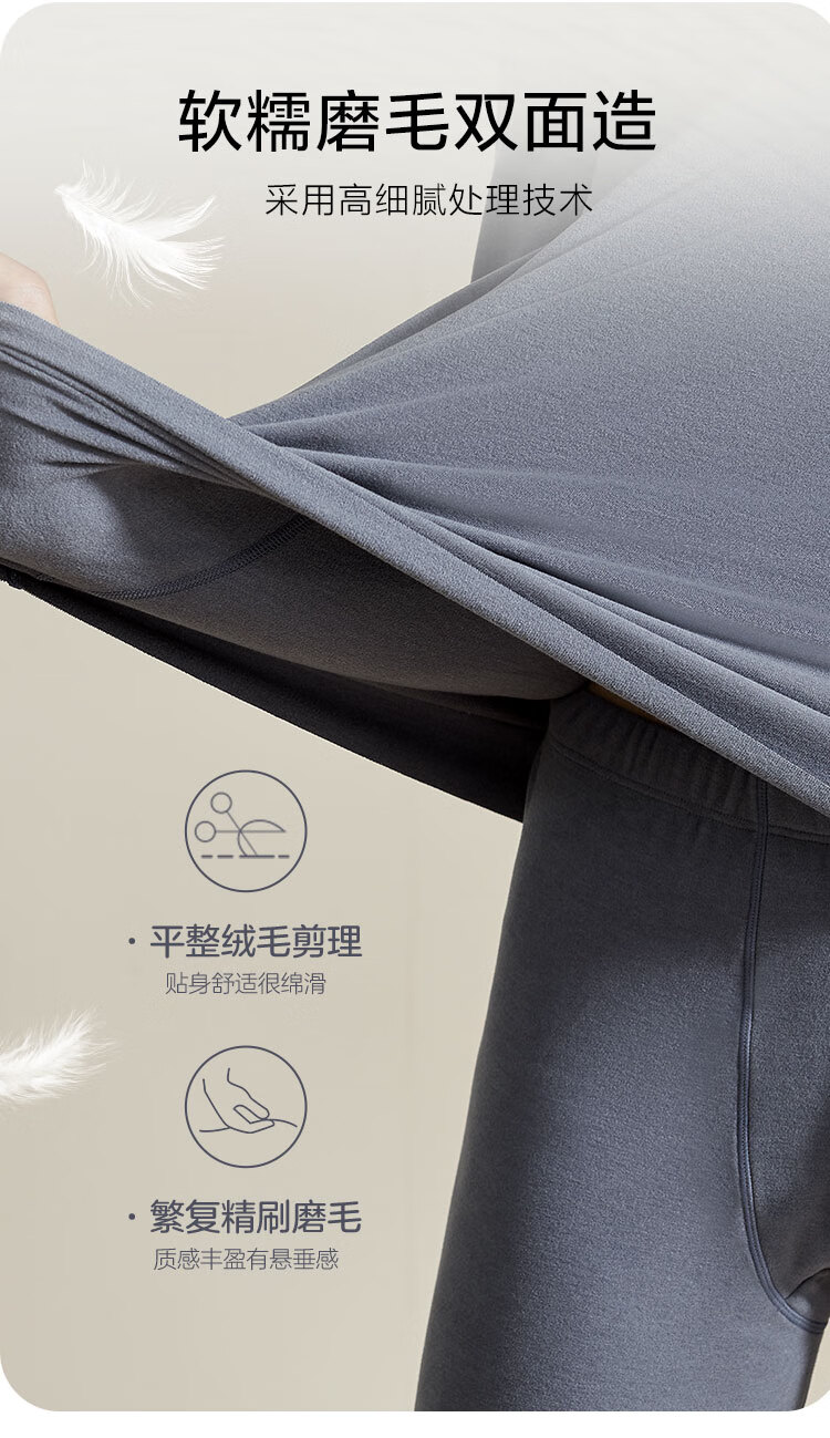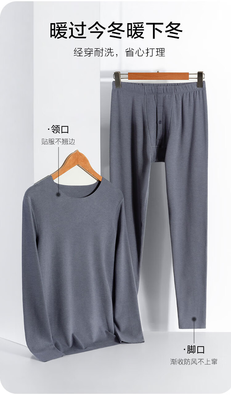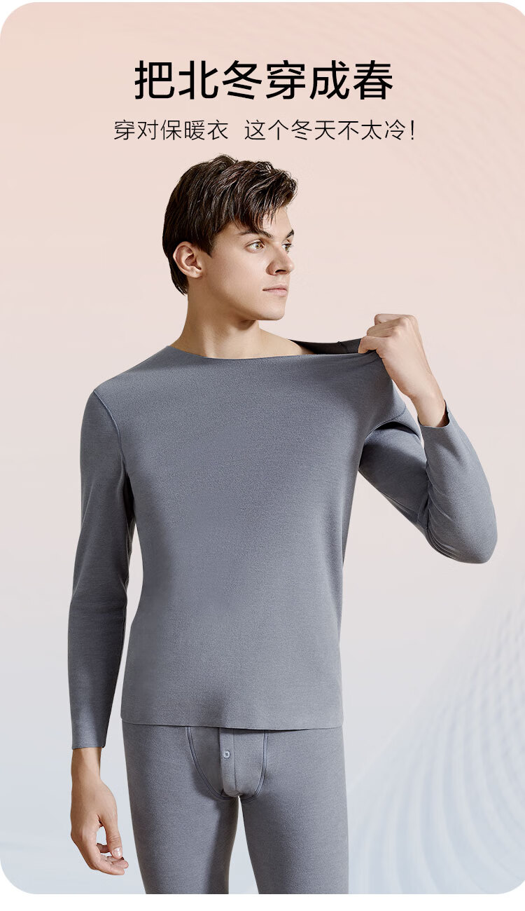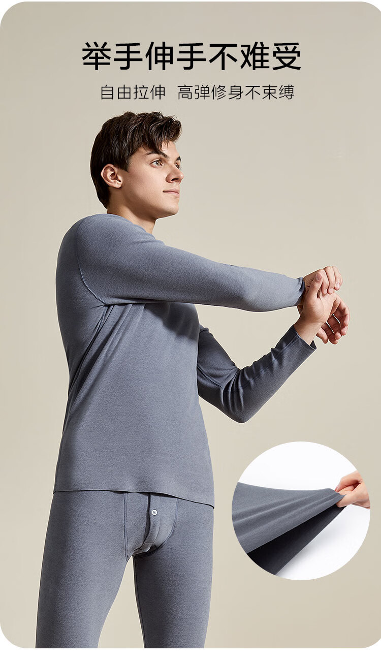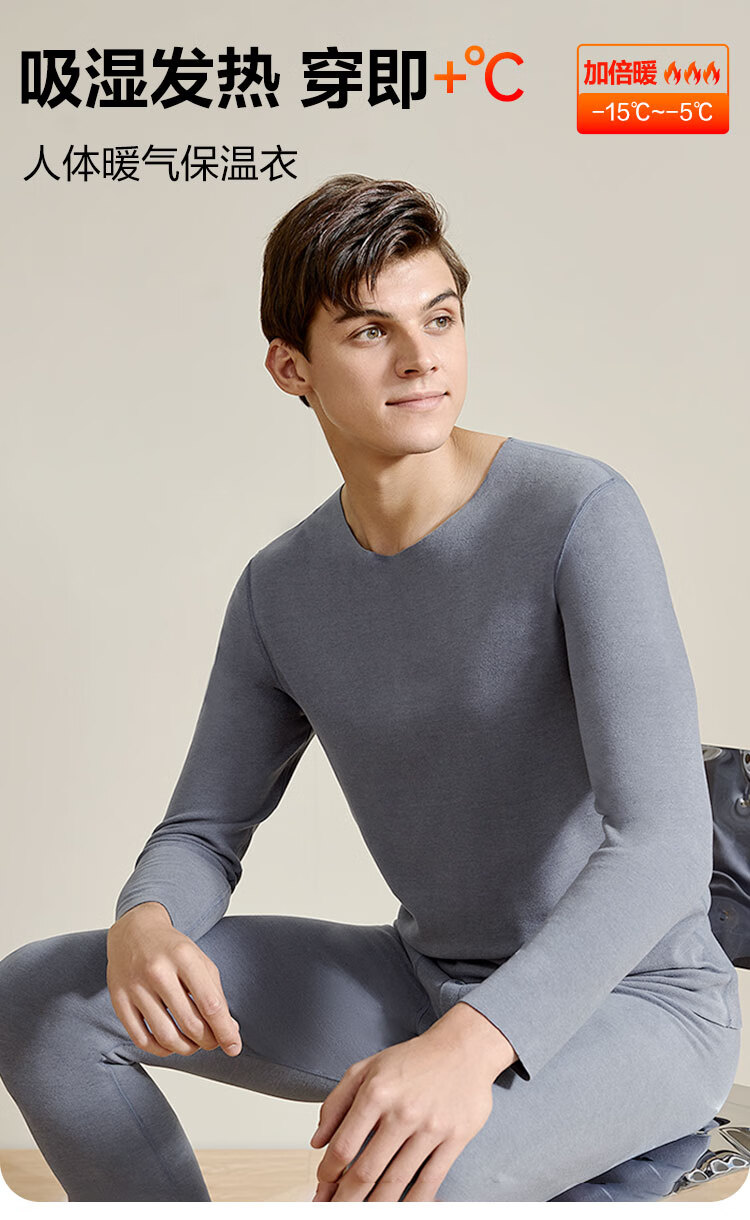 欧迪芬(Ordifen)秋冬打底衣男双面磨毛蓄热高弹防静电秋衣秋裤红色保暖套装 炭灰色 2XL