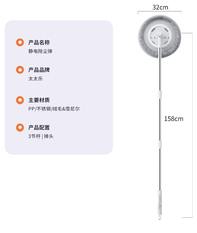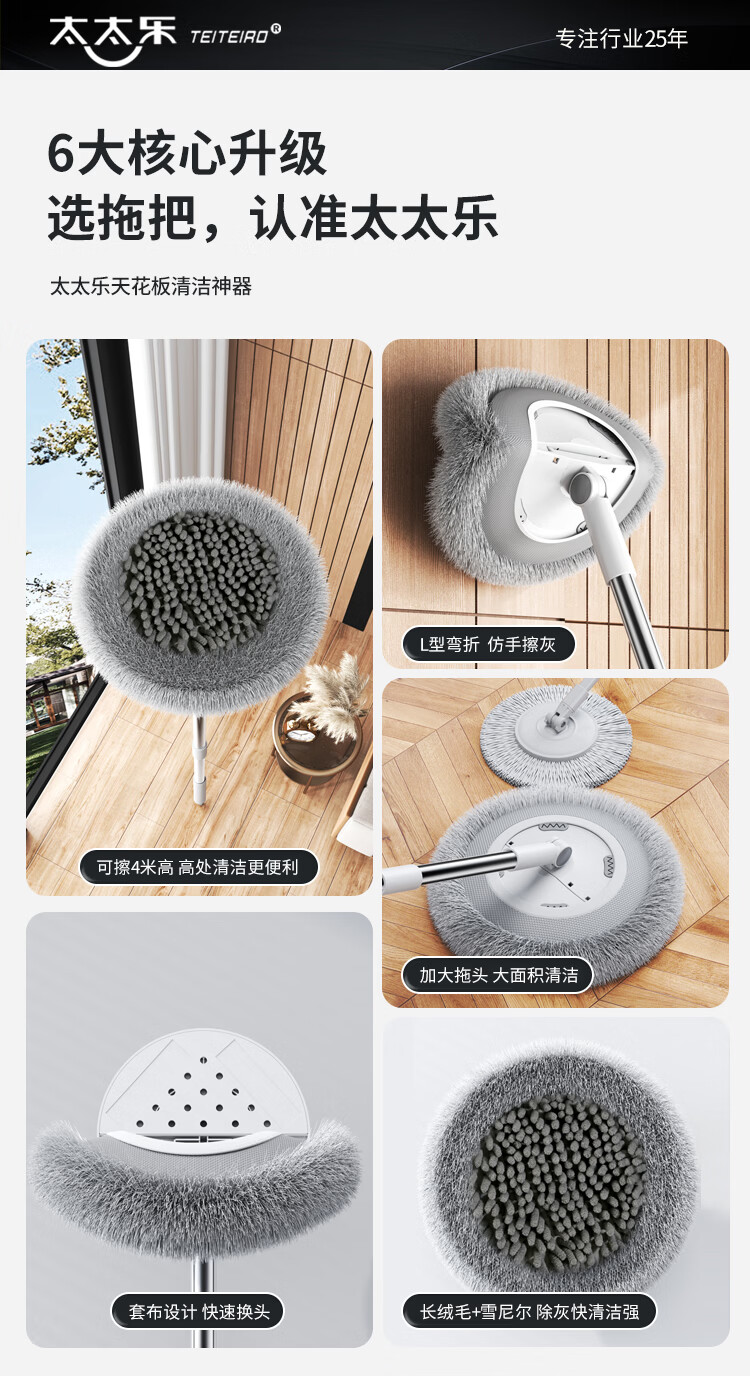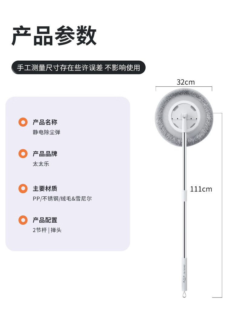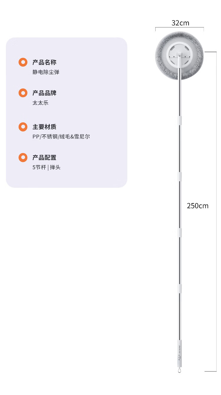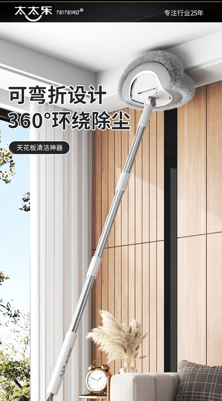 太太乐太阳花拖把家用打扫灰尘除尘加长杆鸡毛掸子向日葵天花板清洁神器 111cm向日葵拖把【共1拖头*两节杆】