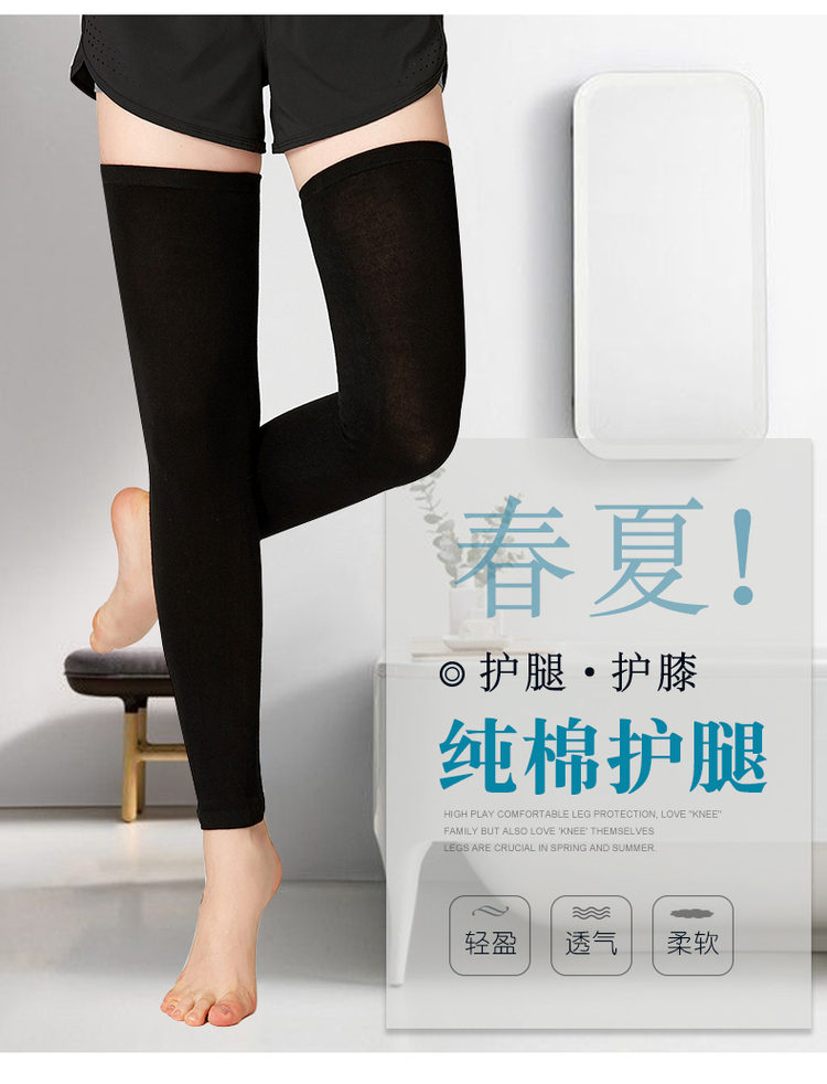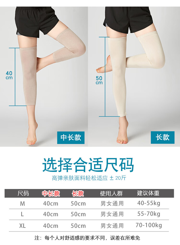 阙时翊 夏季纯棉加长护腿袜套男女士薄款护膝关节老寒腿炎运动保暖 肤色【中长款】 40cm L(体重55~70KG)